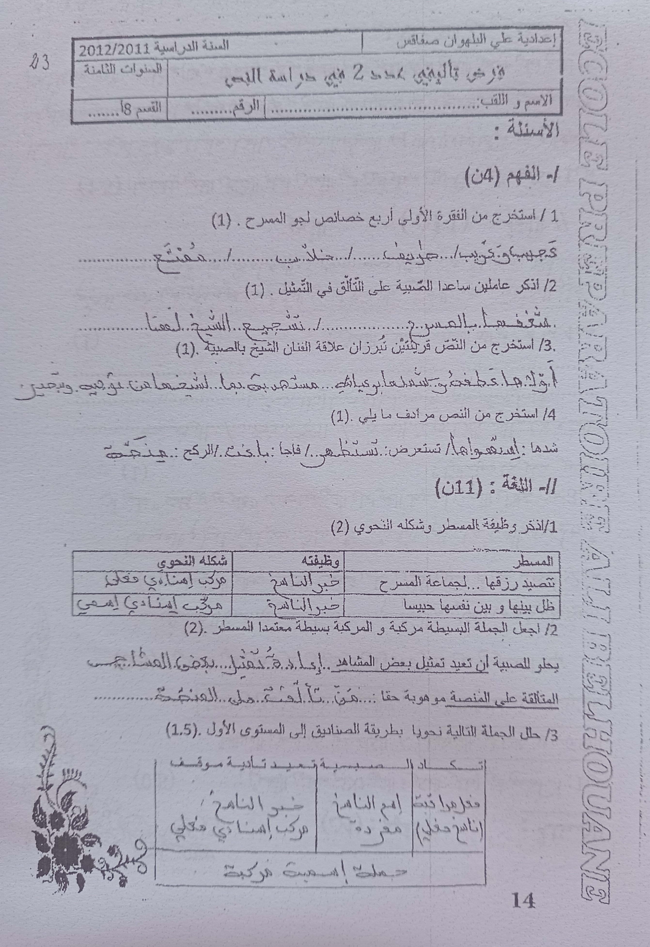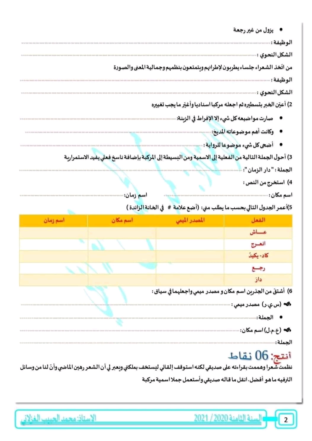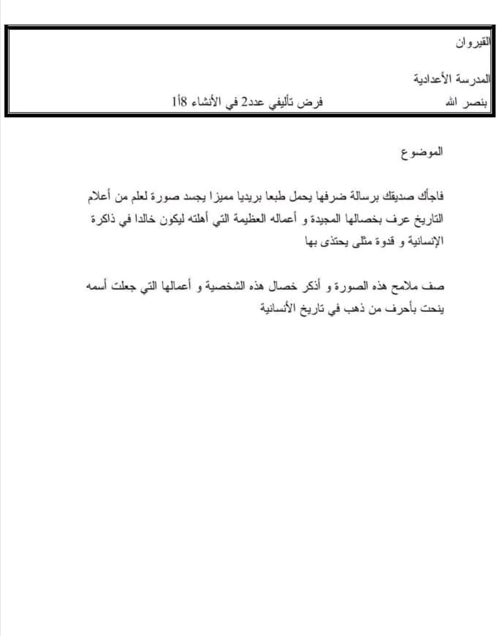 الثامنة أساسيا : فرض تأليفي جامع عدد 2