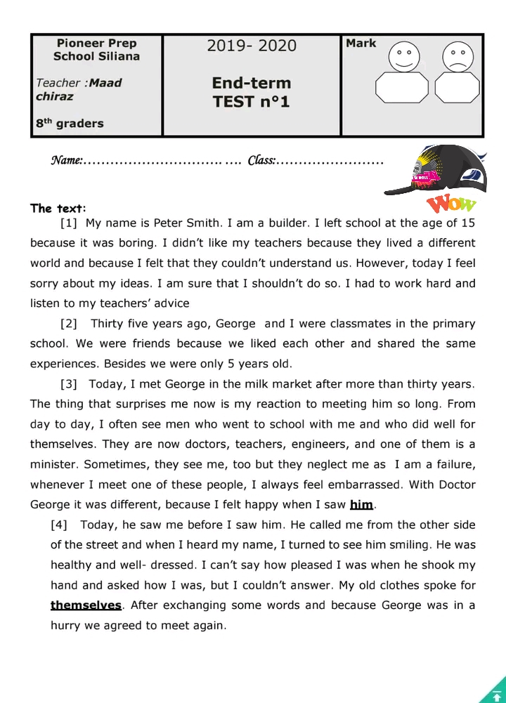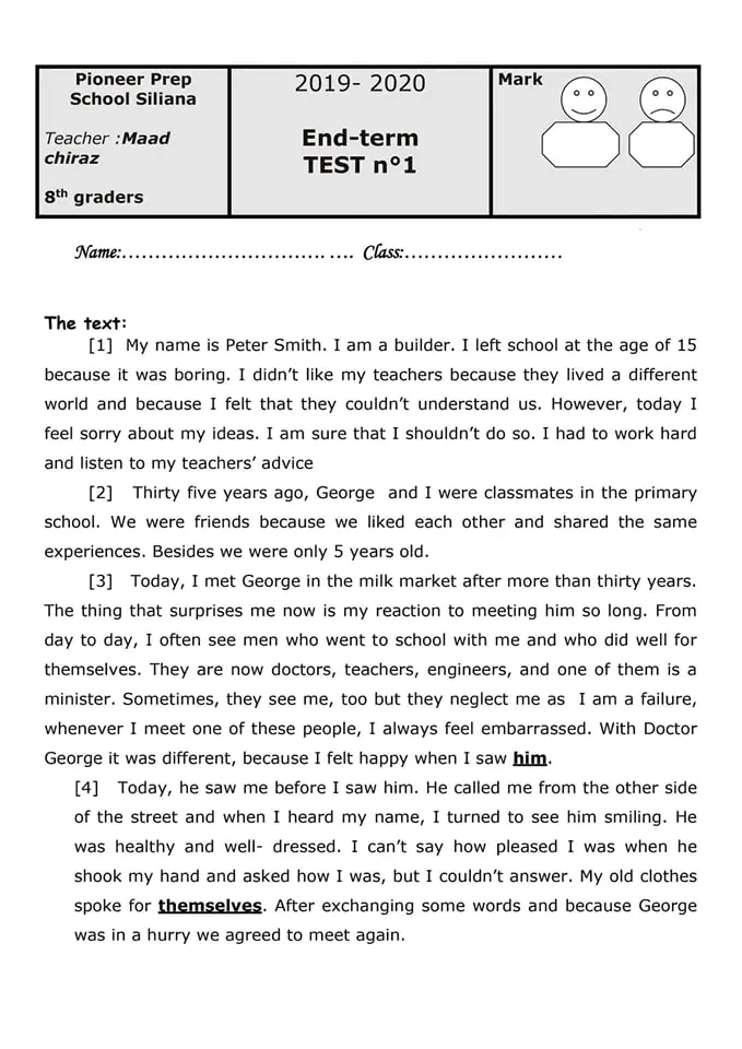 During her visit to London, Imene became more interested in English secondary schools. She decided to collect information about them and share it with her Tunisian friends. First, most English pupils go to…….........................schools because they are free. Second, before going to their classrooms, students must.................................an assembly. The headmaster................................. about important issues like exams competitions. After that, the pupils sing....................................... Finally, wearing a uniform is ............................... for both girls and boys.