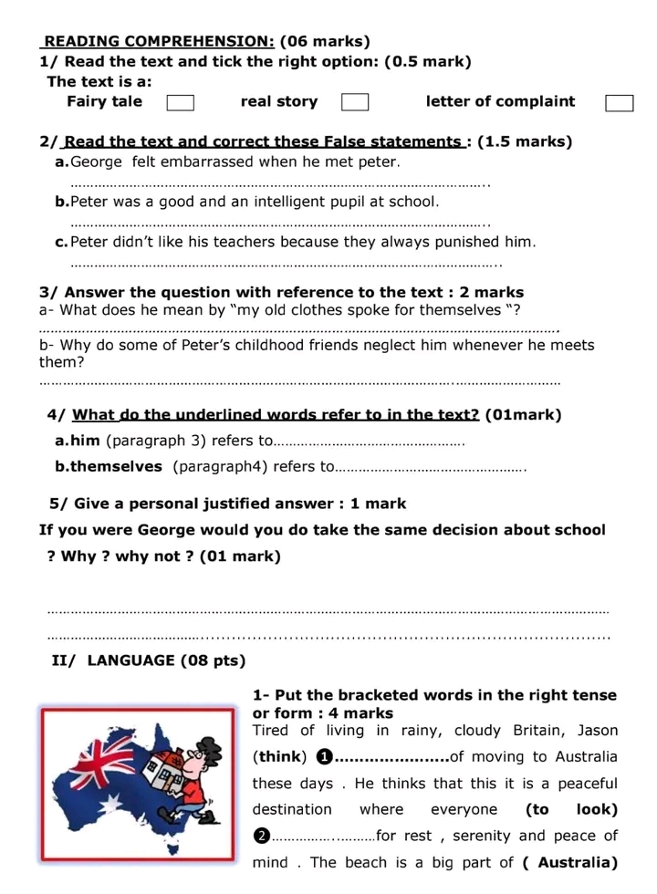 I- Reading Comprehension : (6 marks)