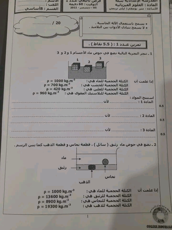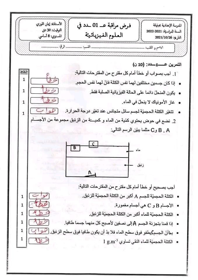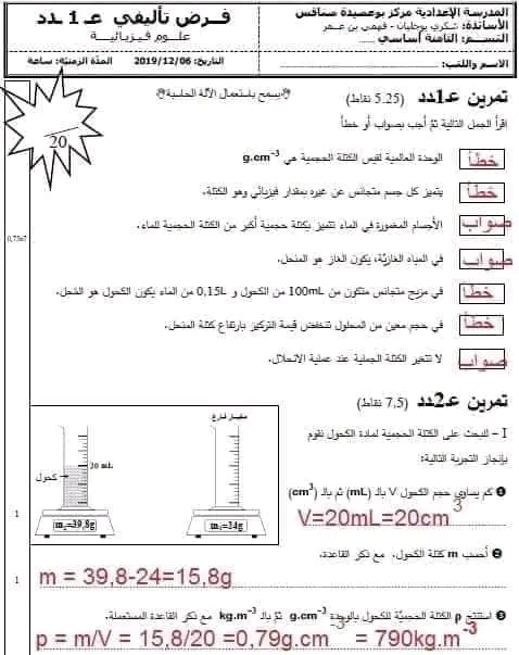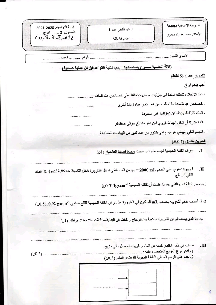 فرض تأليفي1 فيزياء 8 اساسي-محمد علي شبيكي