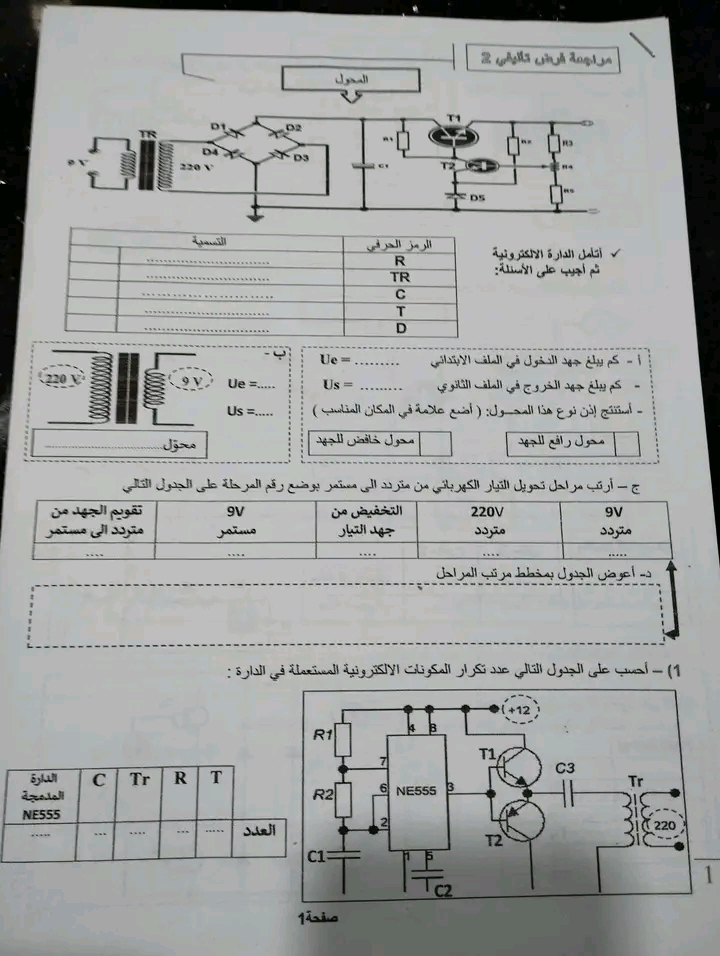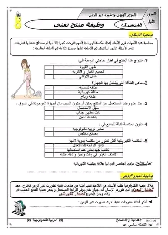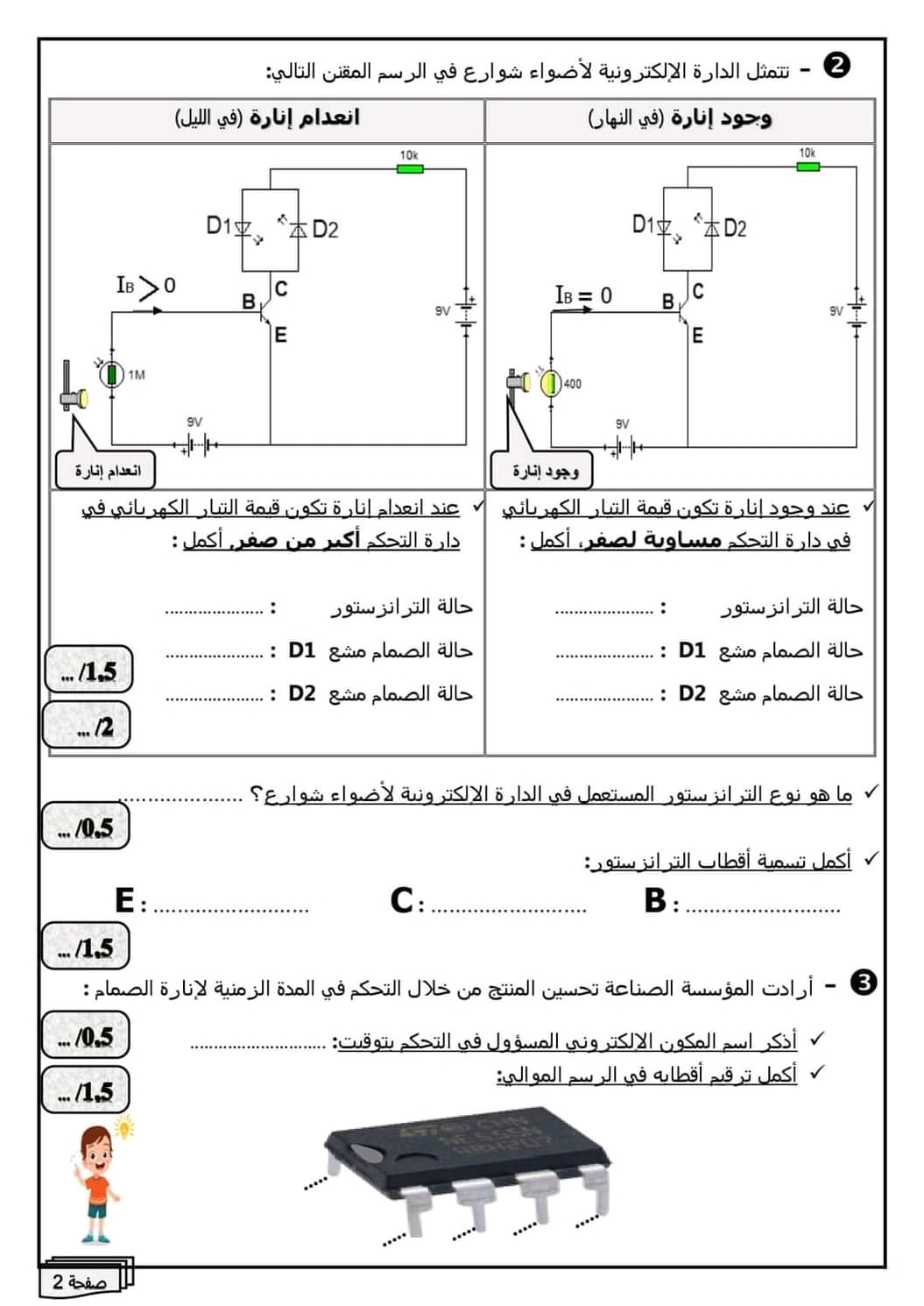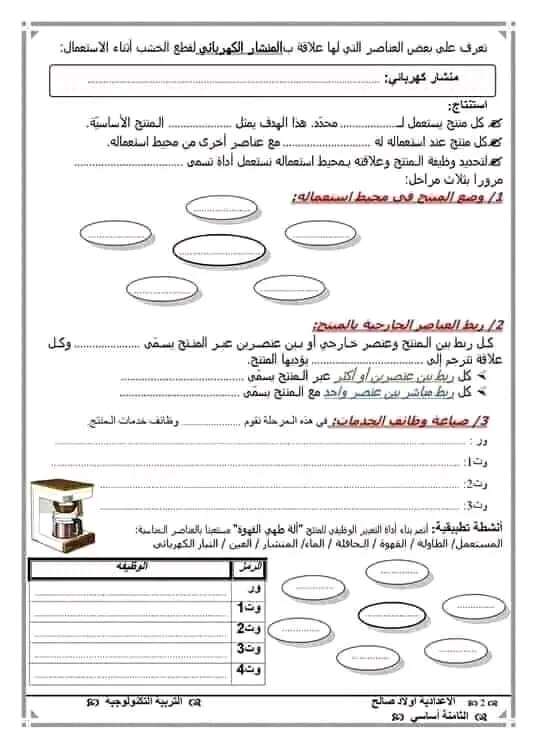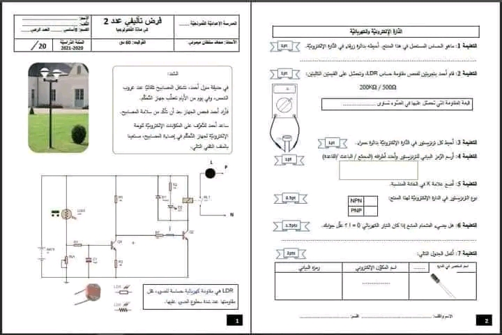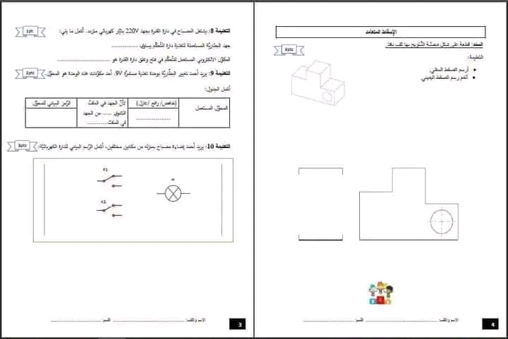 تمارين مراجعة تربية تكنولوجية بالاصلاح حول الدارة الكهربائية سنة ثامنة