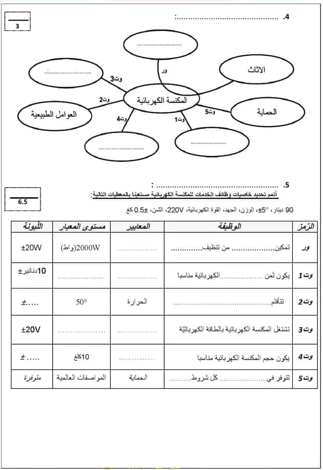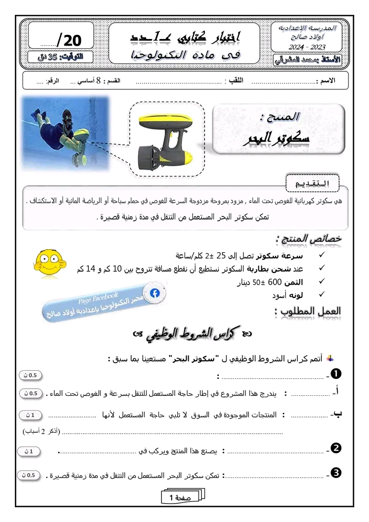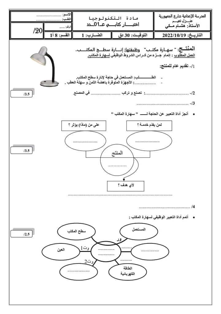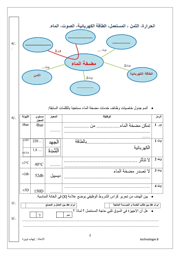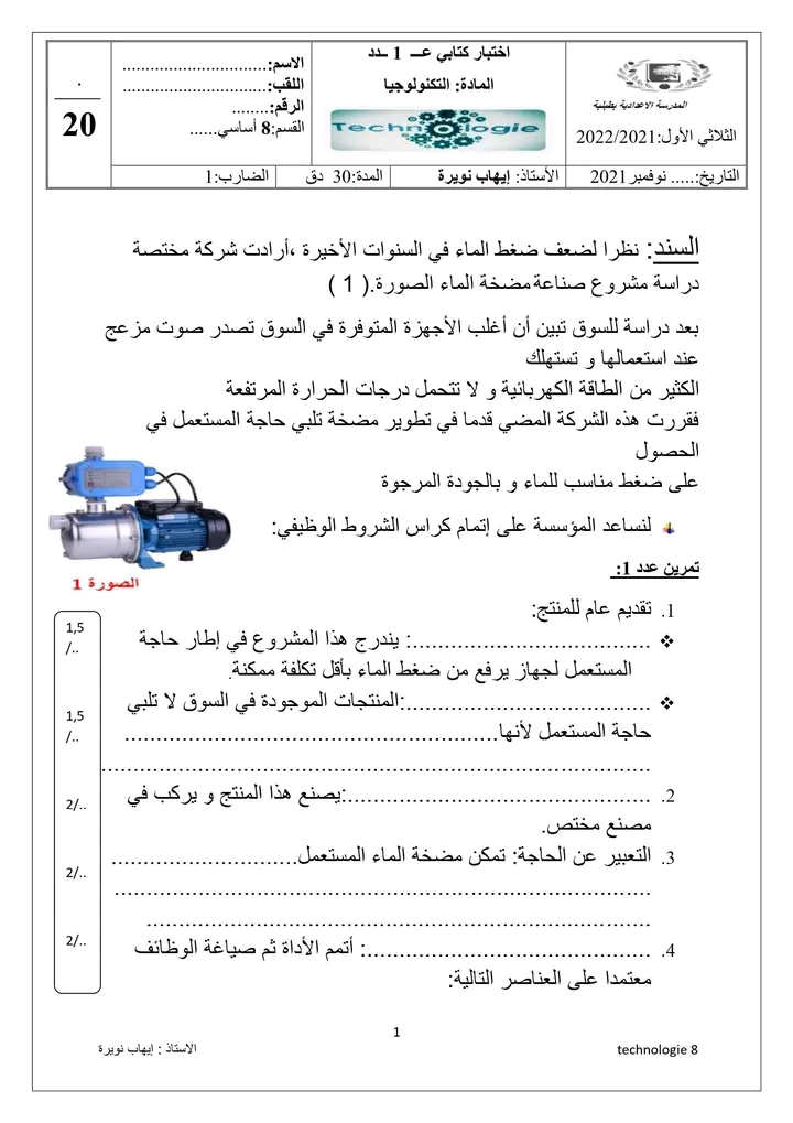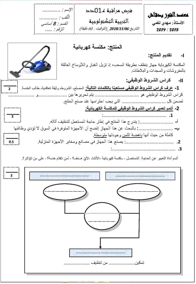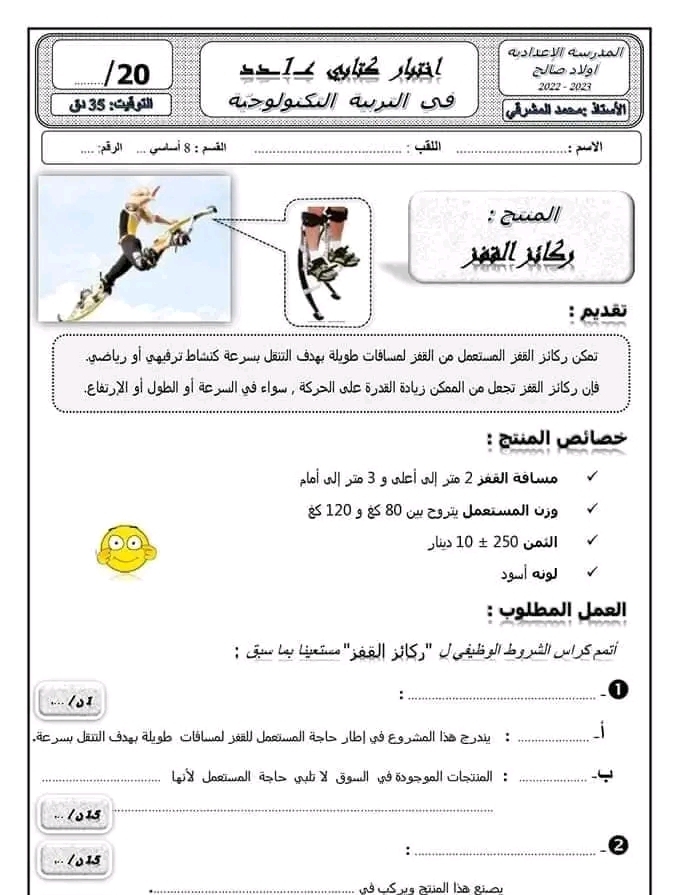 فروض تأليفية و مراقبة السنة الثامنة أساسي تكنولوجيا