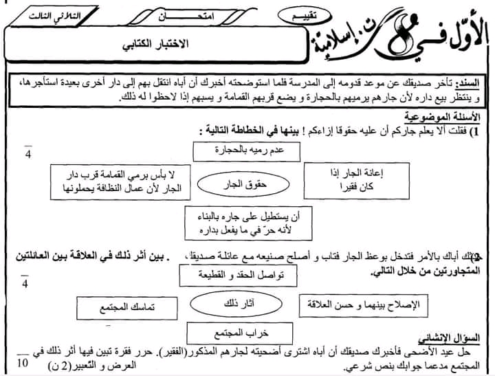 فروض المراقبة ت.إسلامية الثلاثي الثالث