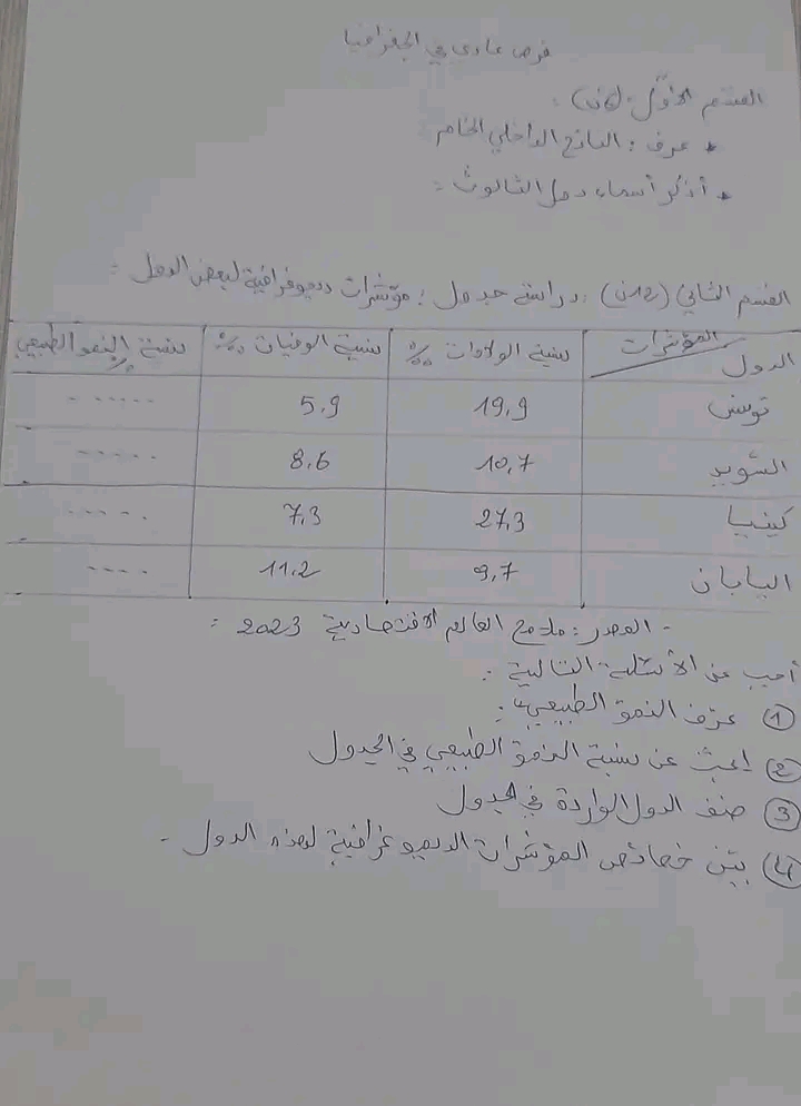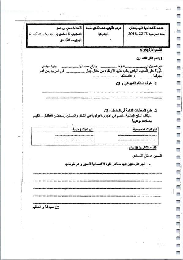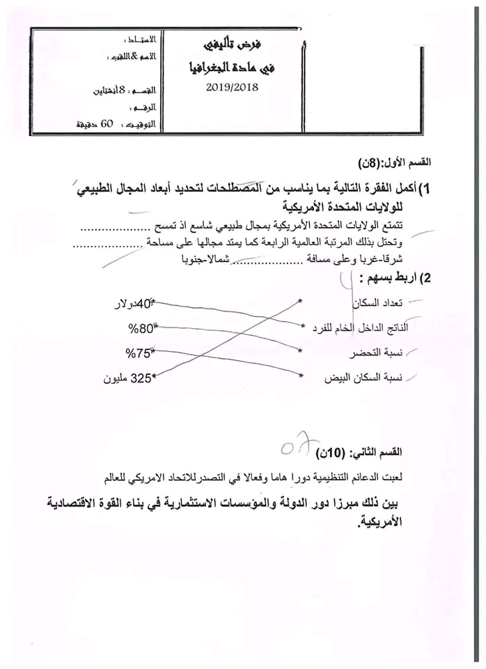 فرض تأليفي عدد 2 في مادة الجغرافيا