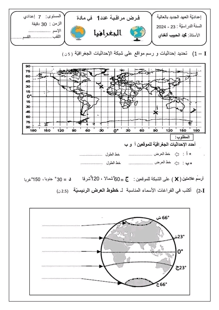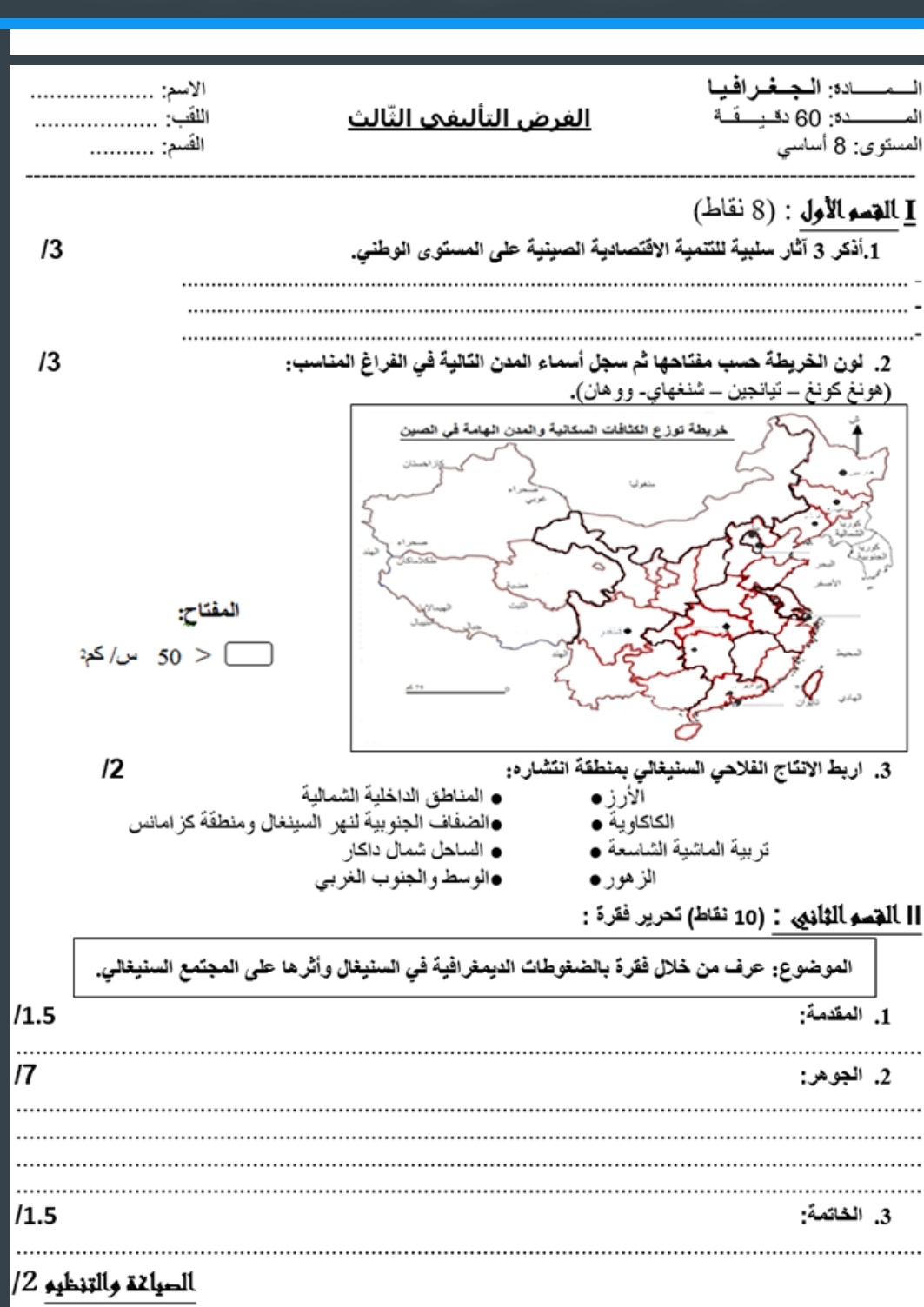 اختبار كتابي عدد 2 في مادة الجغرافيا