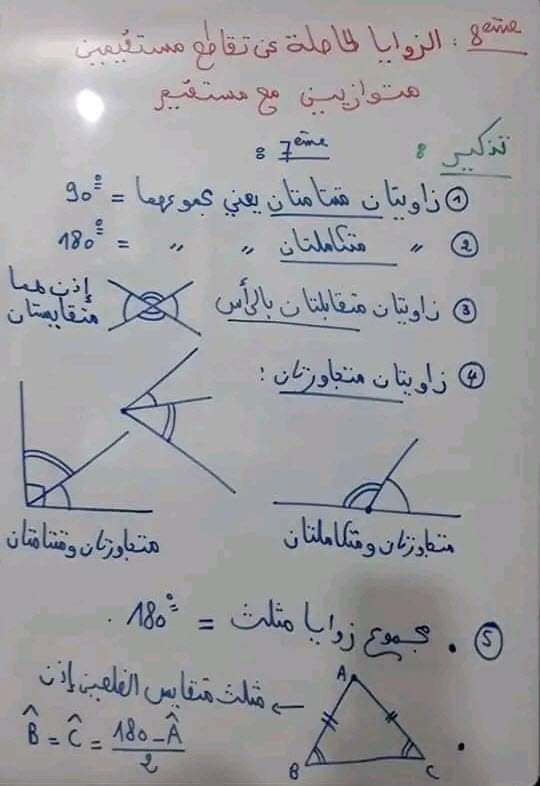 ثامنة اساسي الزوايا الحاصلة عن تقاطع مستقيمين متوازيين مع مستقم