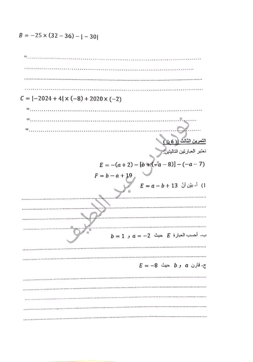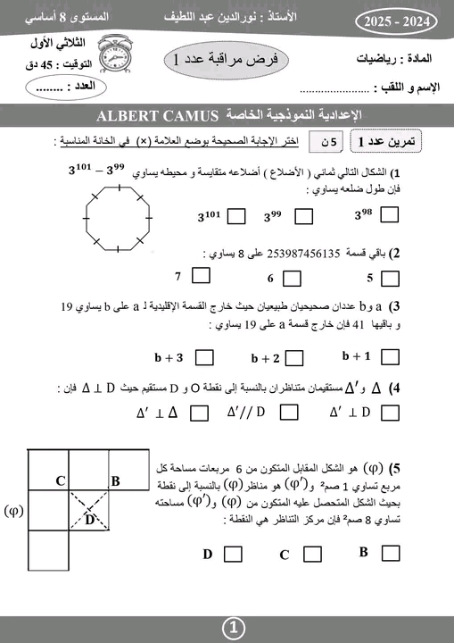 فرض مراقبة عدد 1 رياضيات
