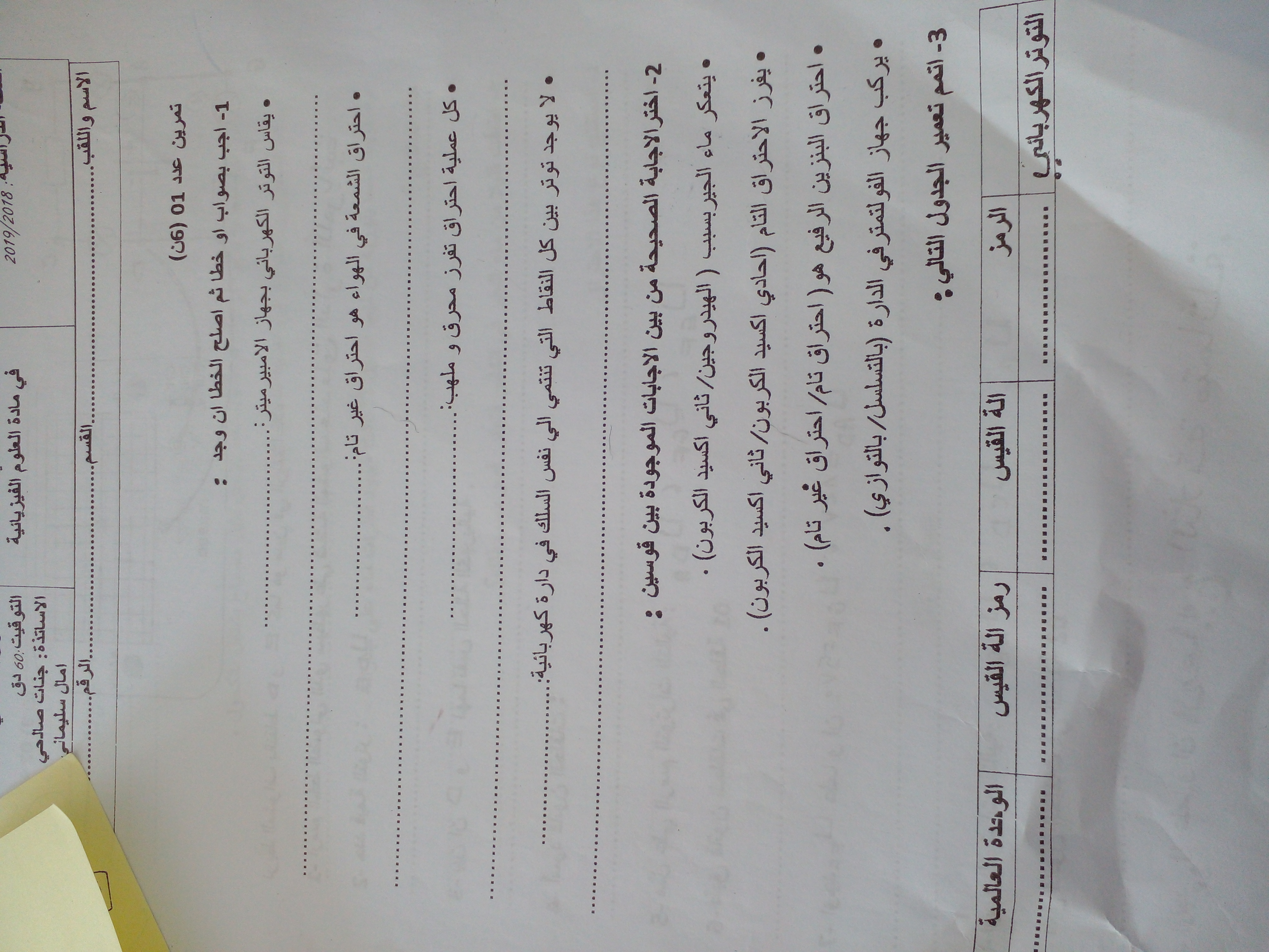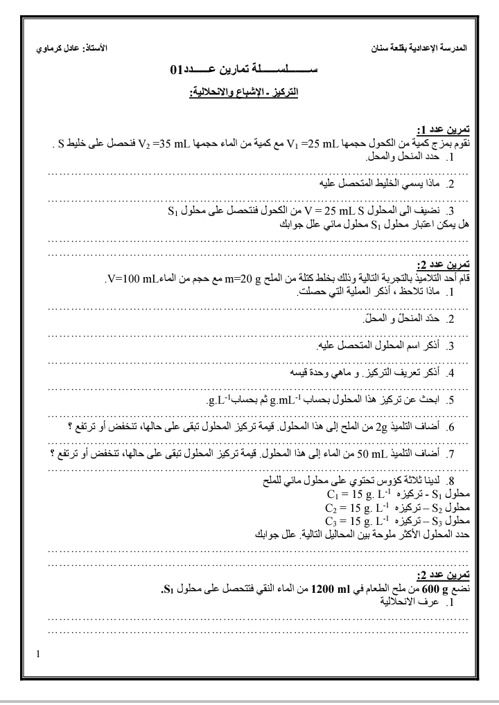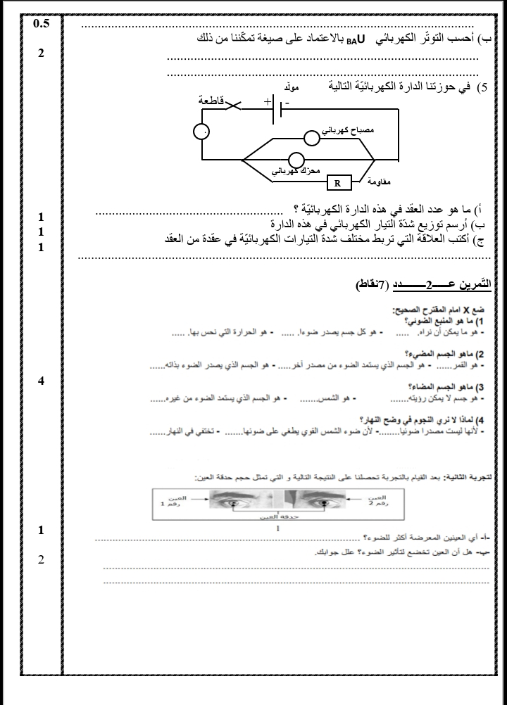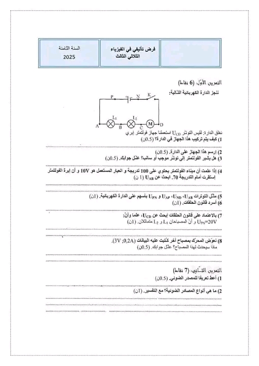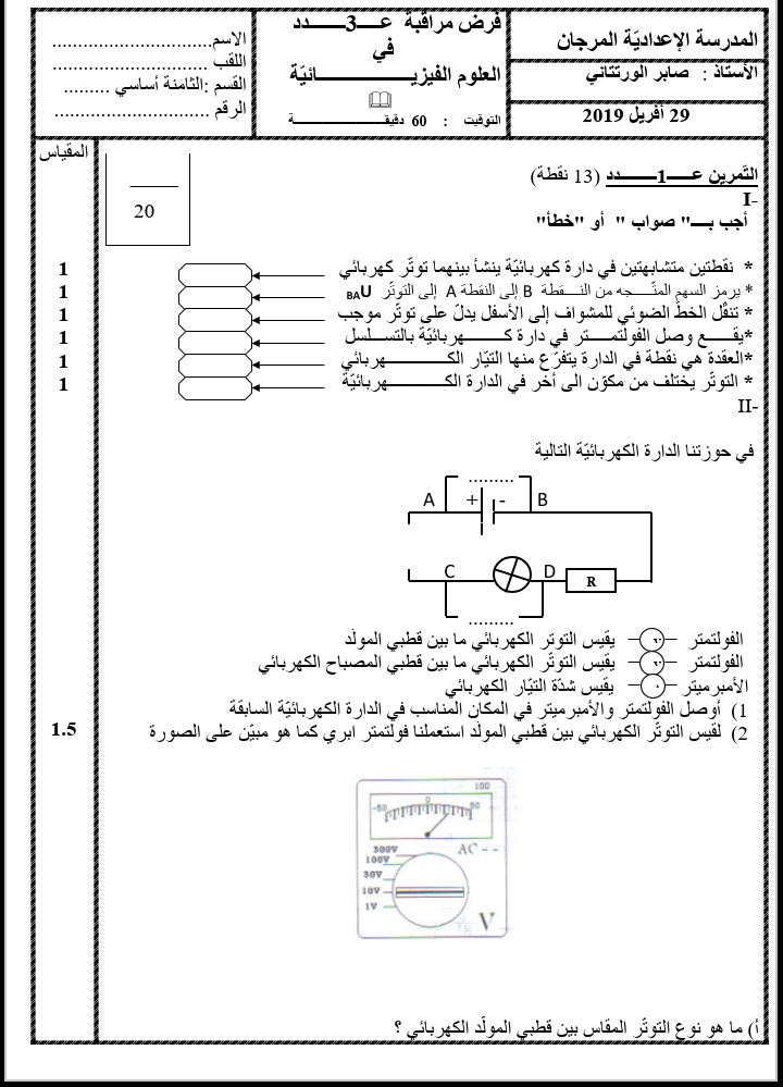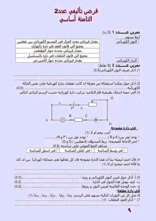 فرض مراقبة عدد1 في الفيزياء 8 اساسي-محمد علي شبيكي