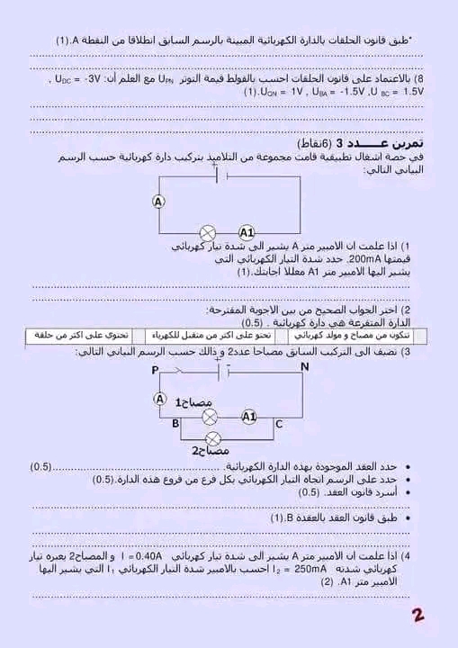 فرض تأليفي عدد 2 في مادة الفيزياء بالاصلاح
