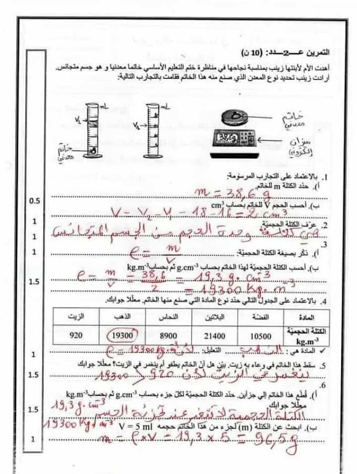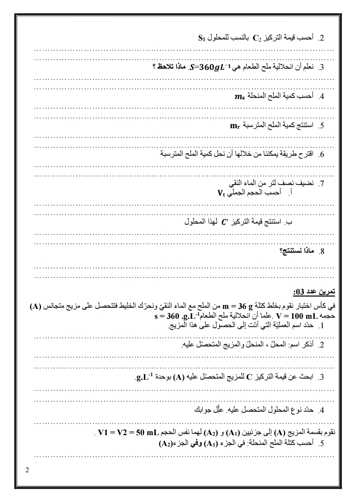 فروض مراقبة عدد 2 في مادة العلوم الفيزيائية بالاصلاح