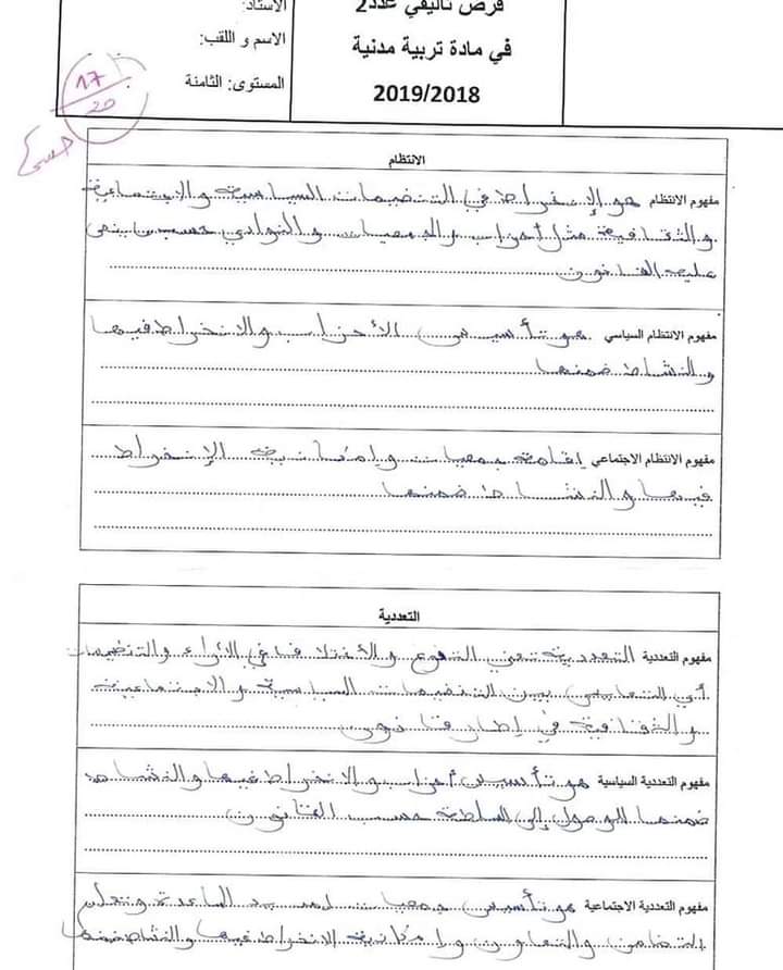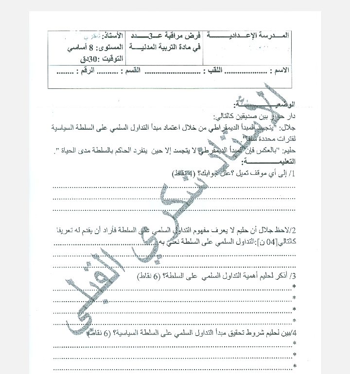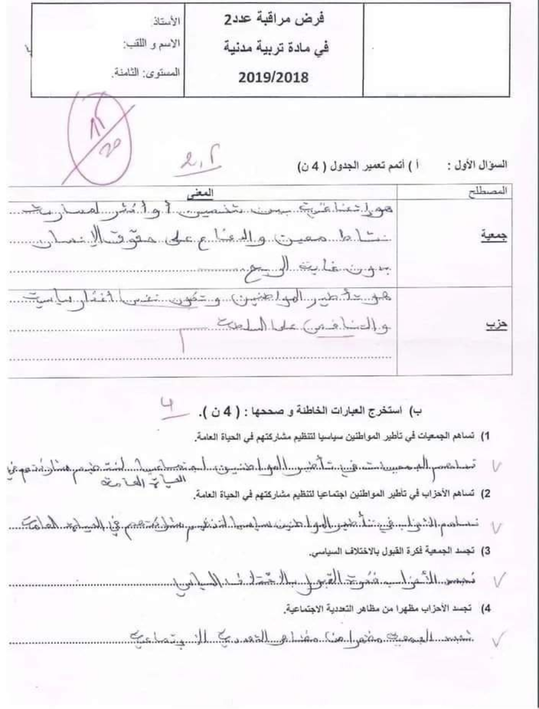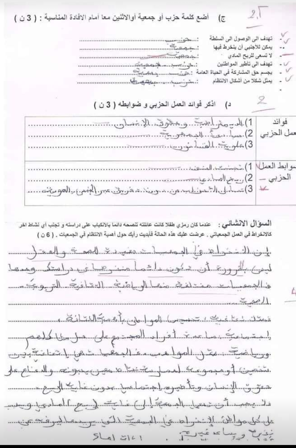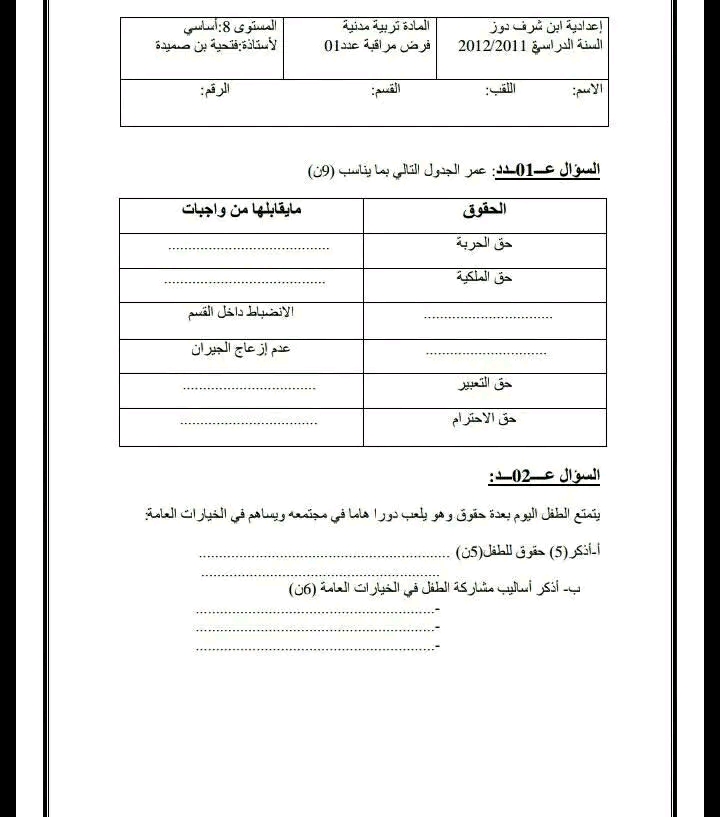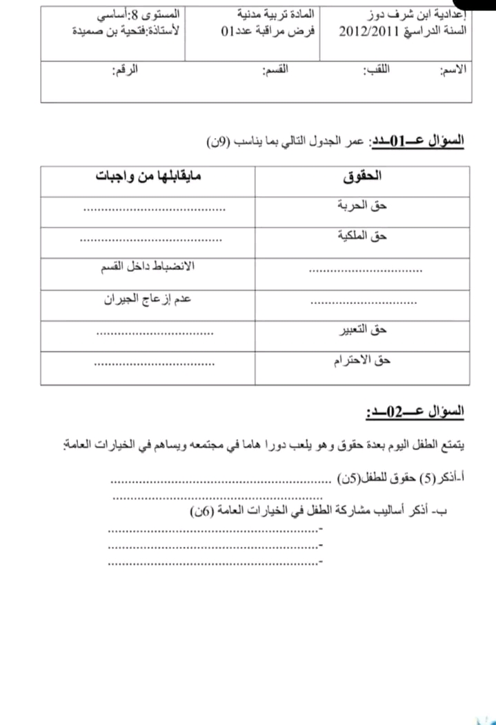 إجابات فرض تأليفي في مادة التربية المدنية عدد 2