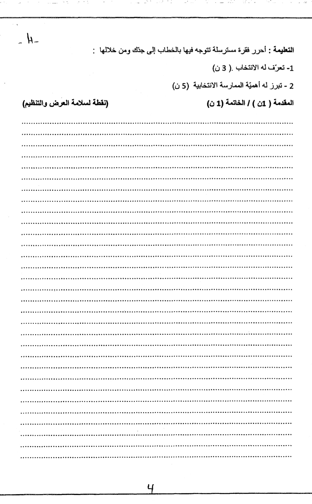 حرر فقرة مسترسلة أصوغ من خلالها نداء إلى كل مواطن لم يتوجه إلى مكتب الاقتراع ولم ينتخب ومن خلالها: