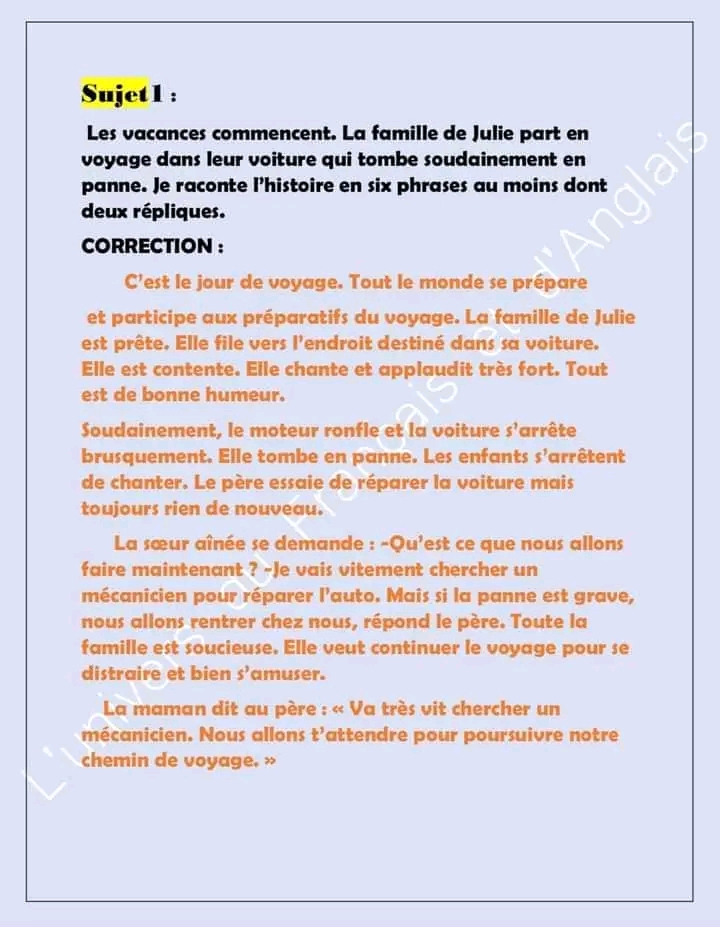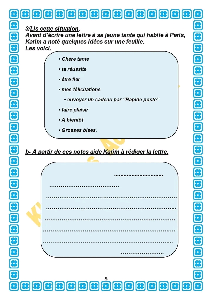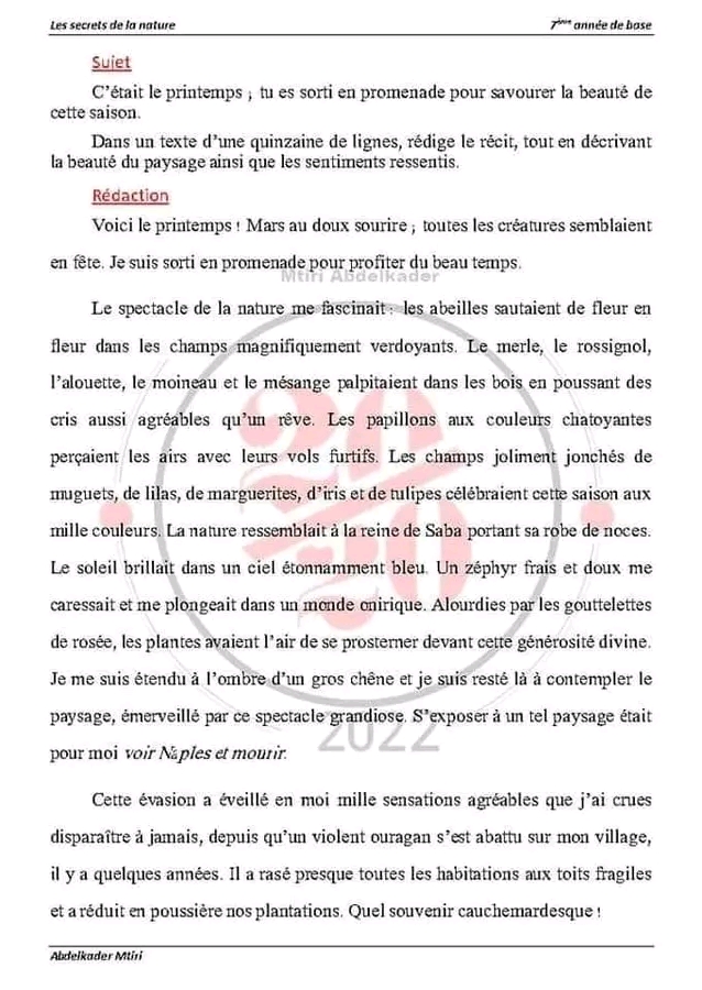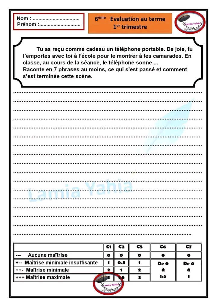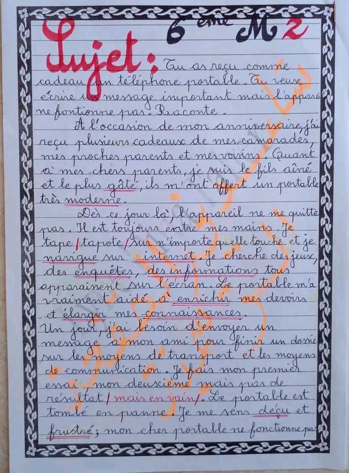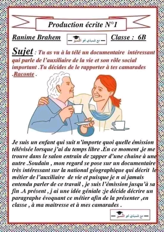 انتاجات كتابية❤ فرنسية❤سنة سادسة الوحدة الاولى والثانية💞💞💞💞