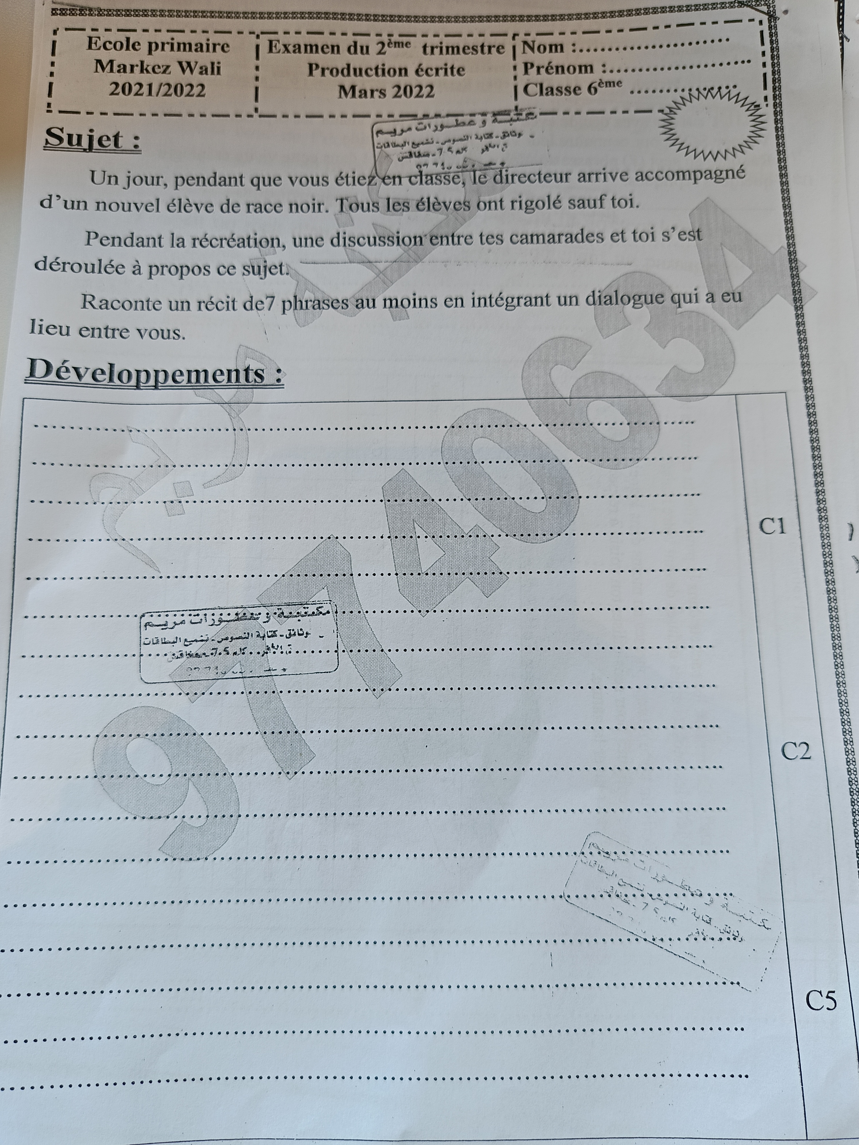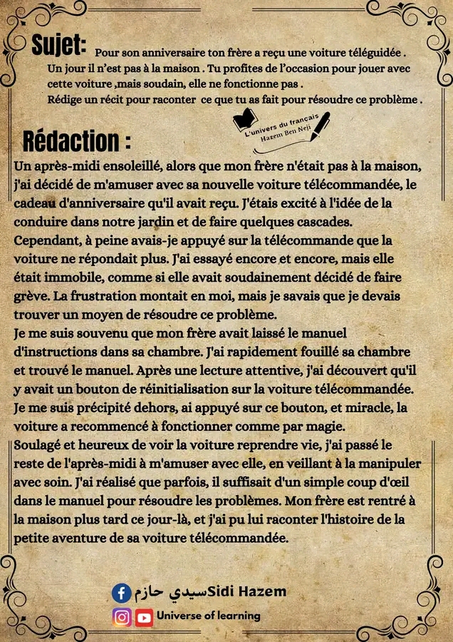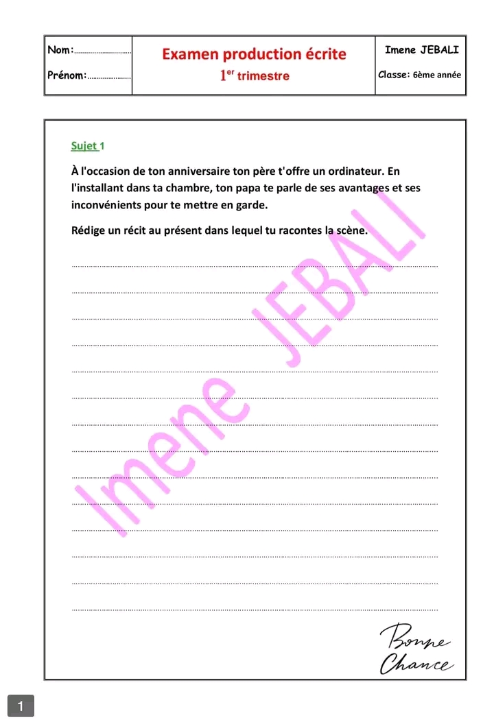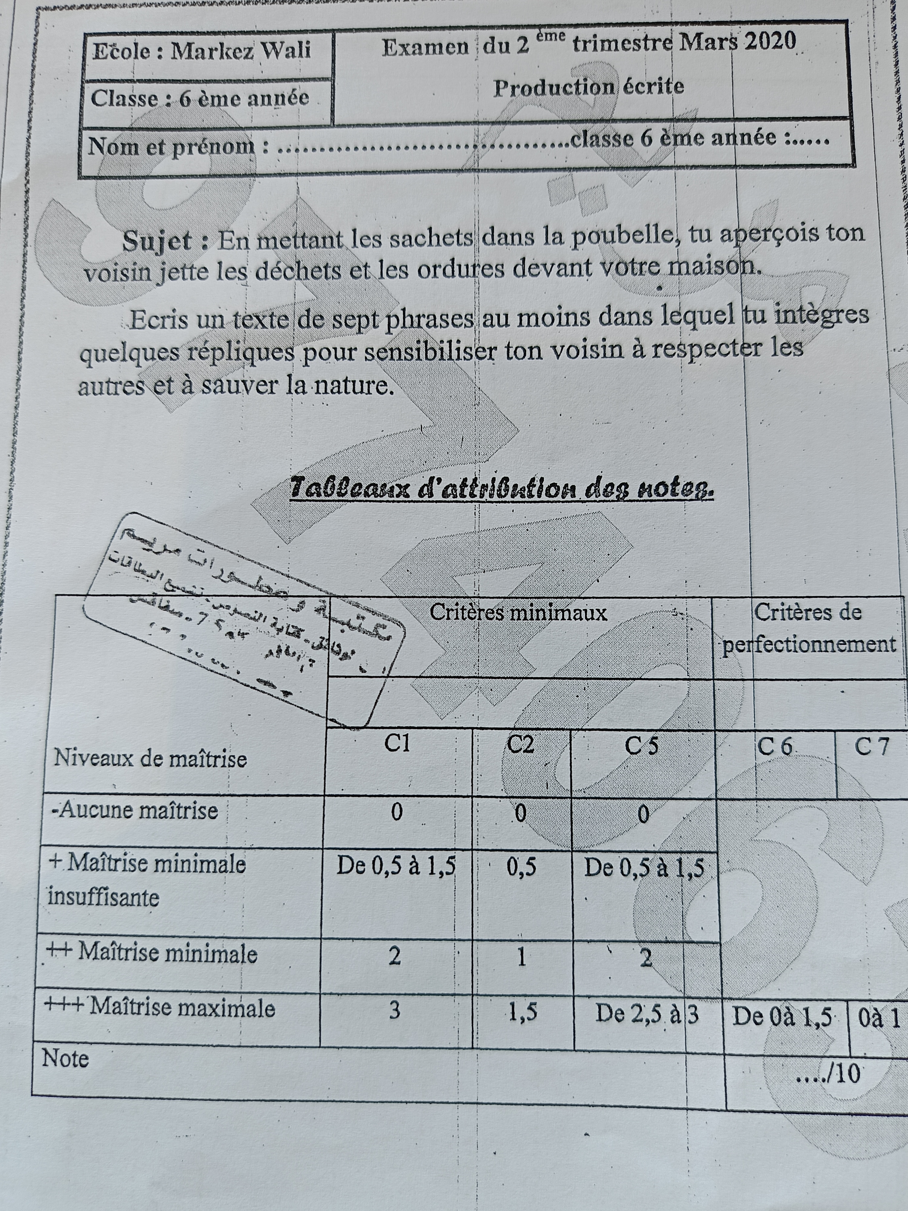 انتاجات كتابية❤ فرنسية❤سنة سادسة الوحدة الاولى والثانية💞💞💞💞