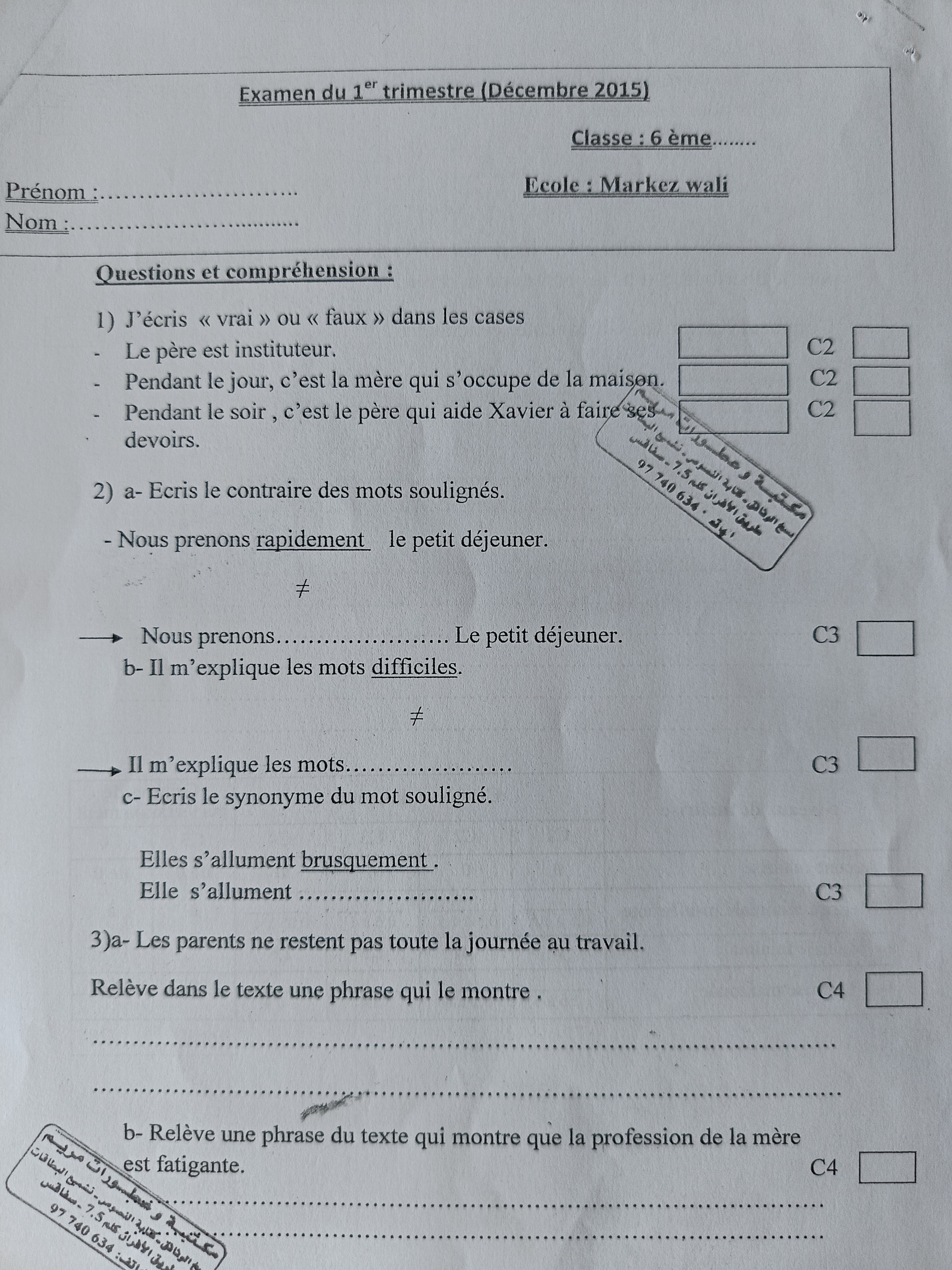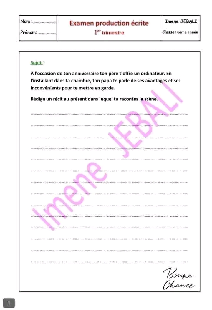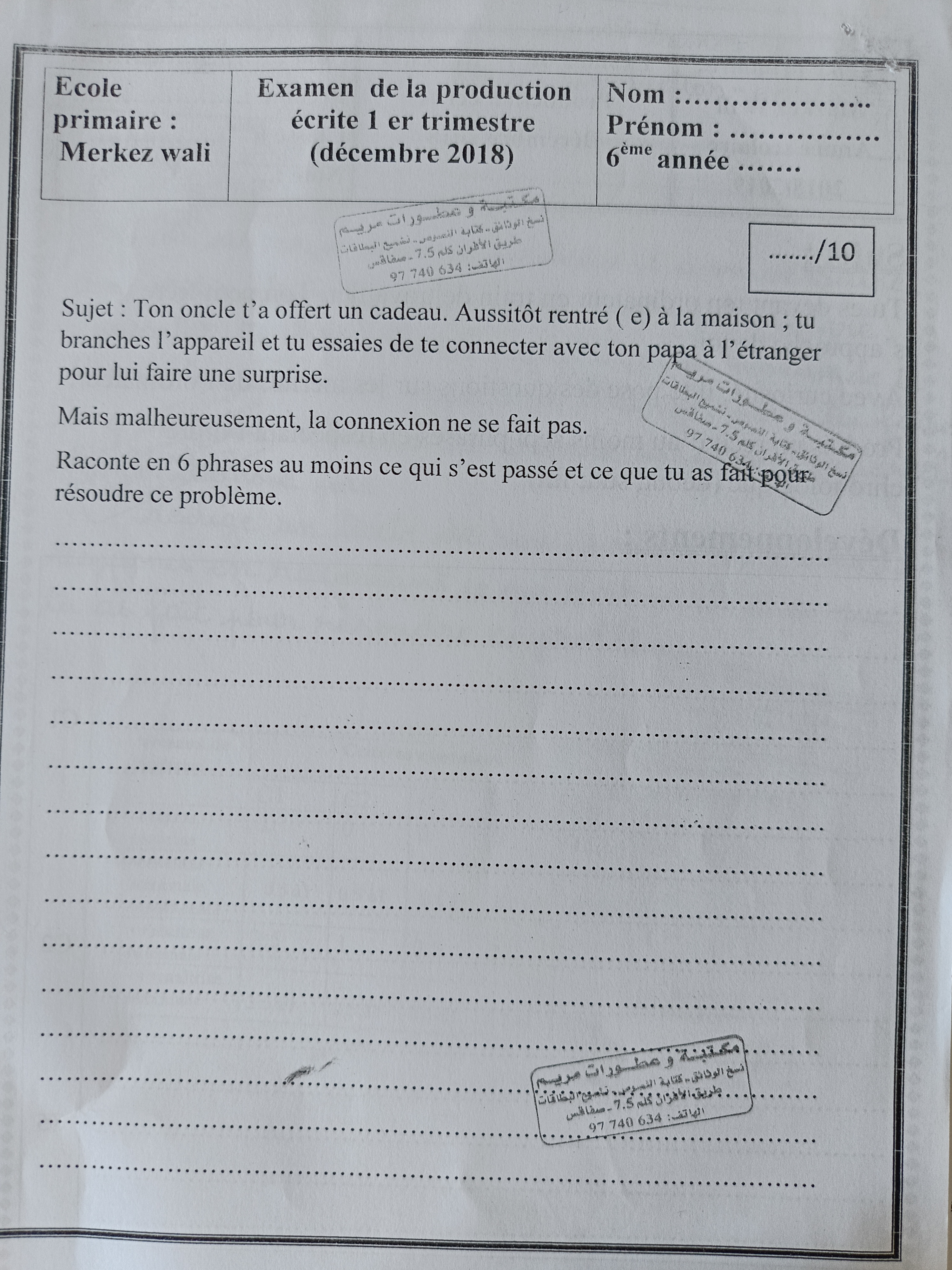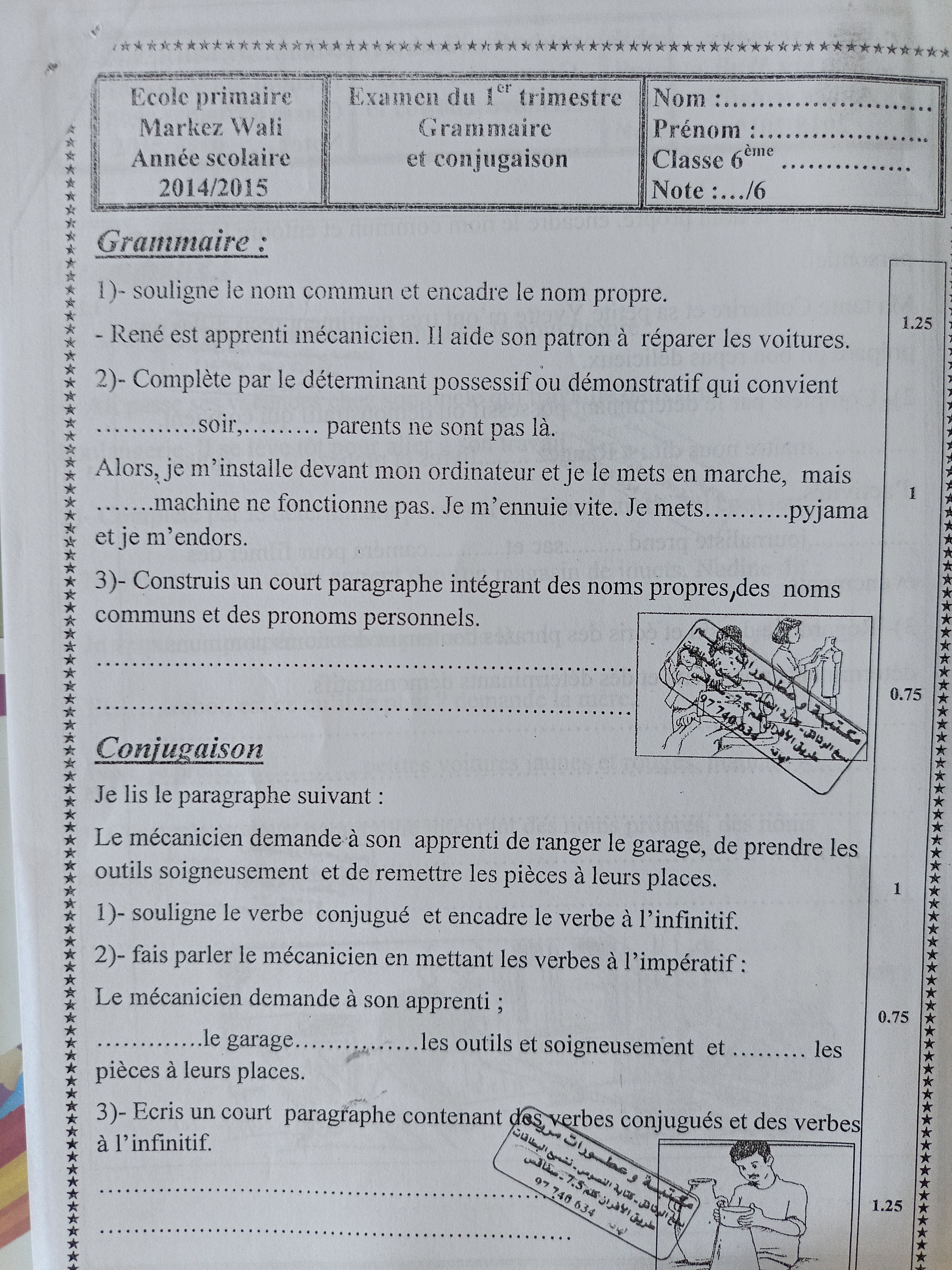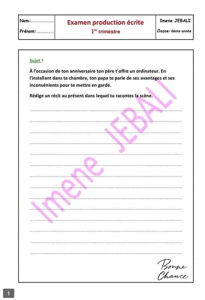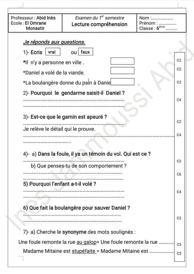 اختبار فرنسية: ثلاثي اول سنة سادسة مع الاصلاح