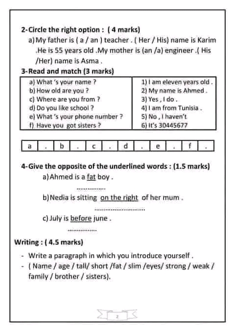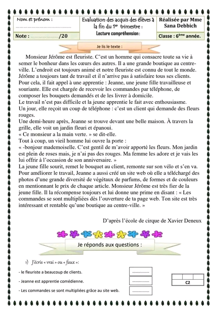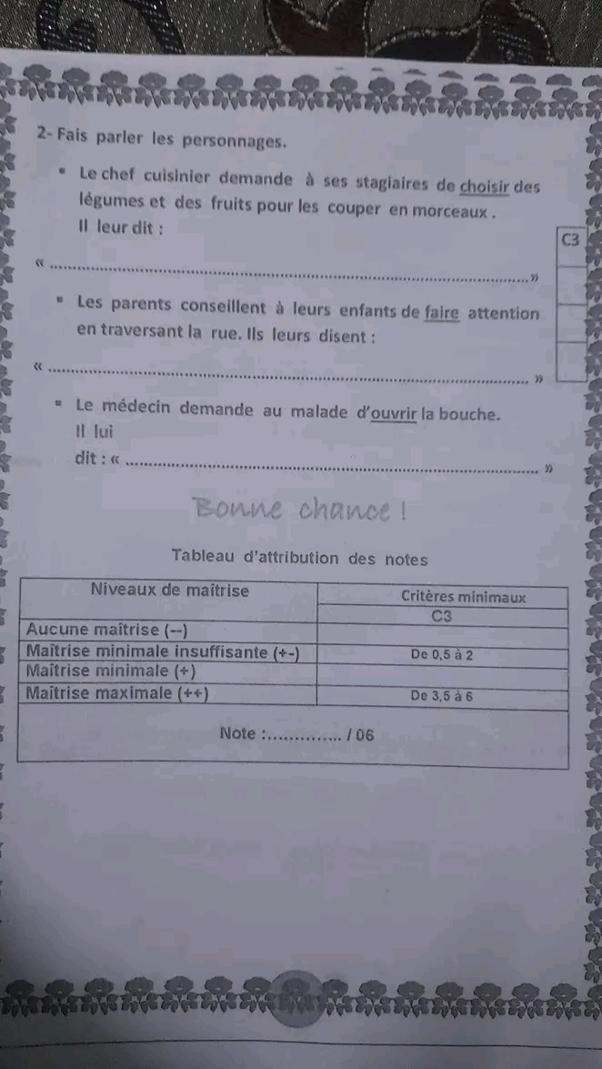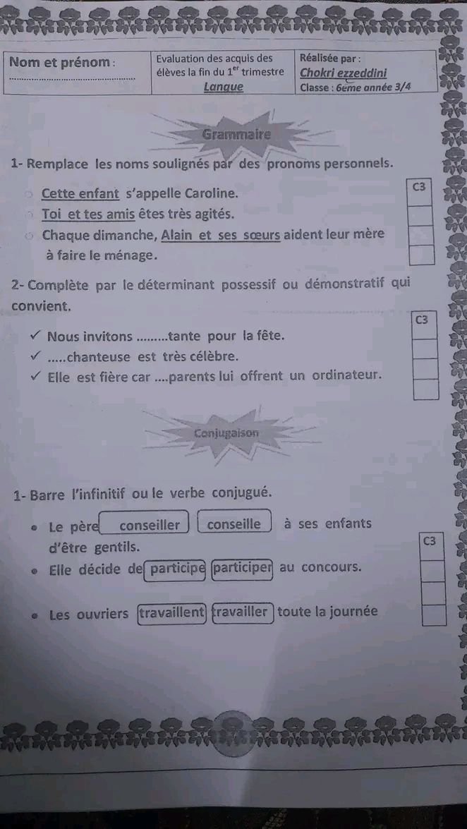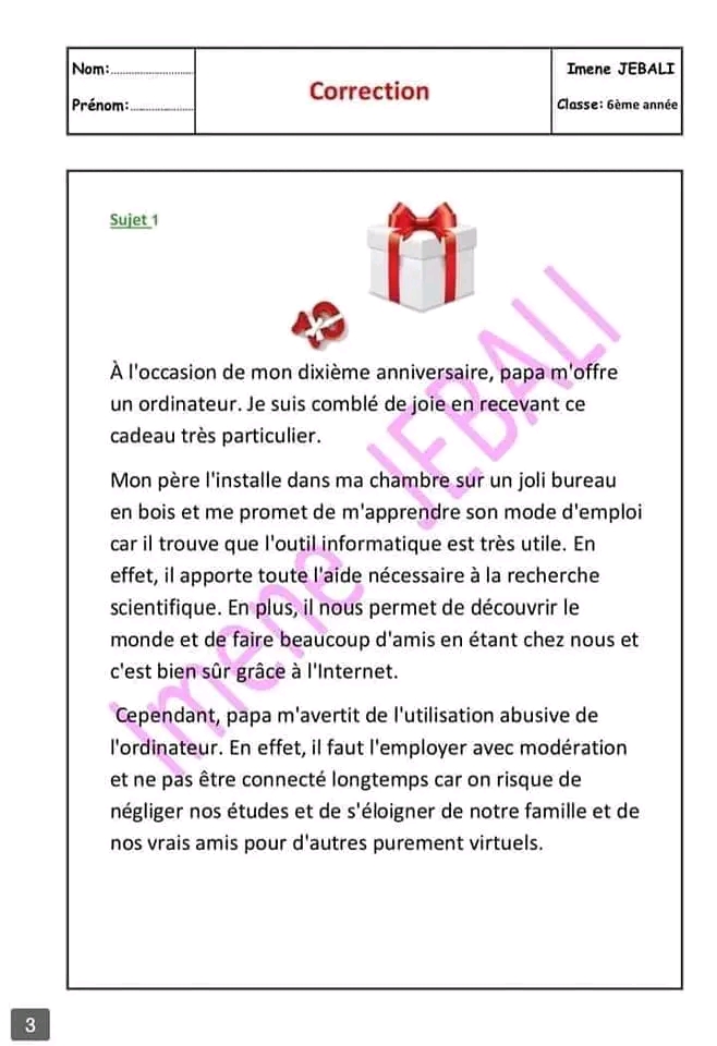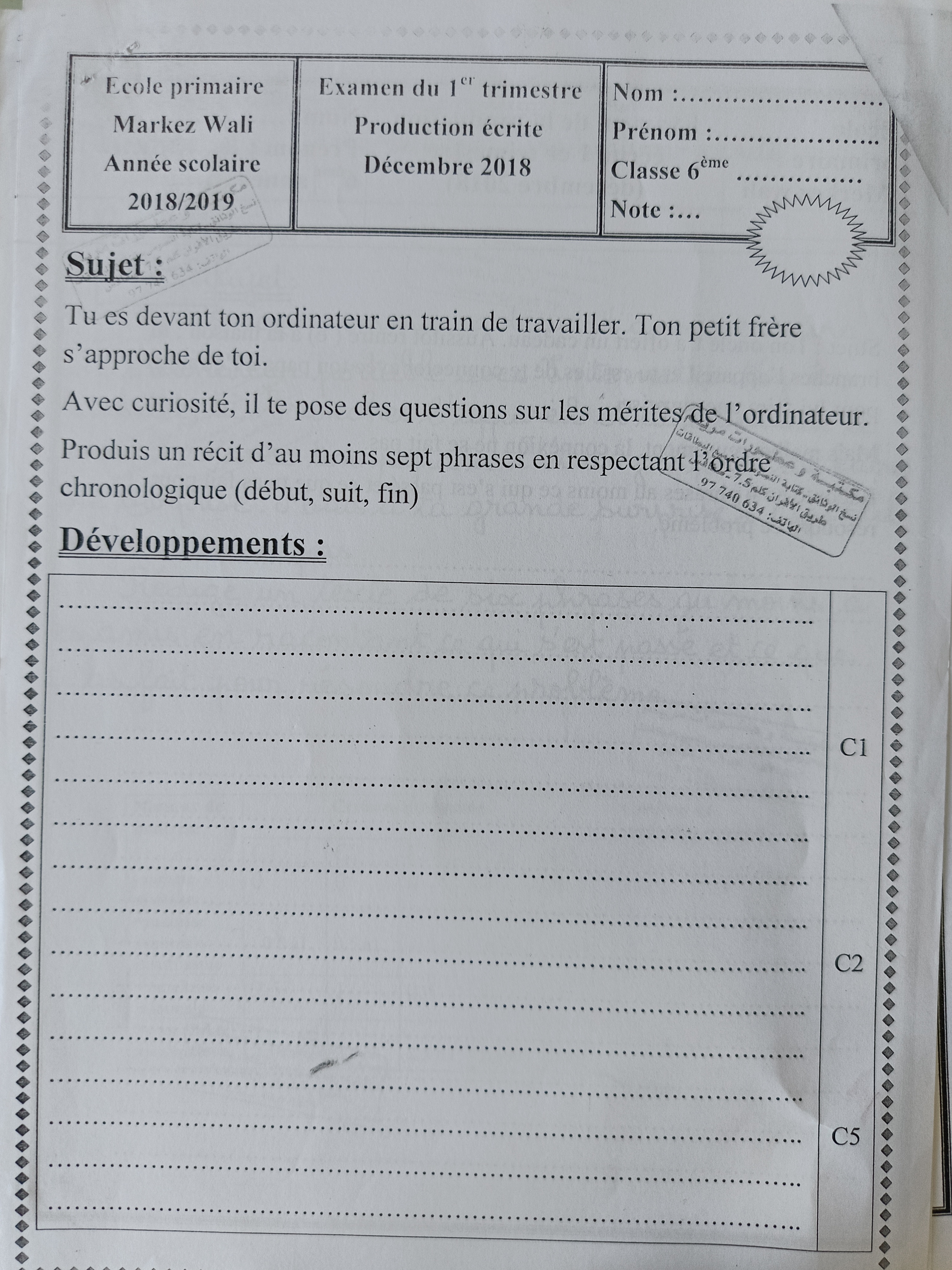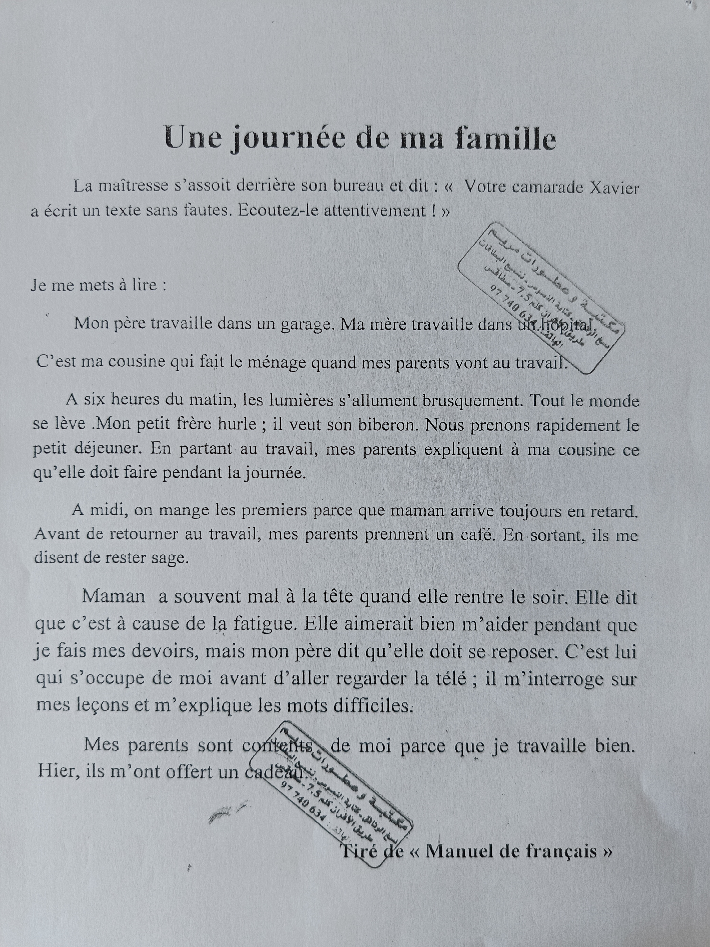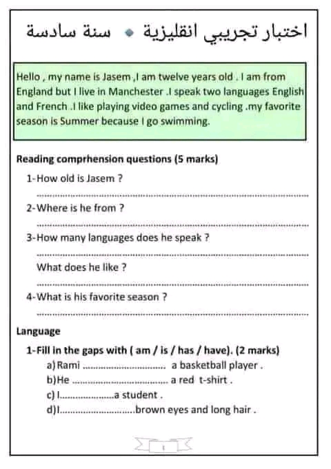اختبار فرنسية: ثلاثي اول سنة سادسة مع الاصلاح