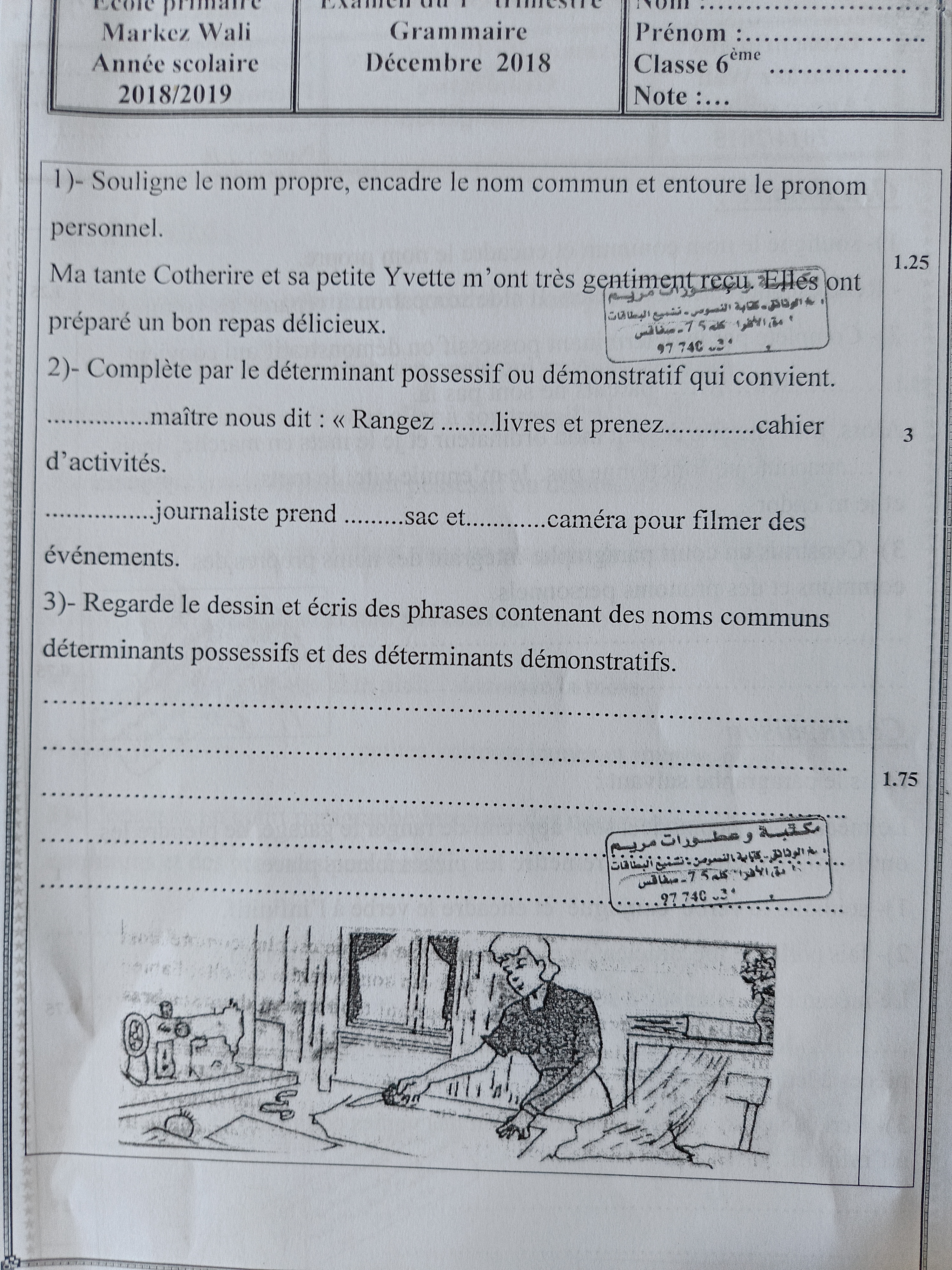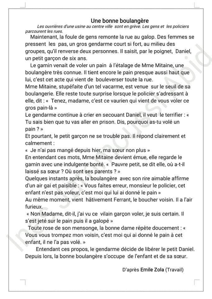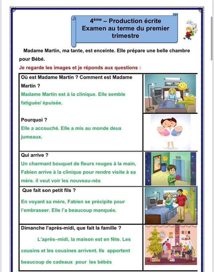اصلاح امتحان الثلاثي الأول في القراءة ،قواعد لغة و أنتاج فرنسية
