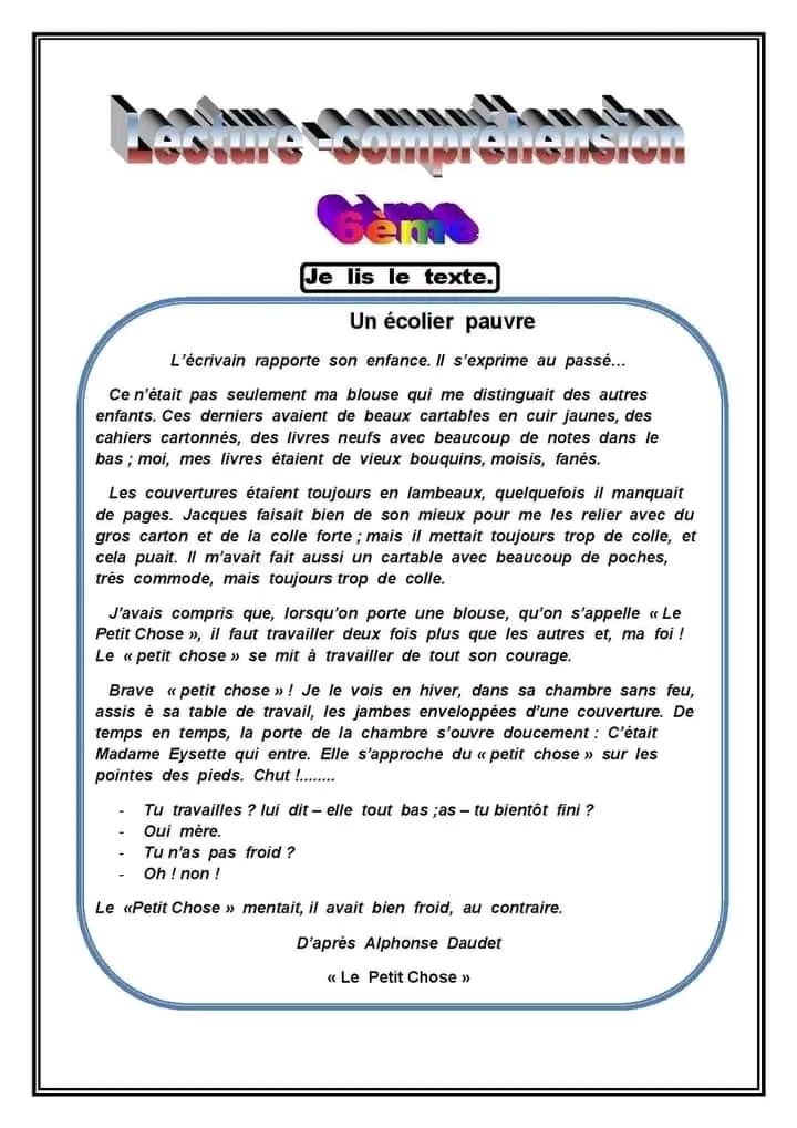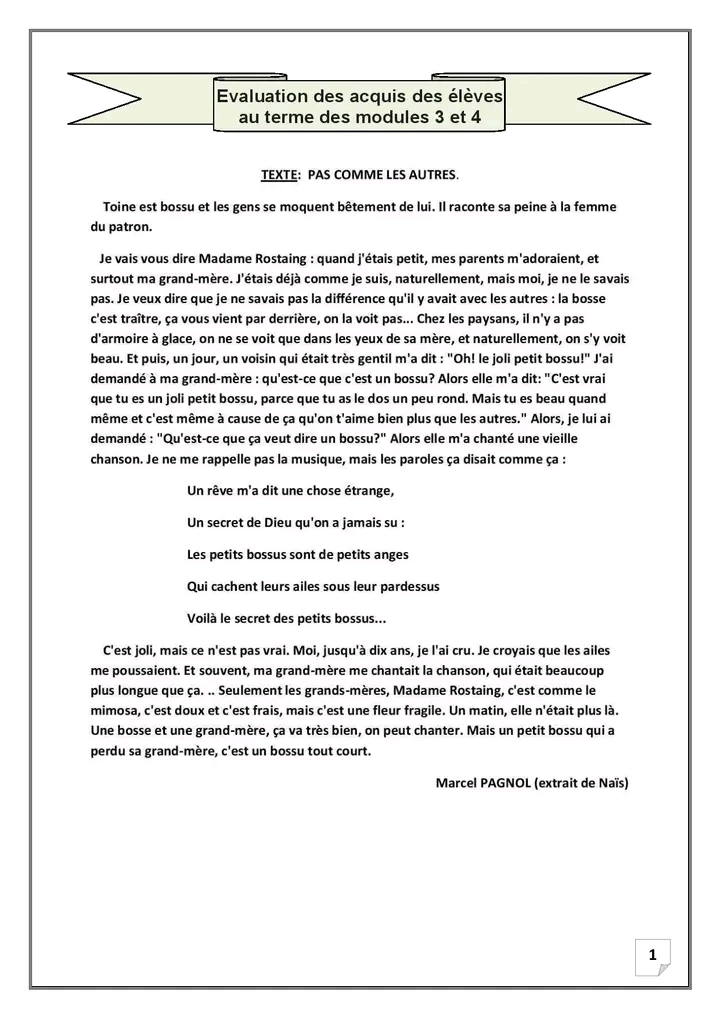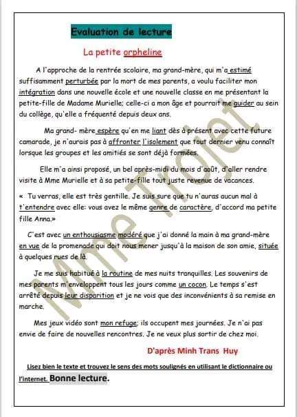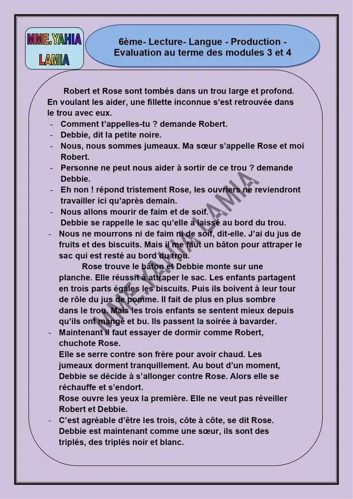 6ème : Evaluation au terme des modules 3 et 4 / Lecture -Langue - Production avec correction