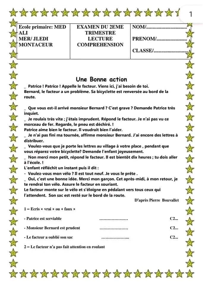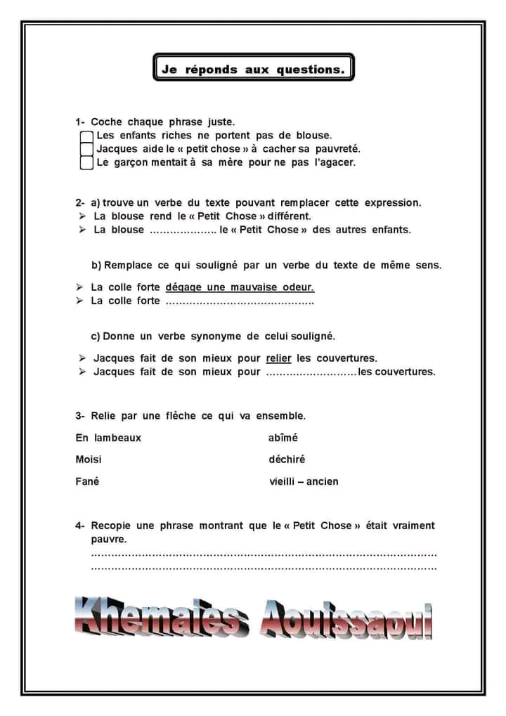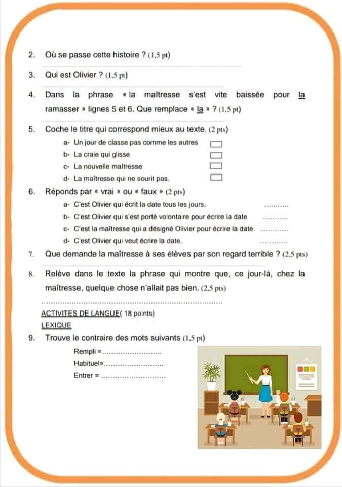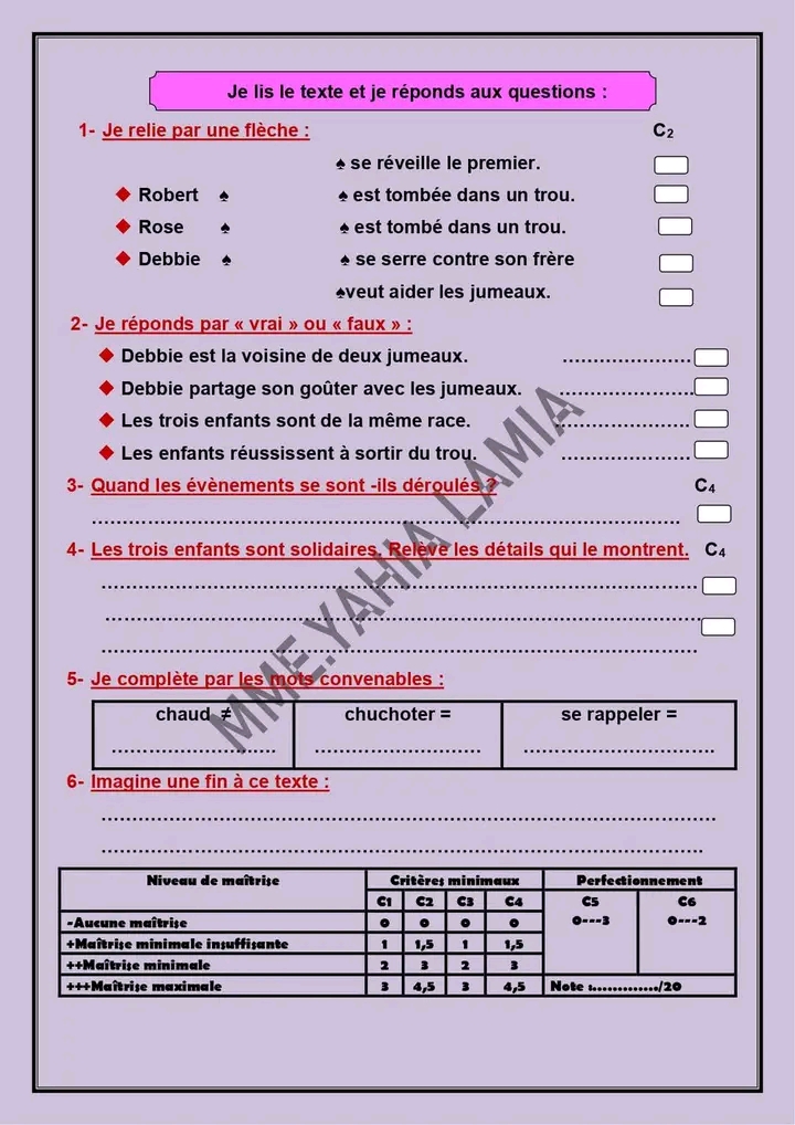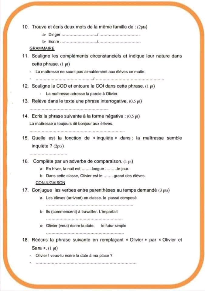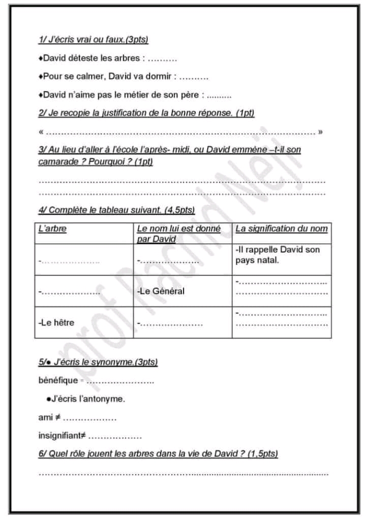 تقييم فرنسية +تمارين +الاصلاح