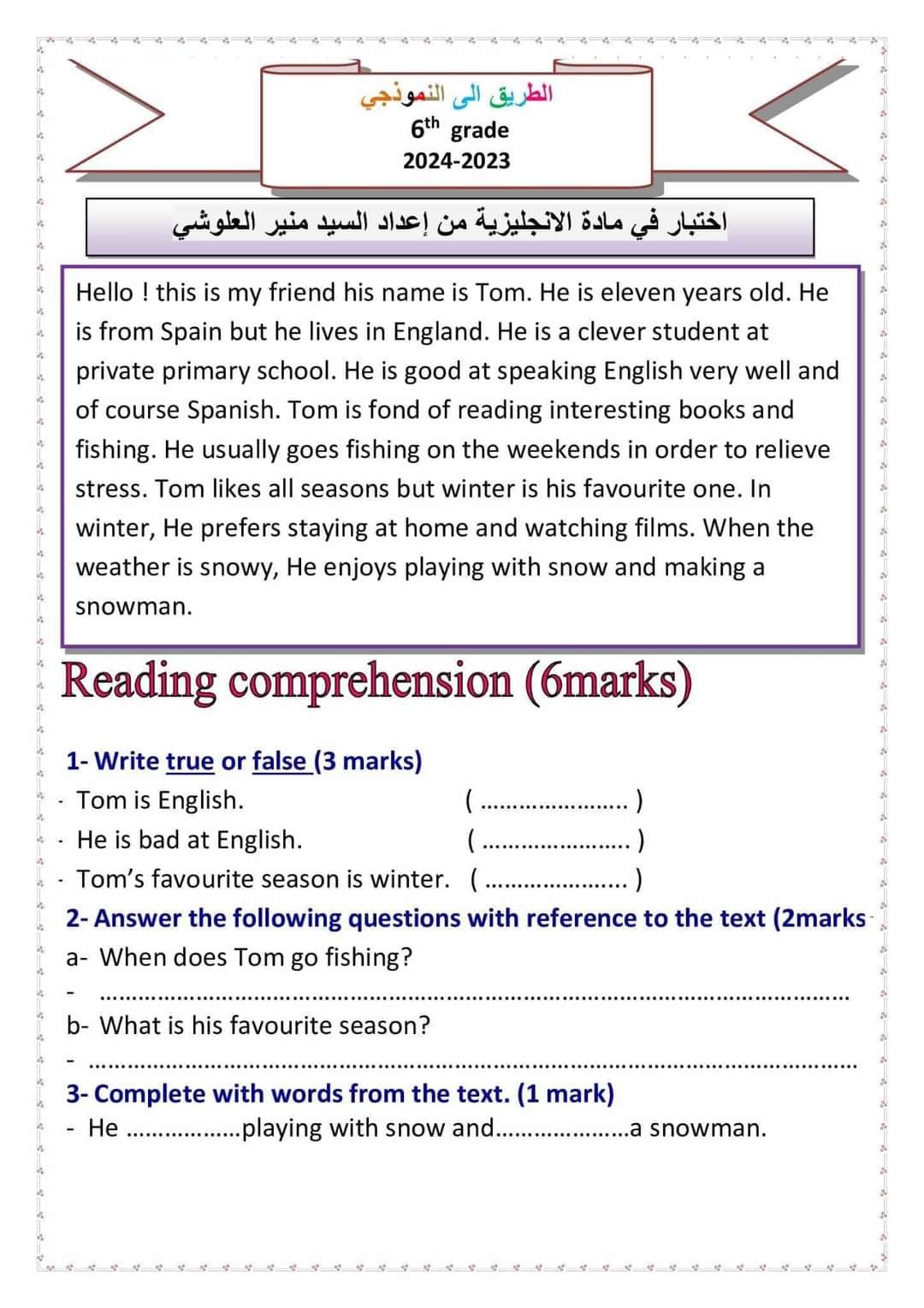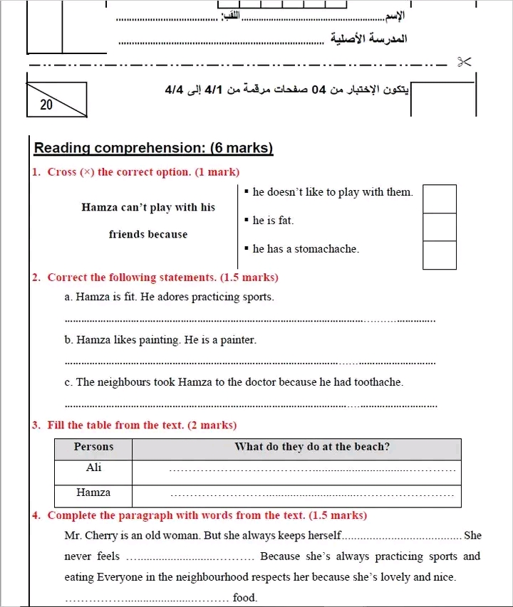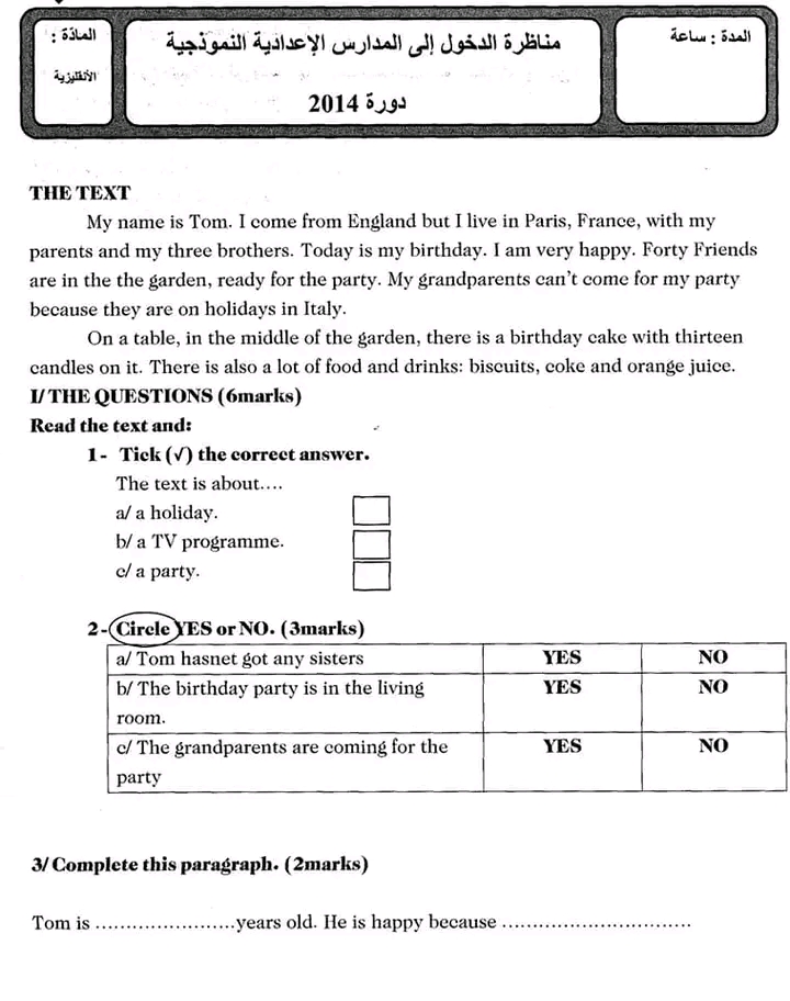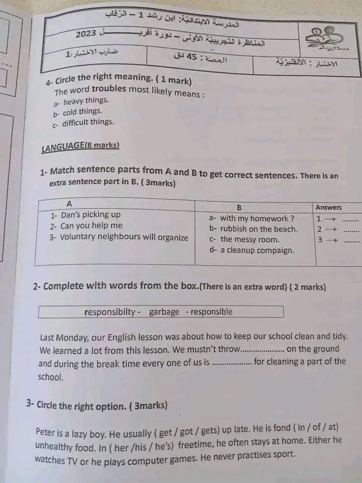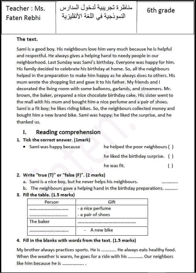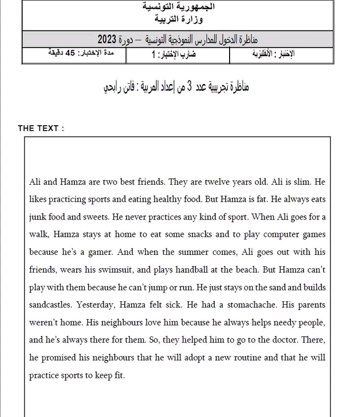 مناظرة تجريبية سنة سادسة انقليزية
