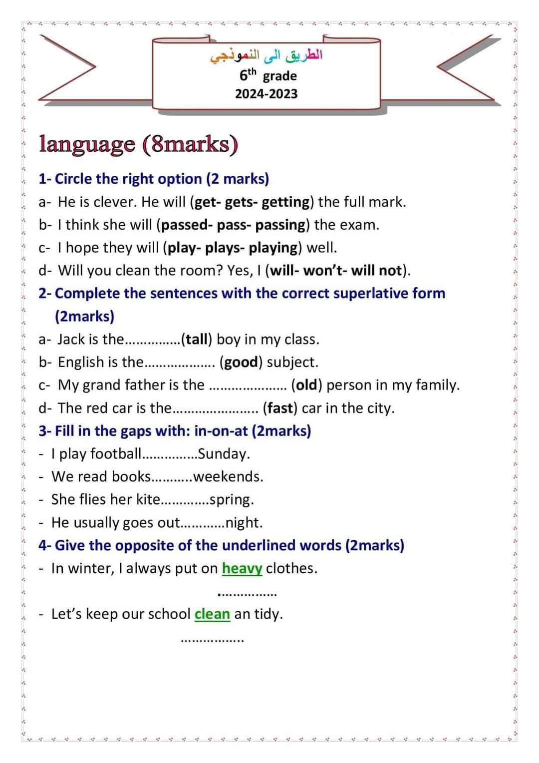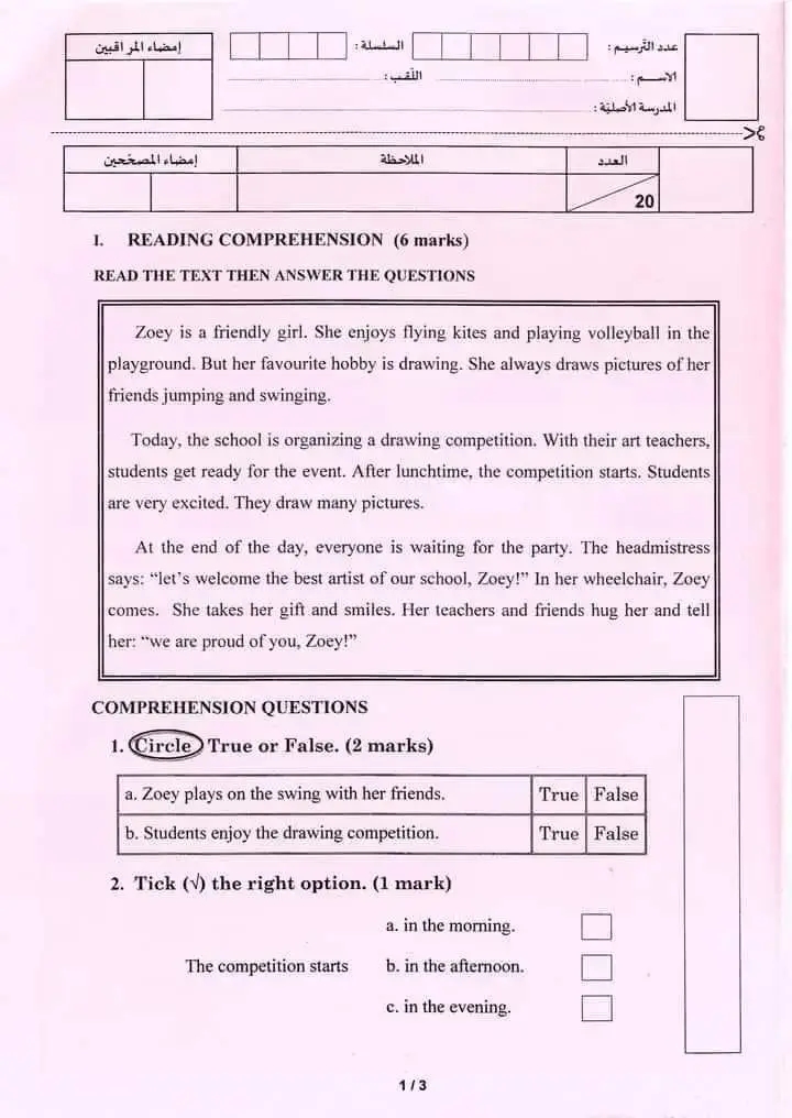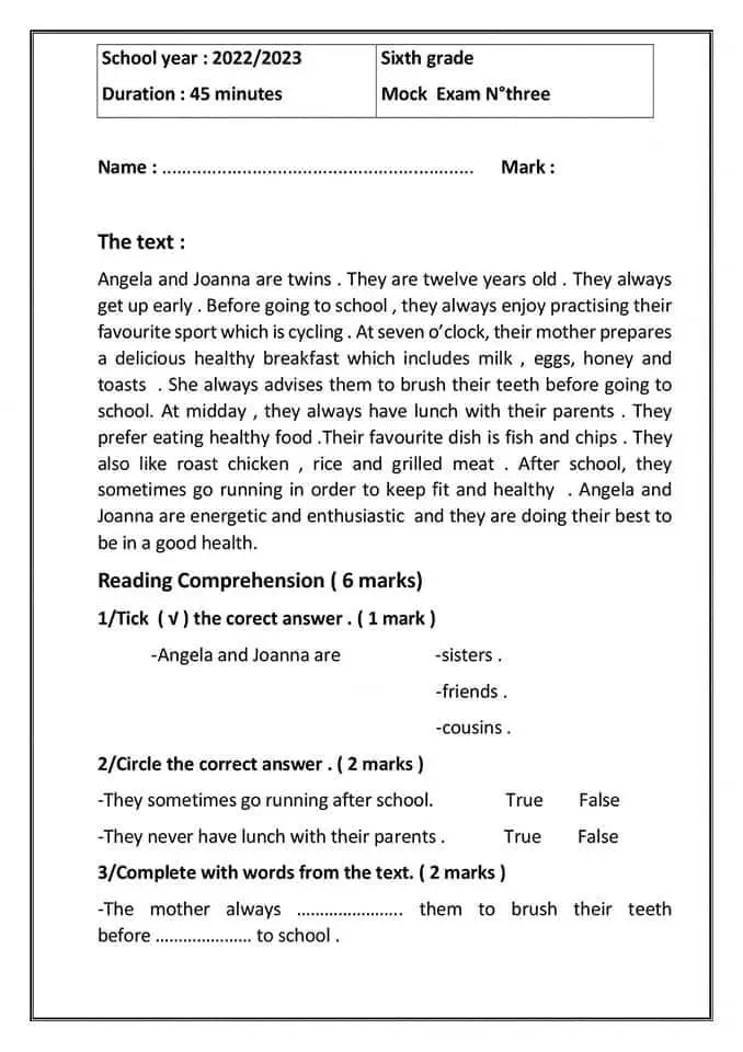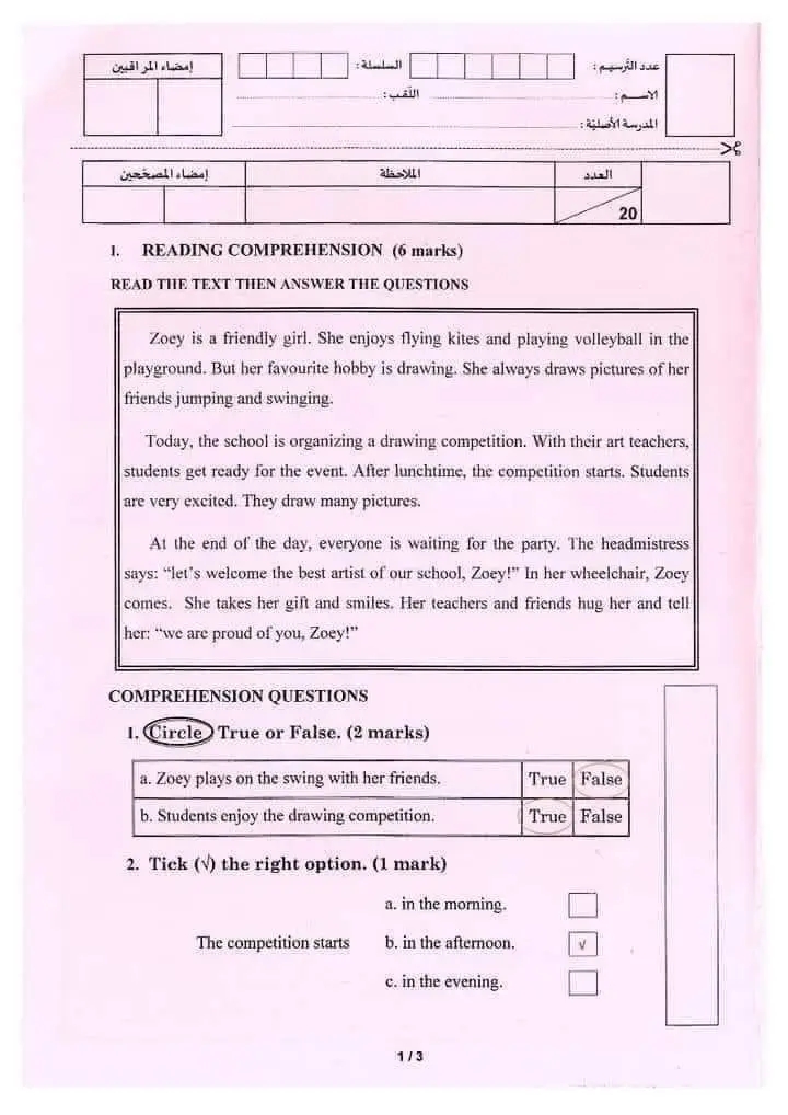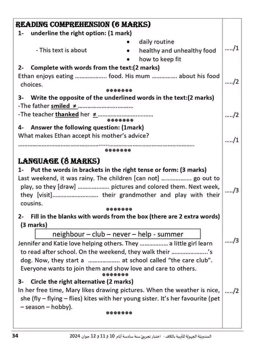 مناظرة تجريبية سنة سادسة انقليزية