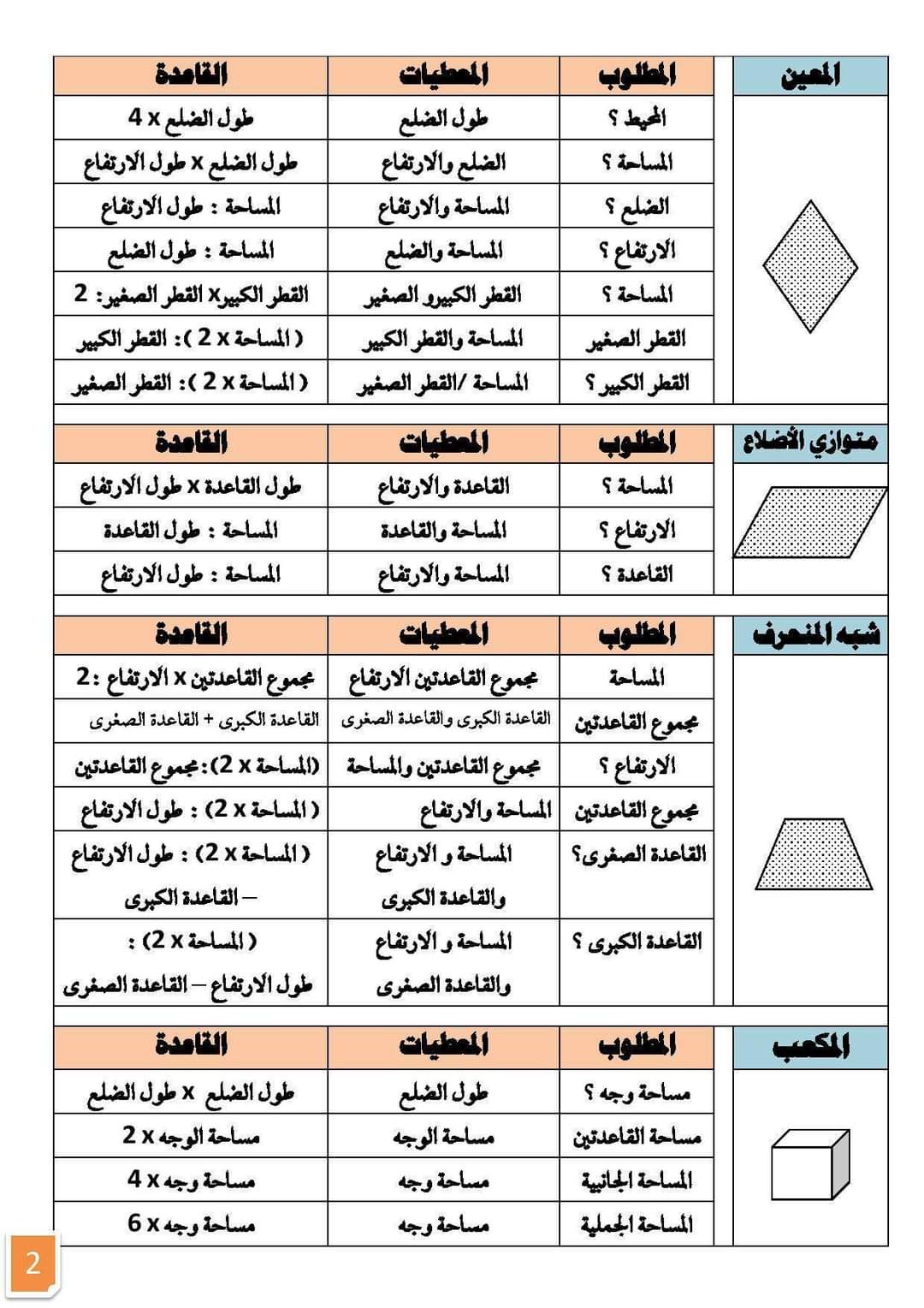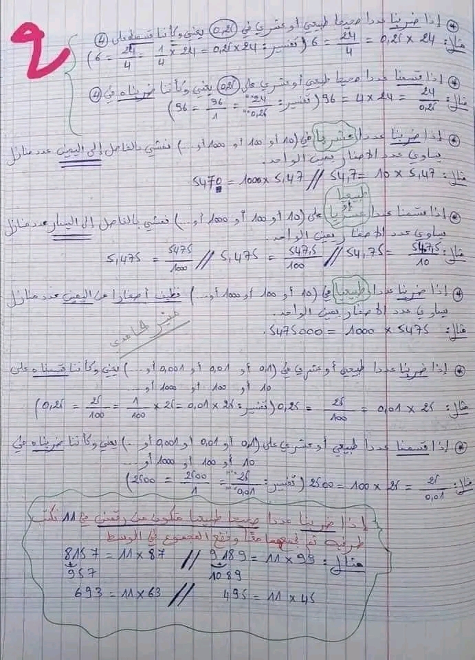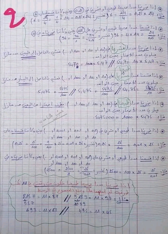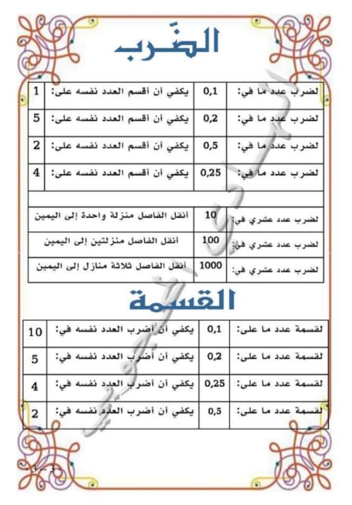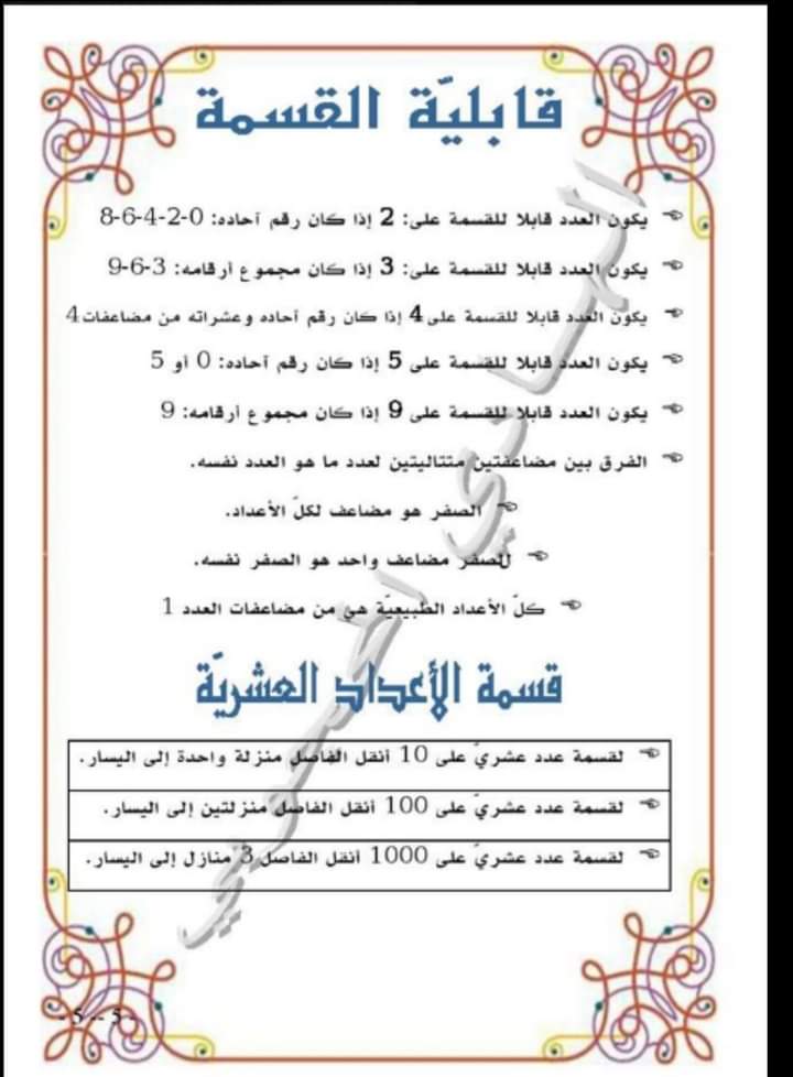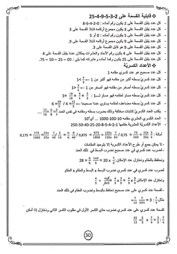 قواعد الرياضيات سنة سادسة