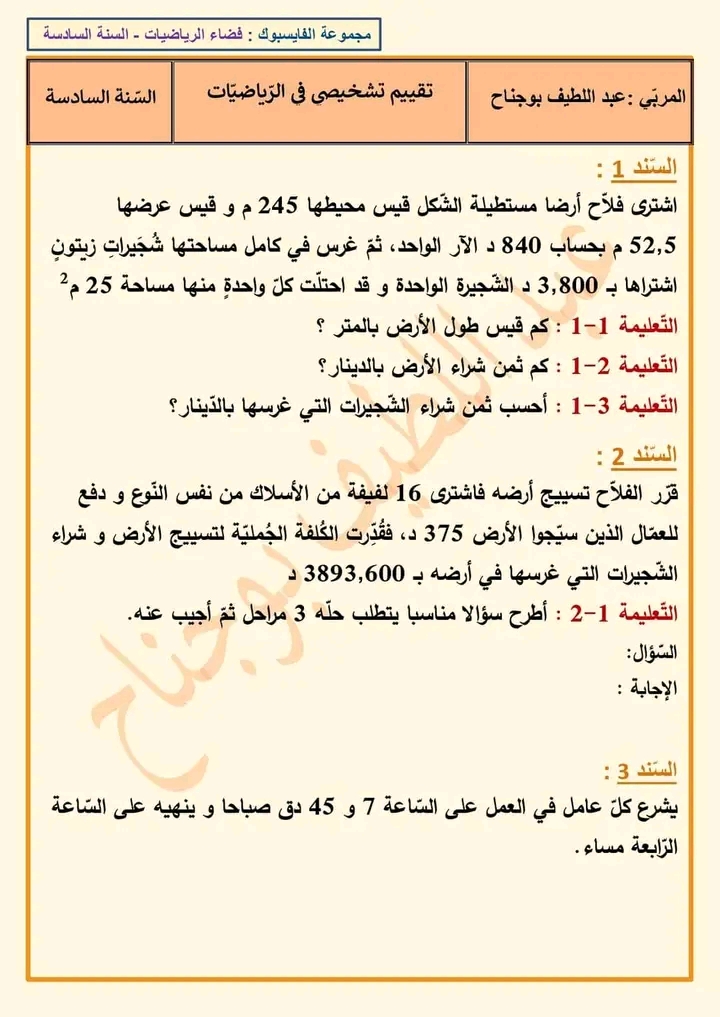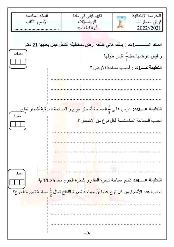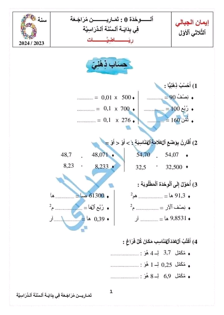 مراجعة كامل السنة لستوات السادسة و التاسعة اساسي بالاصلاح