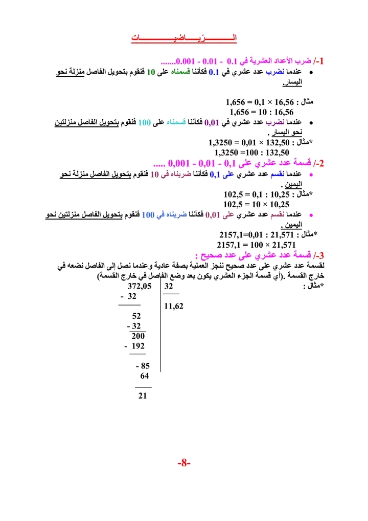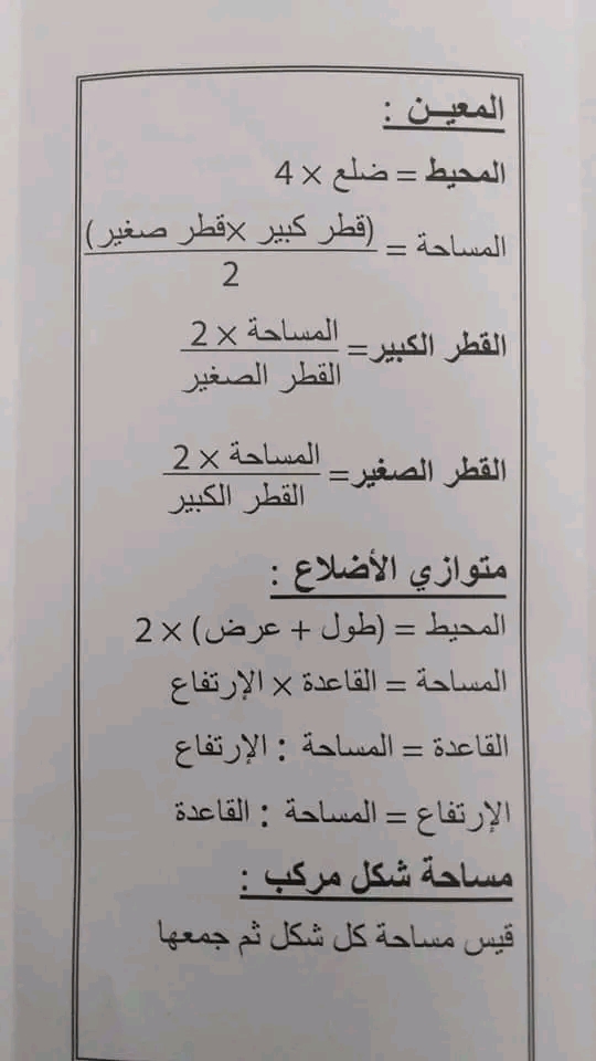 قواعد رياضيات ملخصات مناظرات بالاصلاح
