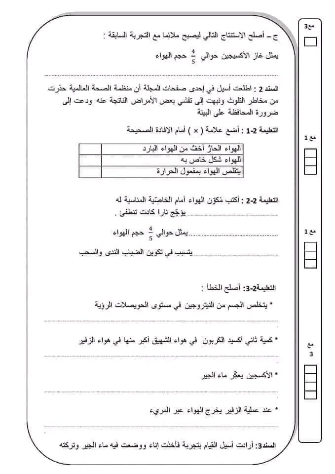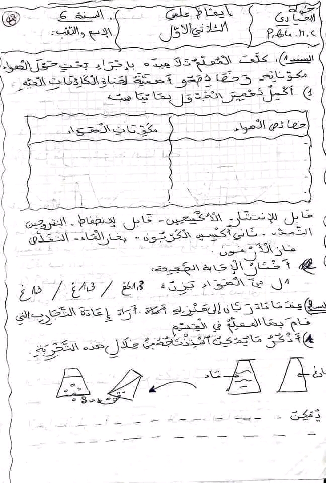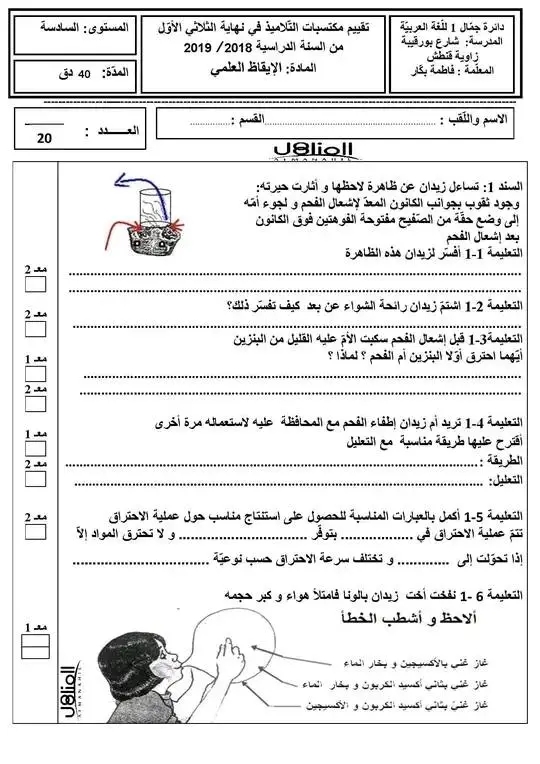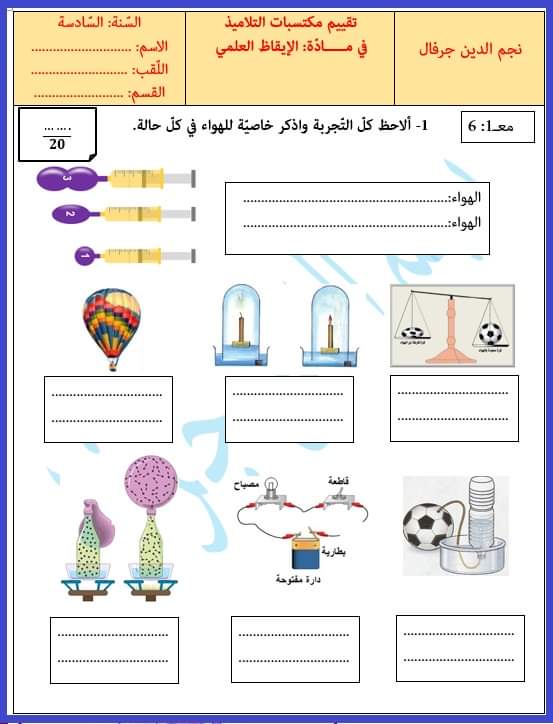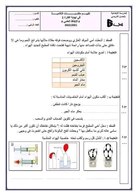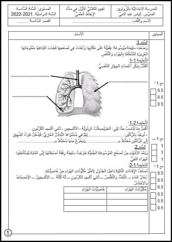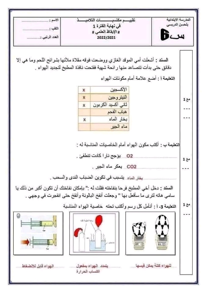 تقييم ايقاظ علمي بالاصلاح سنة سادسة ثلاثي أول