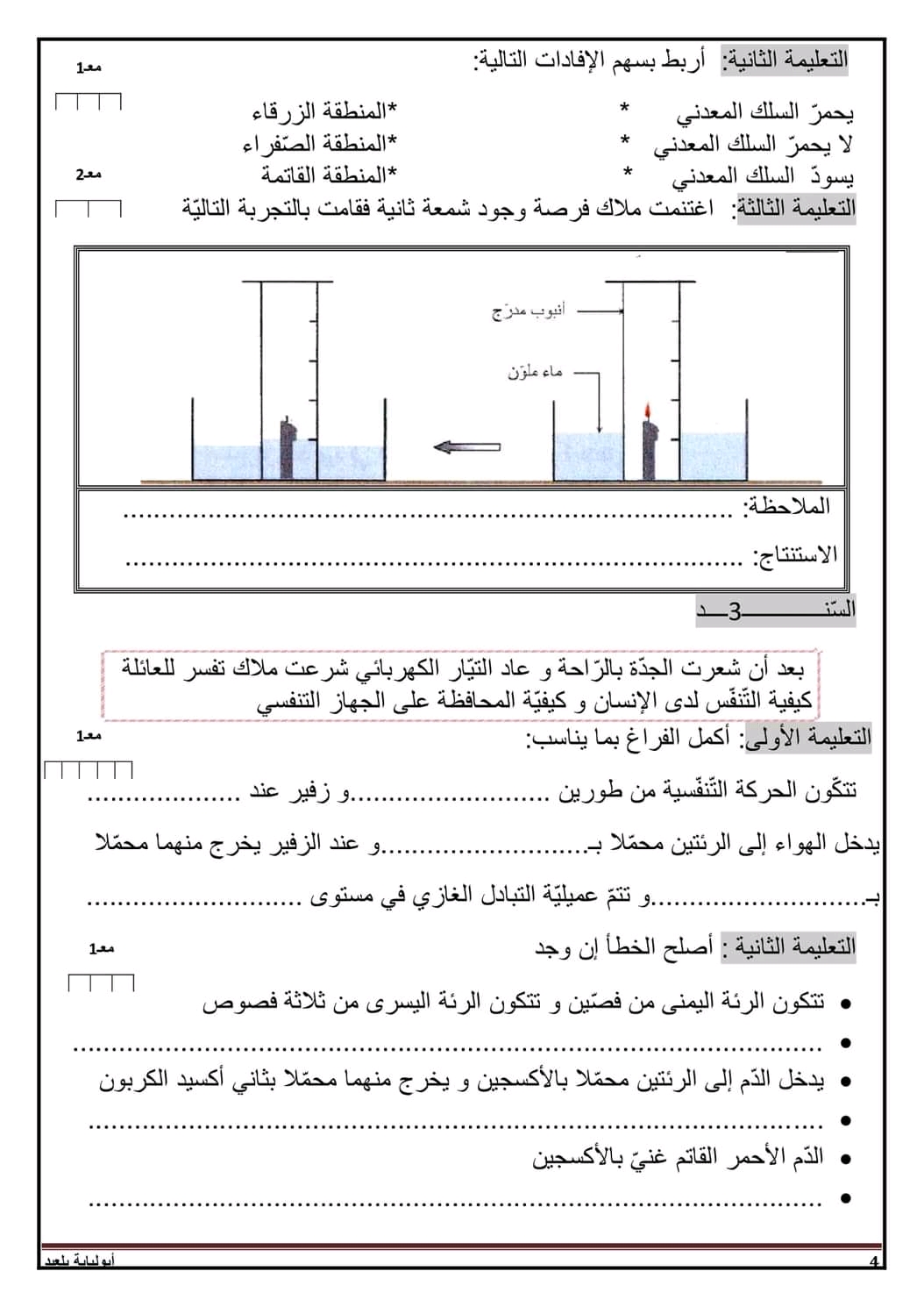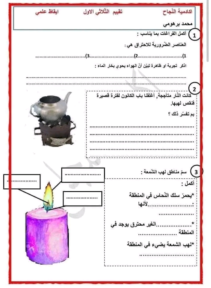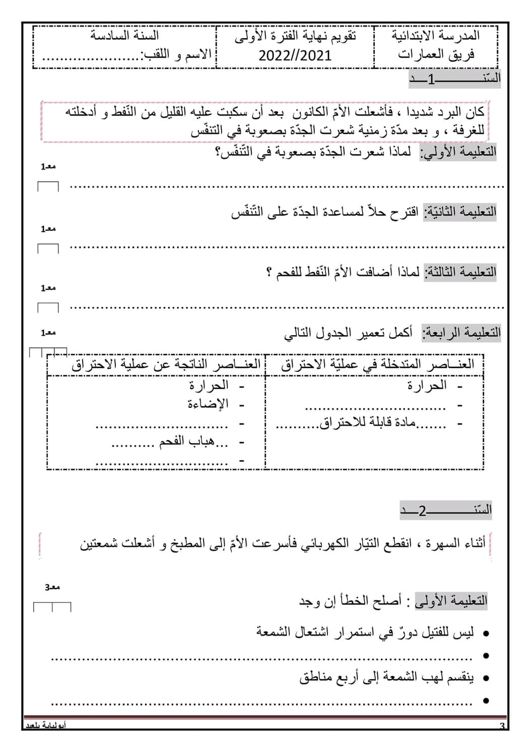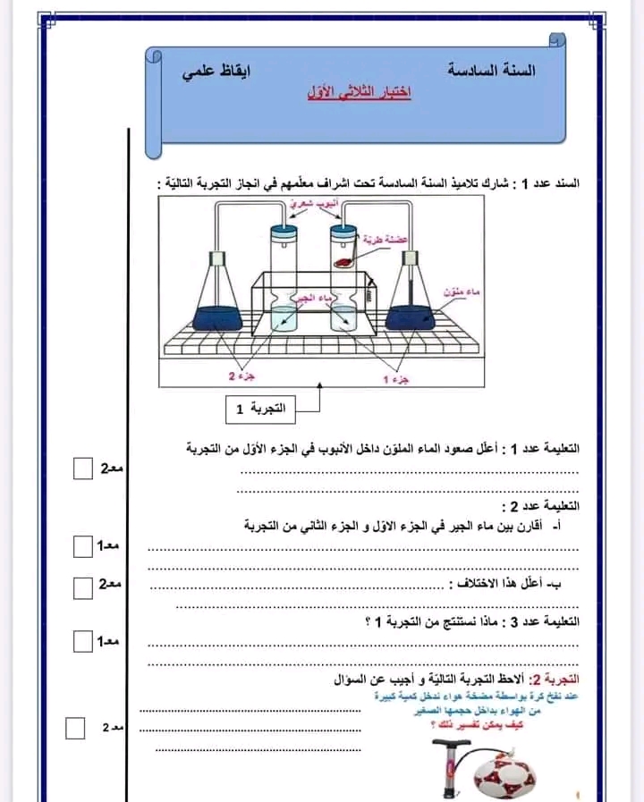 تقييم ايقاظ علمي بالاصلاح سنة سادسة ثلاثي أول
