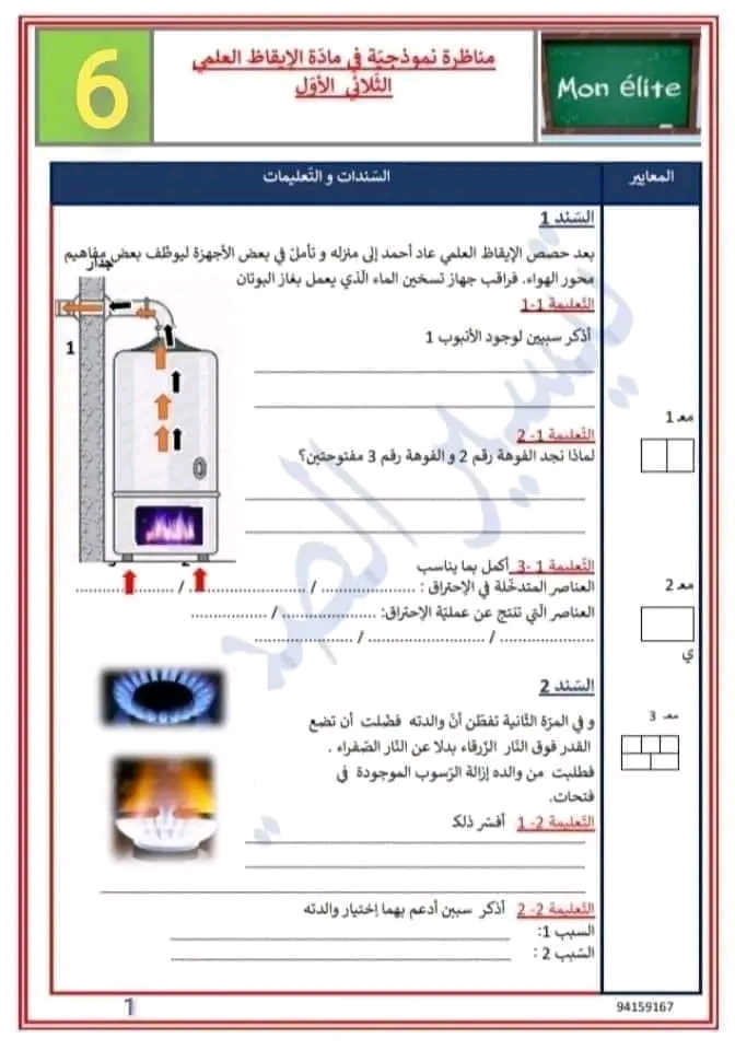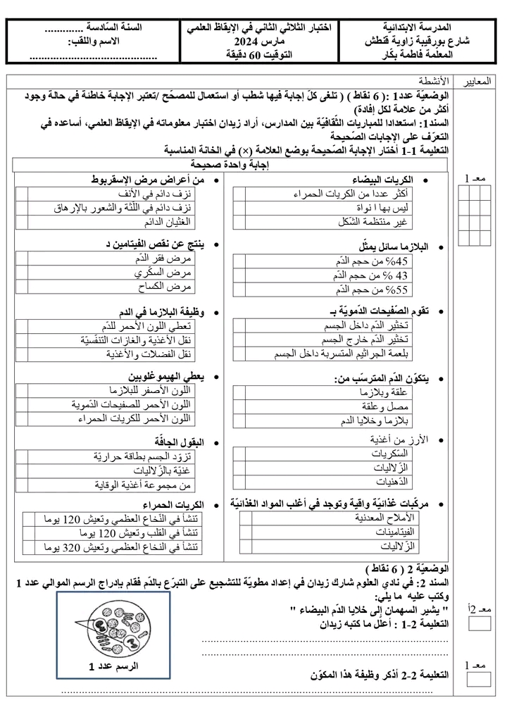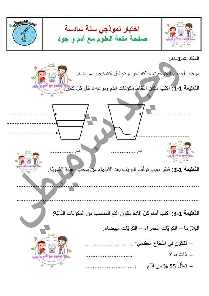 نموذج لامتحان في الايقاظ العلمي -الثلاثي الثاني + الاصلاح