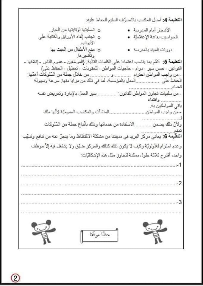 تقاييم تربية مدينة الثلاثي الثاني سنة سادسة