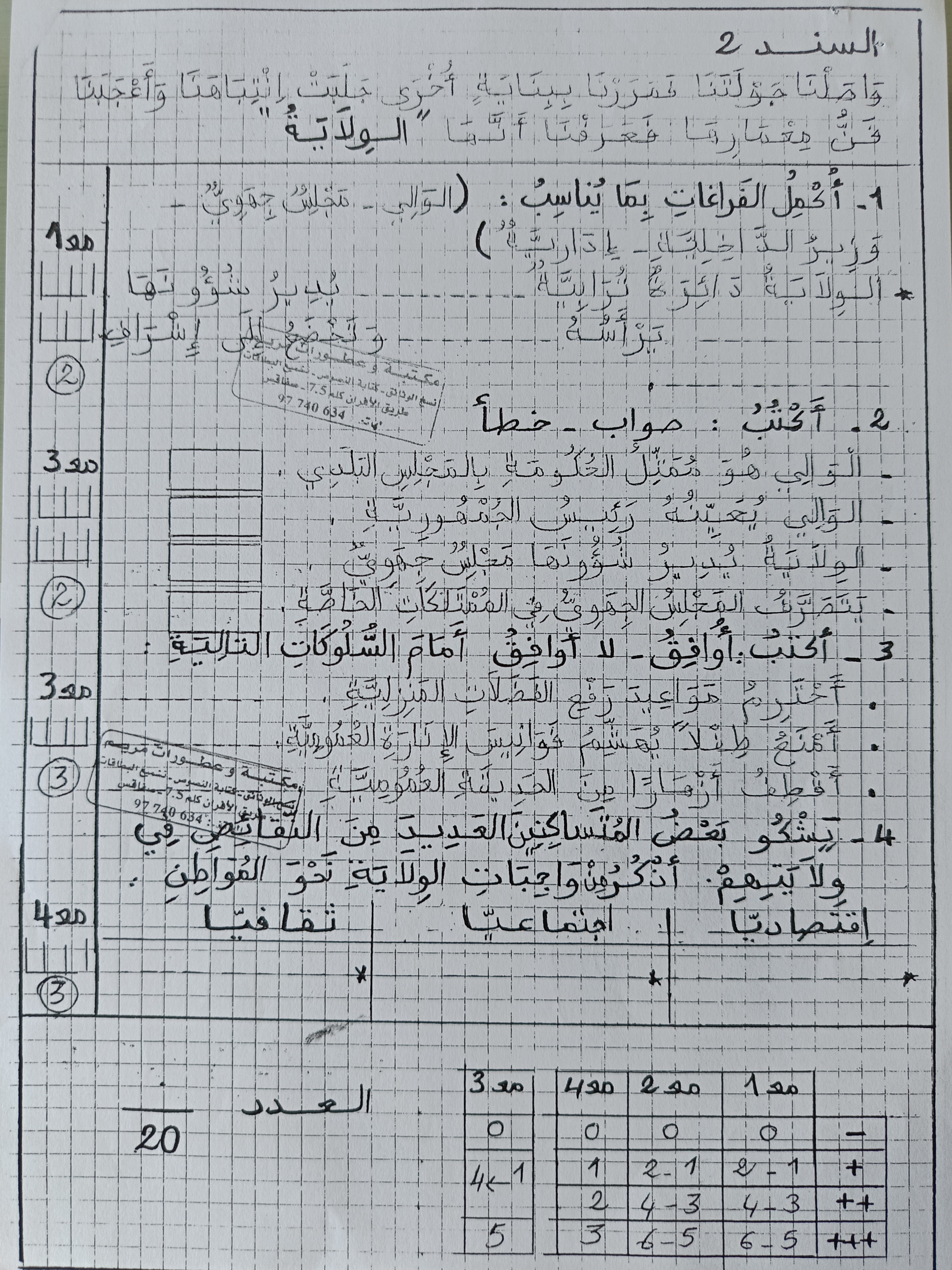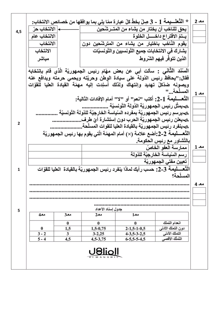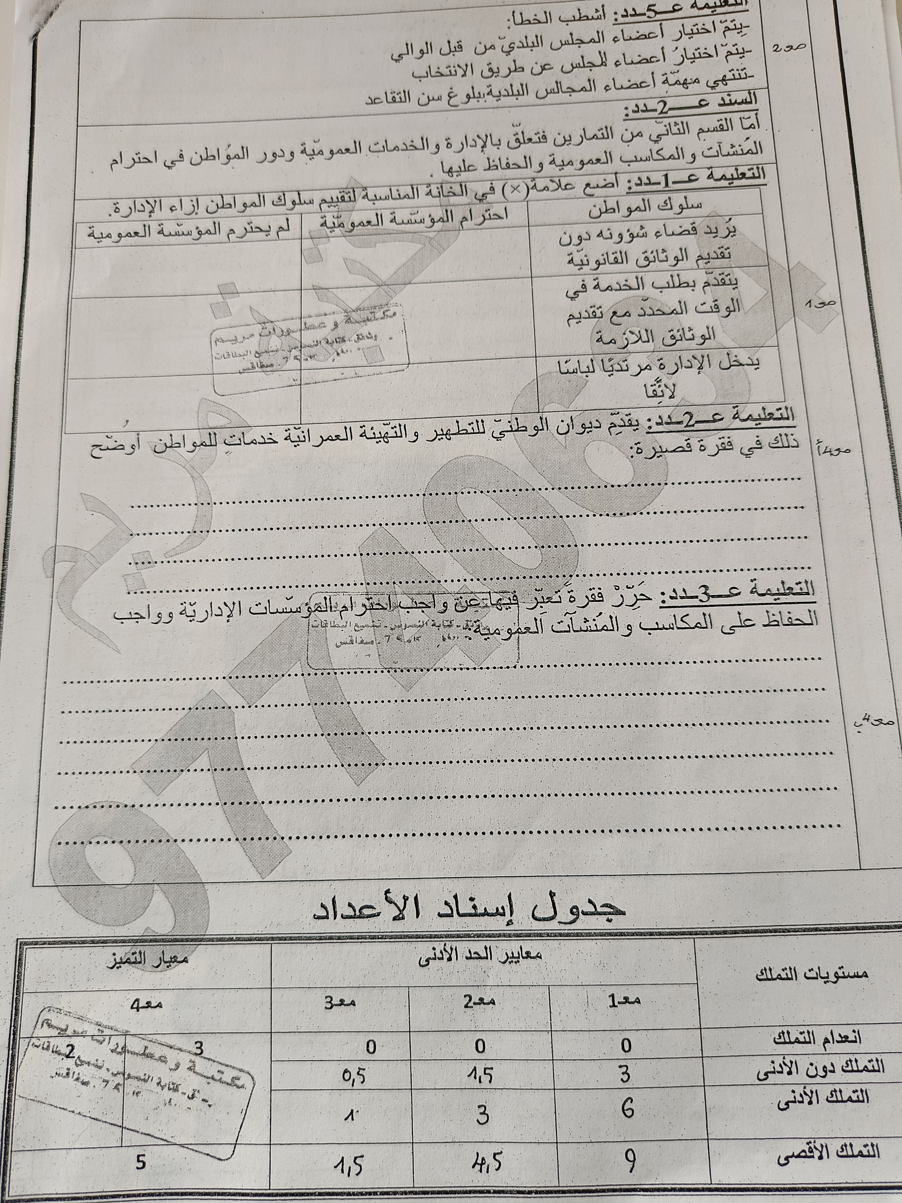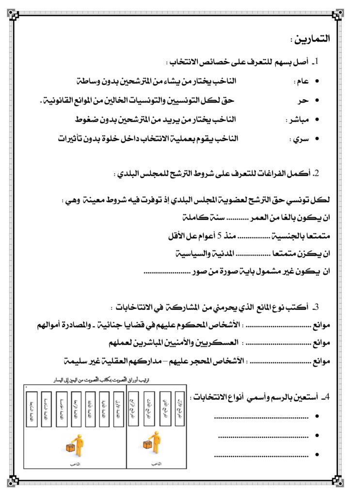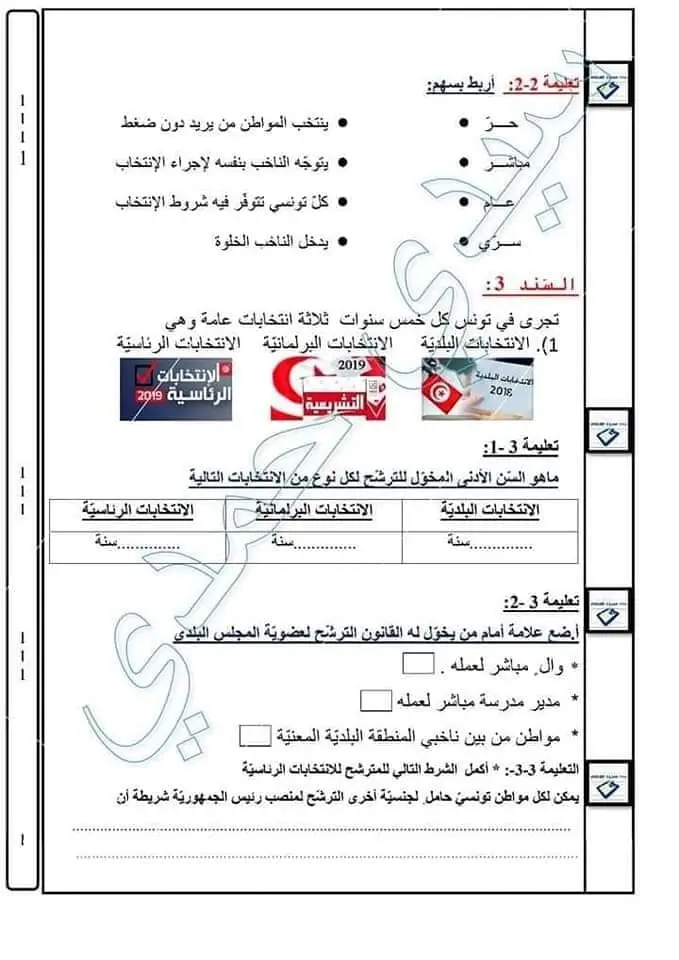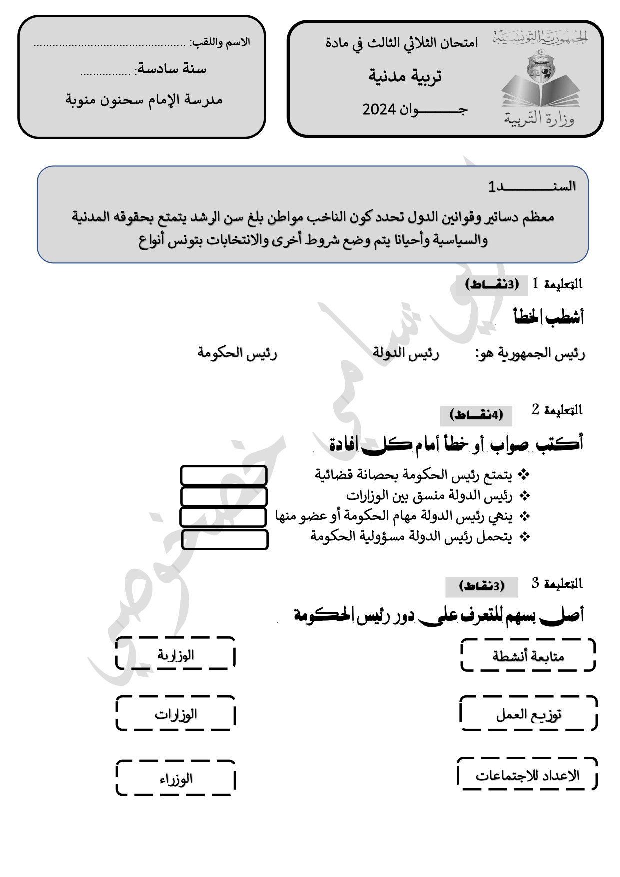 اختبارات تربية مدينة سنة سادسة الثلاثي الاول