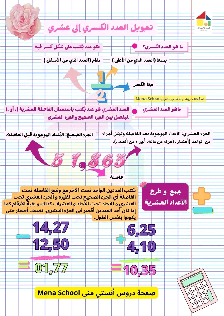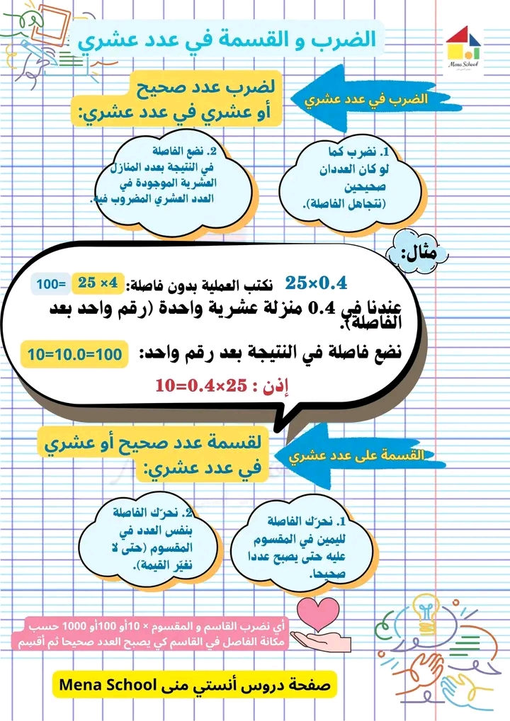 ضرب و قسمة الأعداد العشرية درس مبّسط للمبتدئين #سنة_سادسة Mena School دروس أنستي منى 💕💜💜