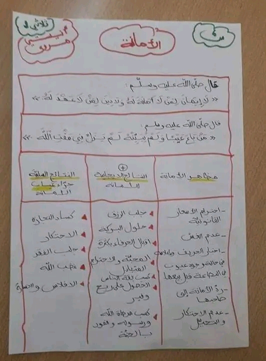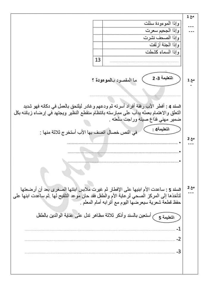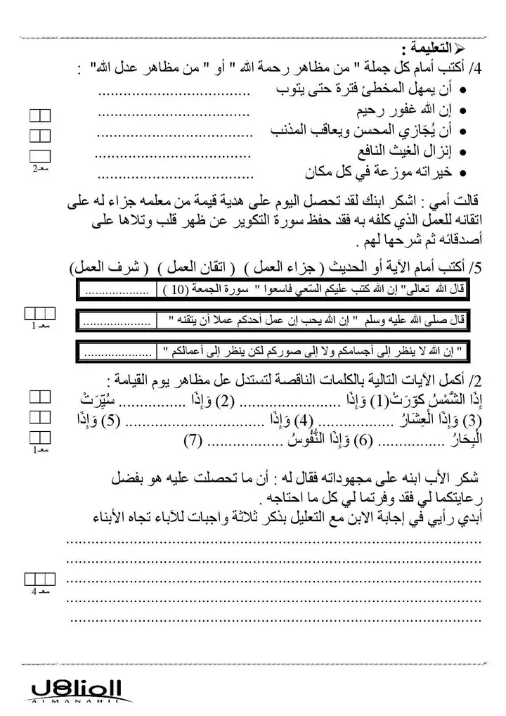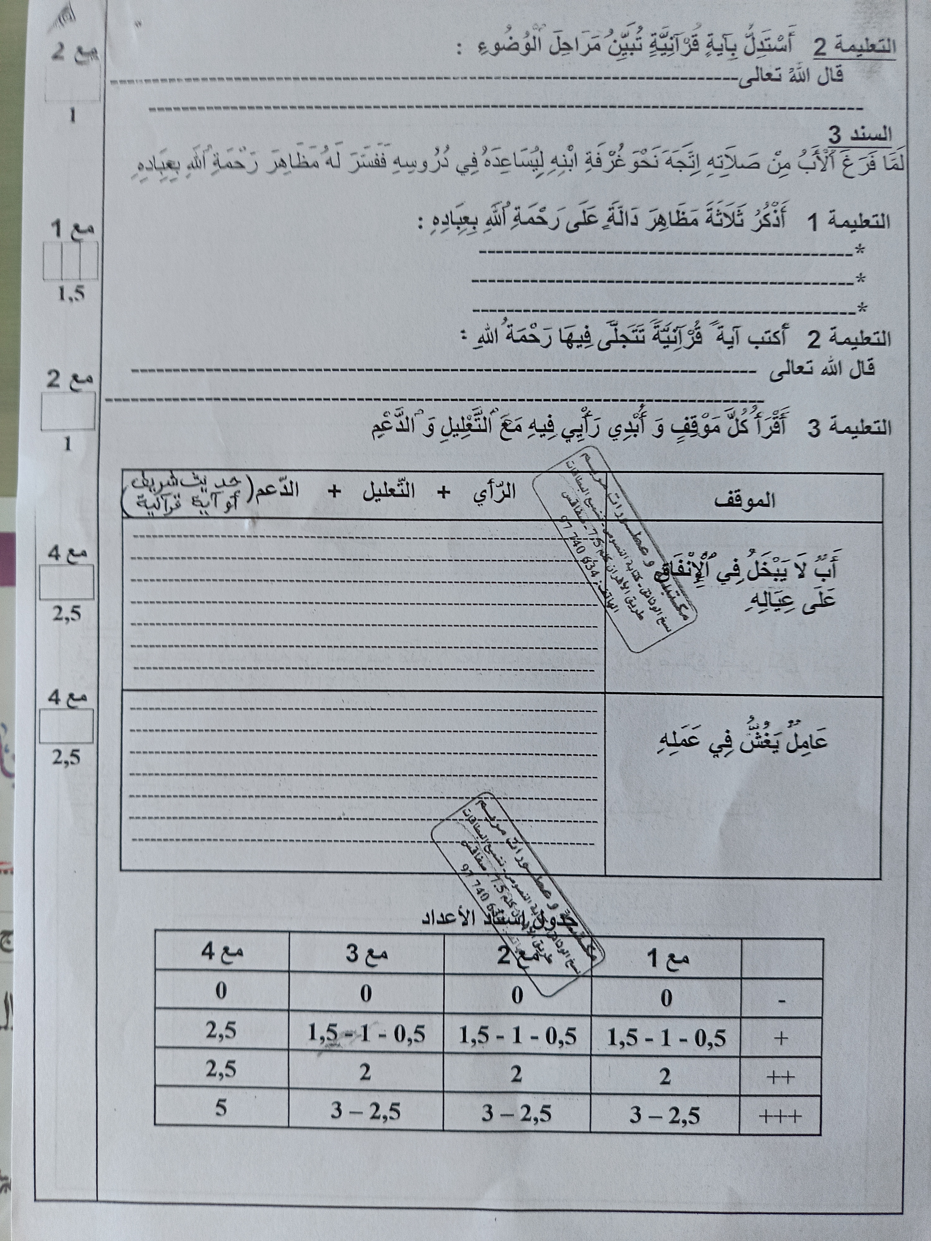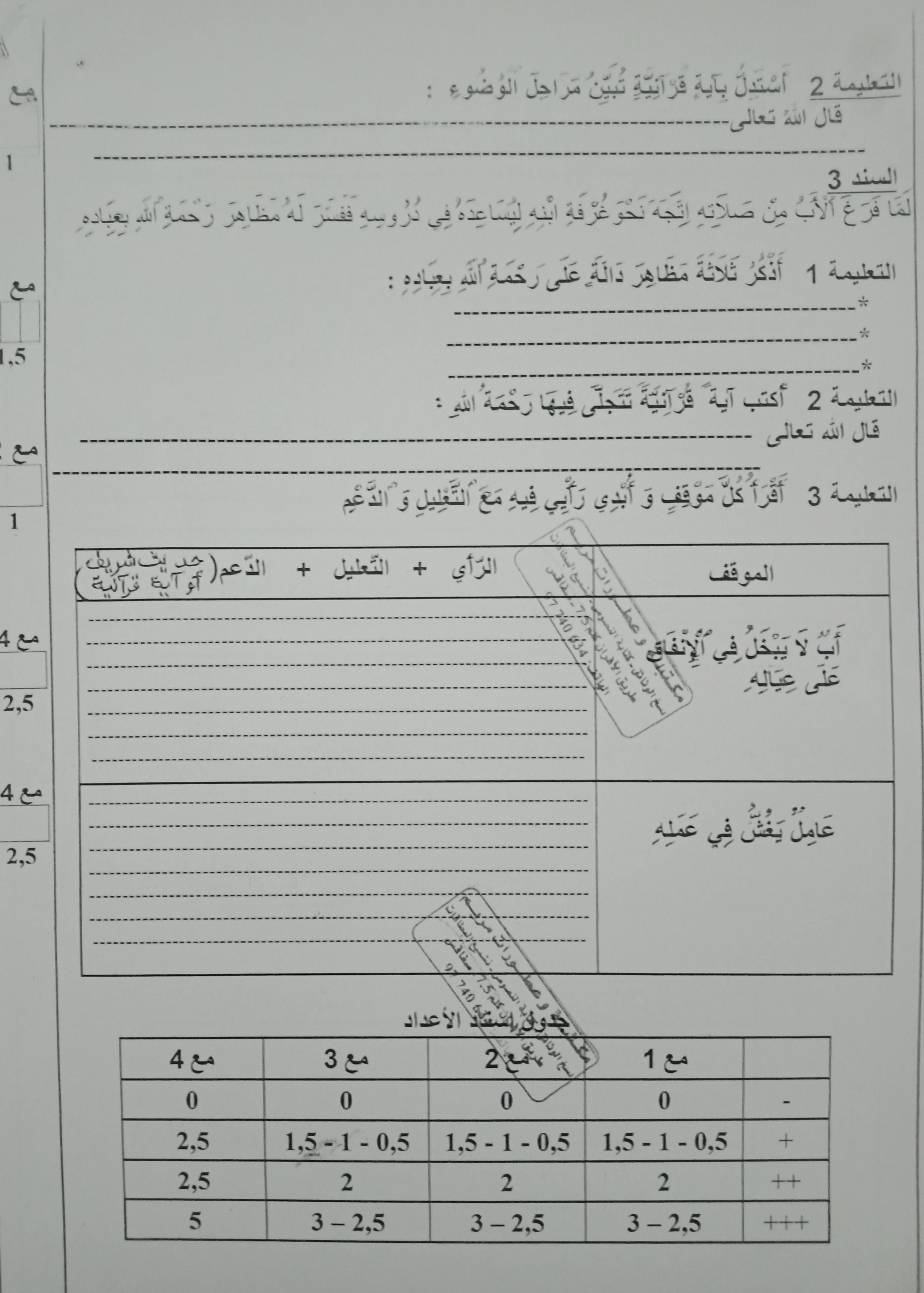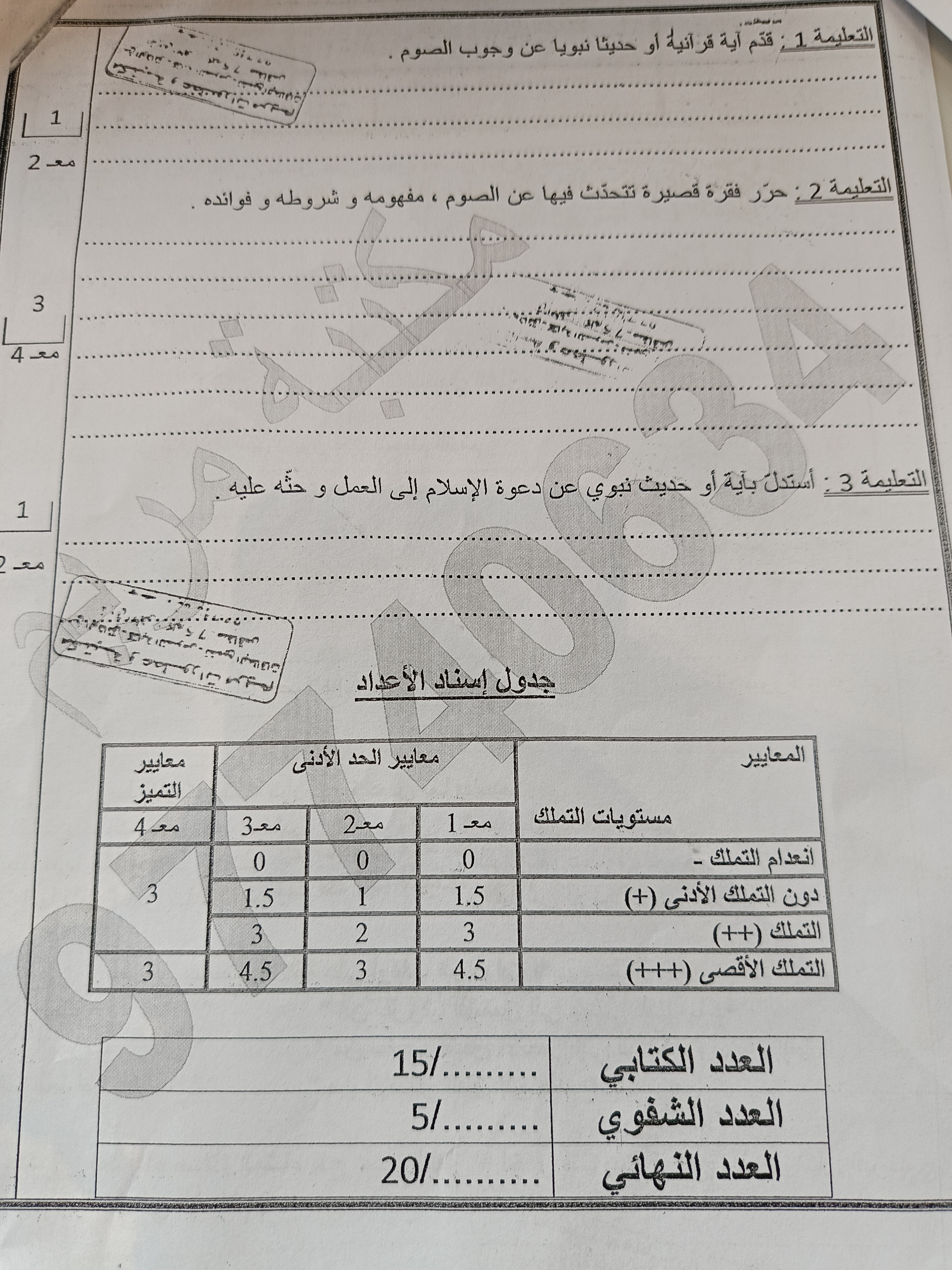 تقاييم تربية إسلامية الثلاثي الثاني سنة سادسة