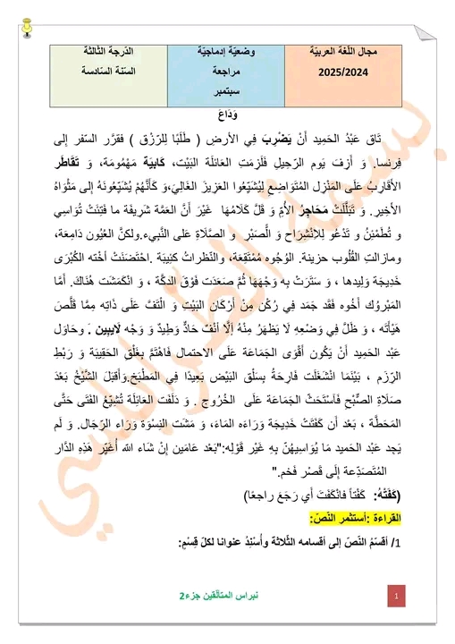 مراجعة عربية سنة سادسة