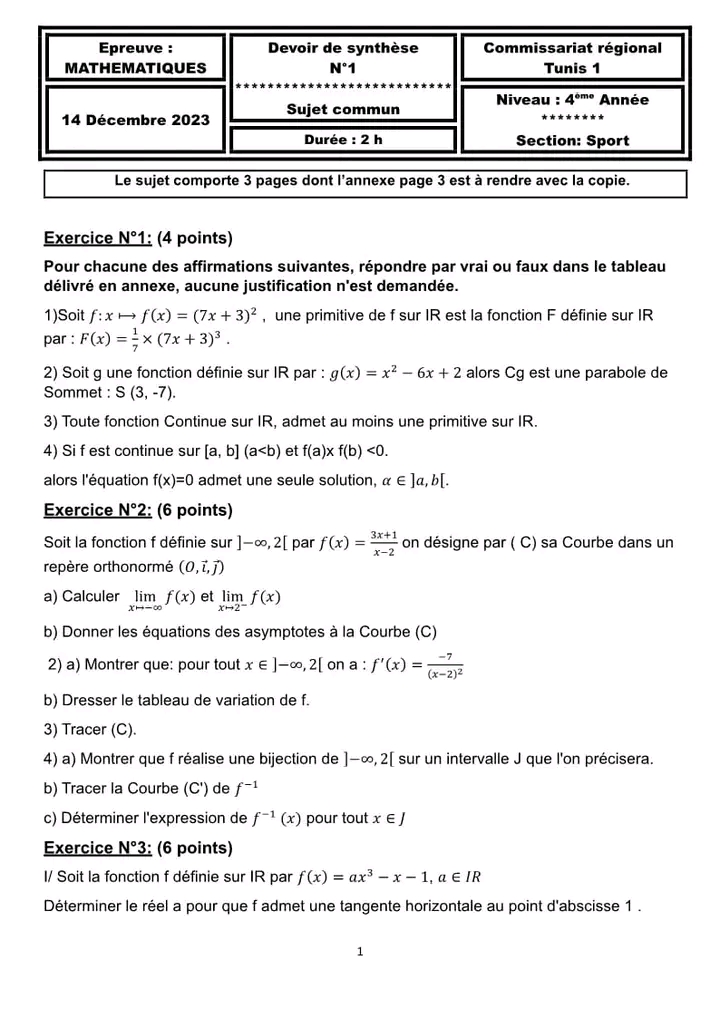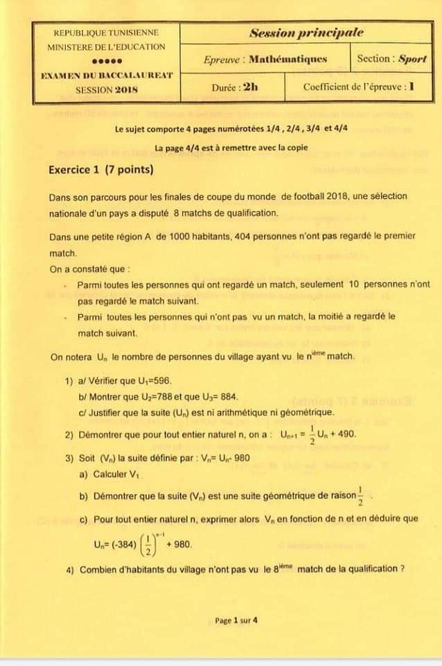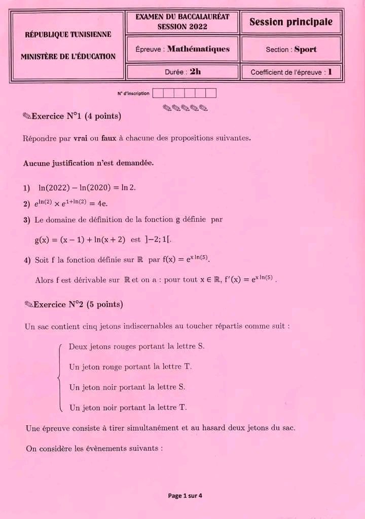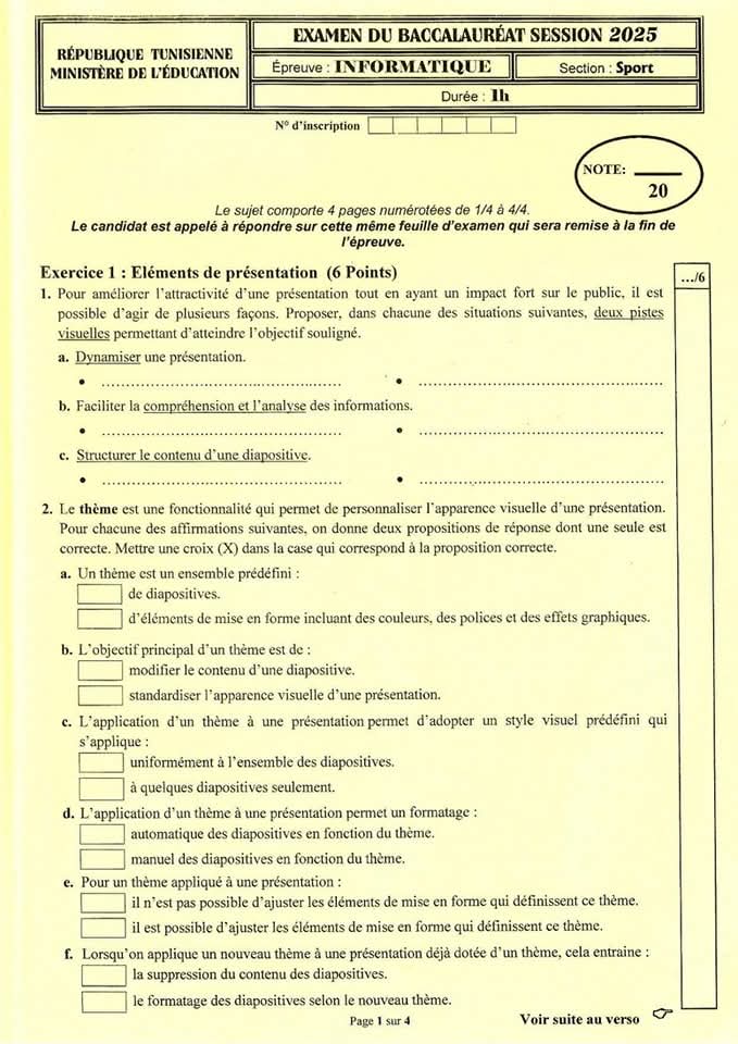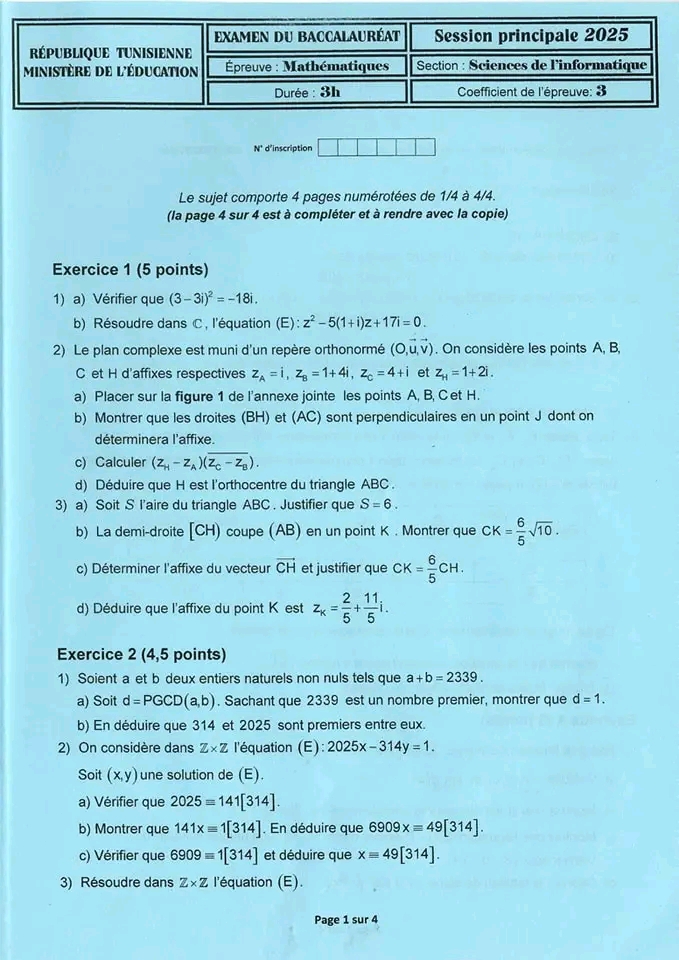 إمتحان الرياضيات باكالوريا علوم إعلامية الدورة الرئيسية باكالوريا 2025 .