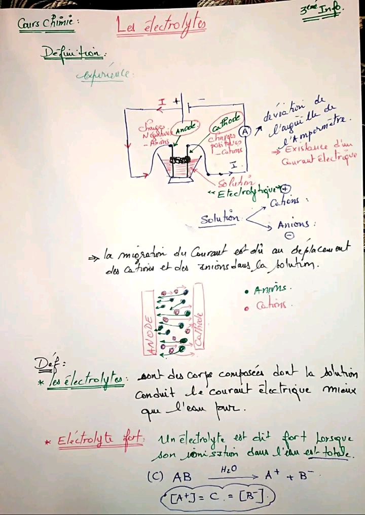 Résumé de cours chimie "les électrolytes" 😍