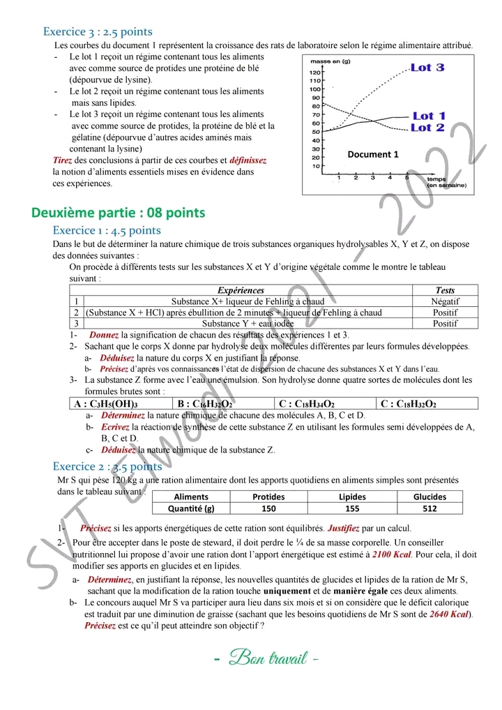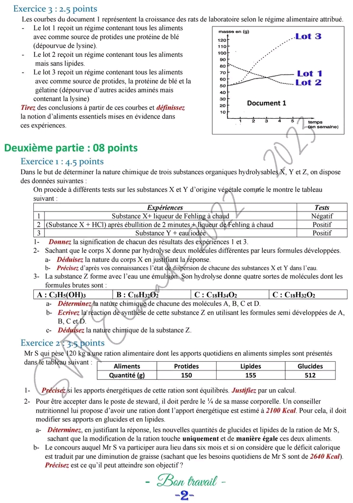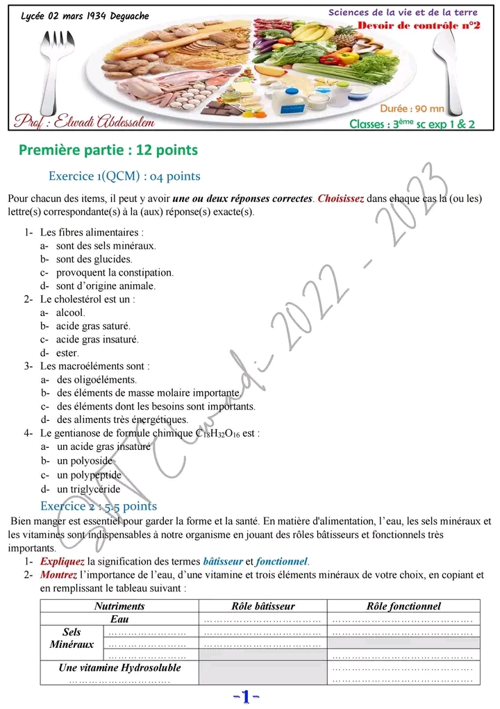 Devoir de contrôle n°2 3ème sc exp + corrigé.