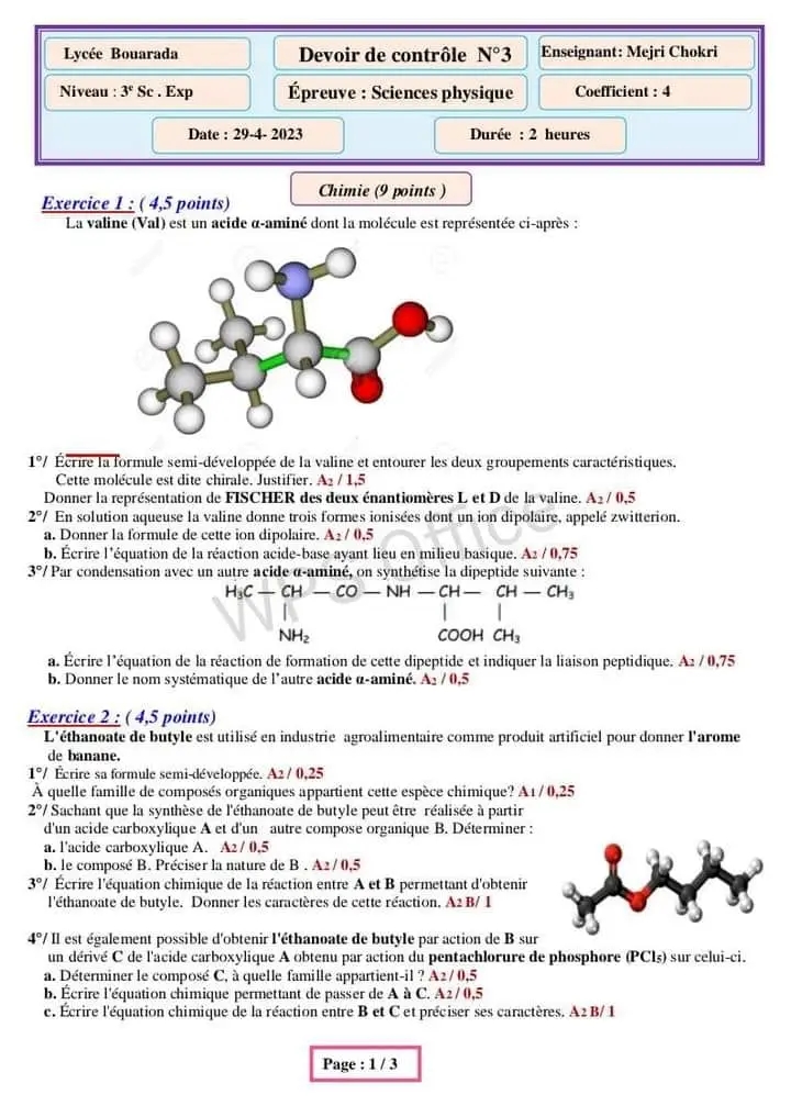 devoir cont 3 3 Sc exp
