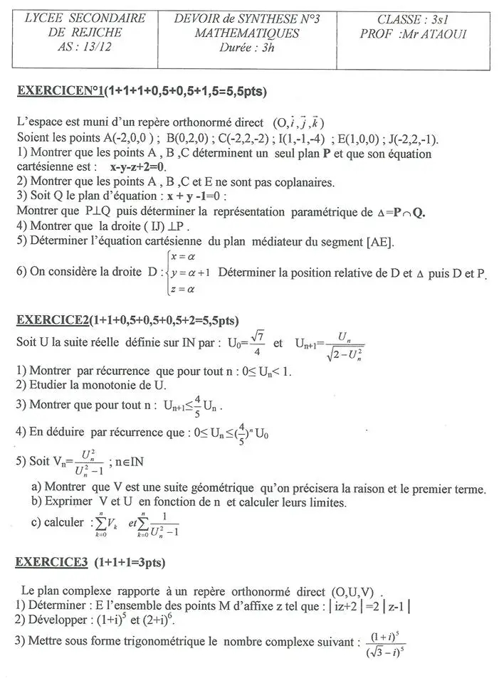 Devoirs de synthèse Math trimestre 3 ( 2 )