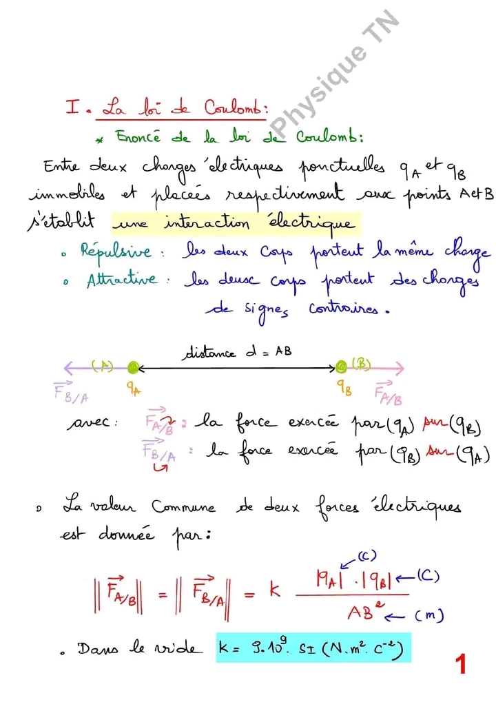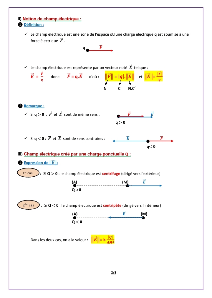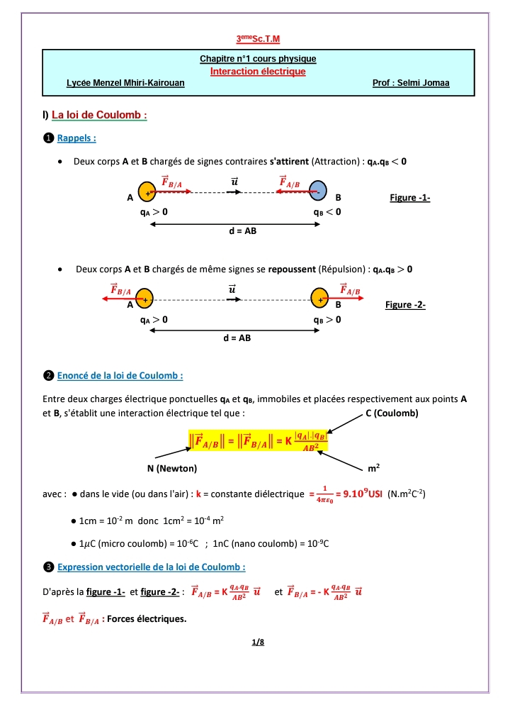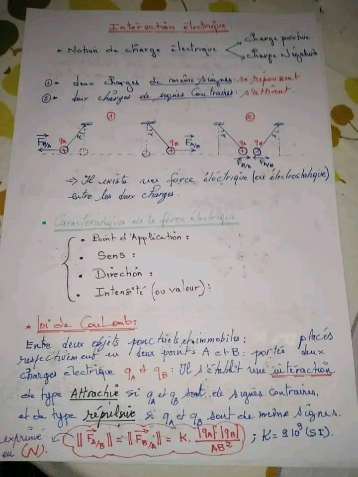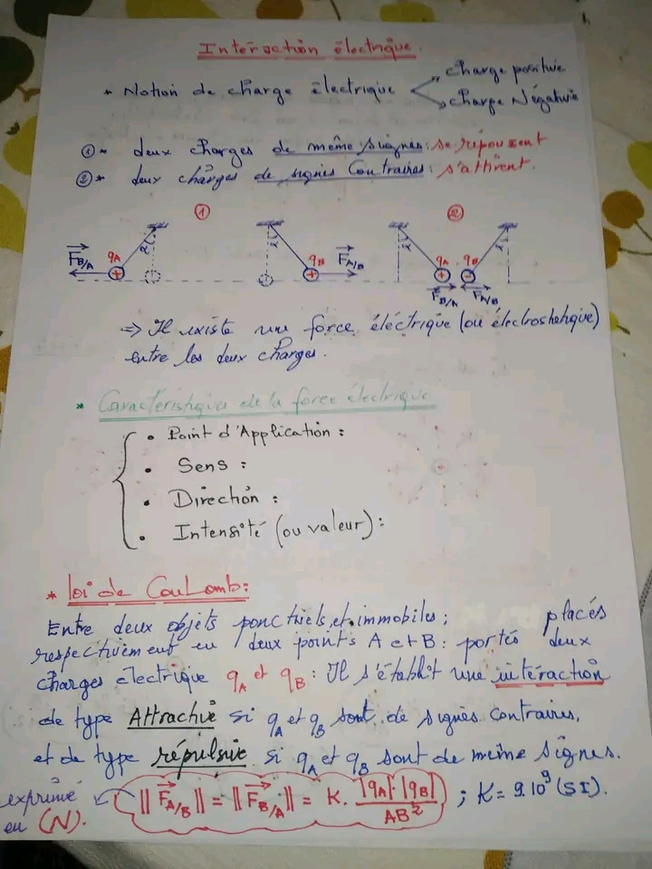 Cours Interaction électrique - 3eme Science