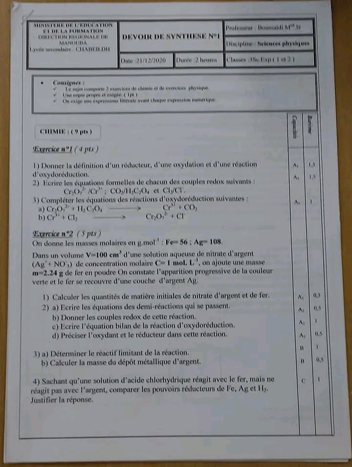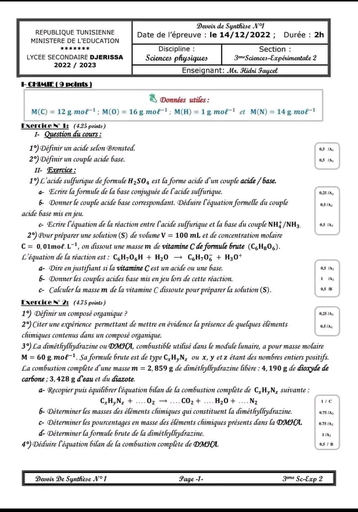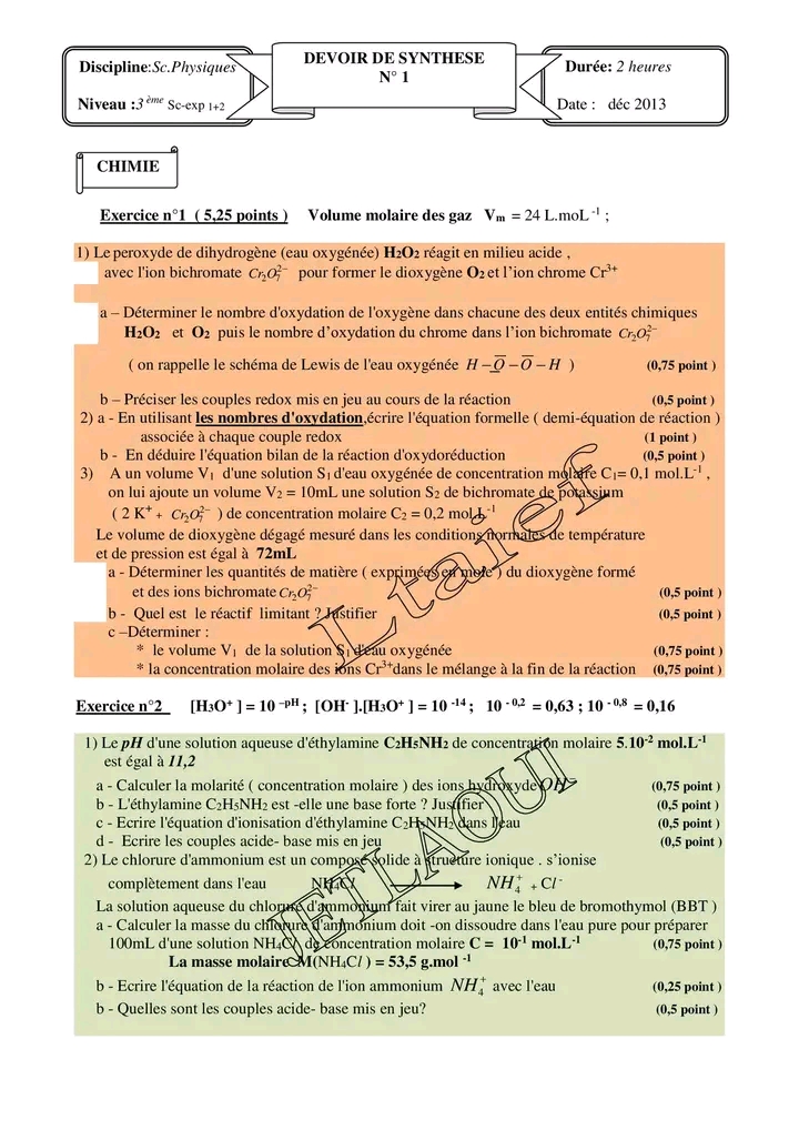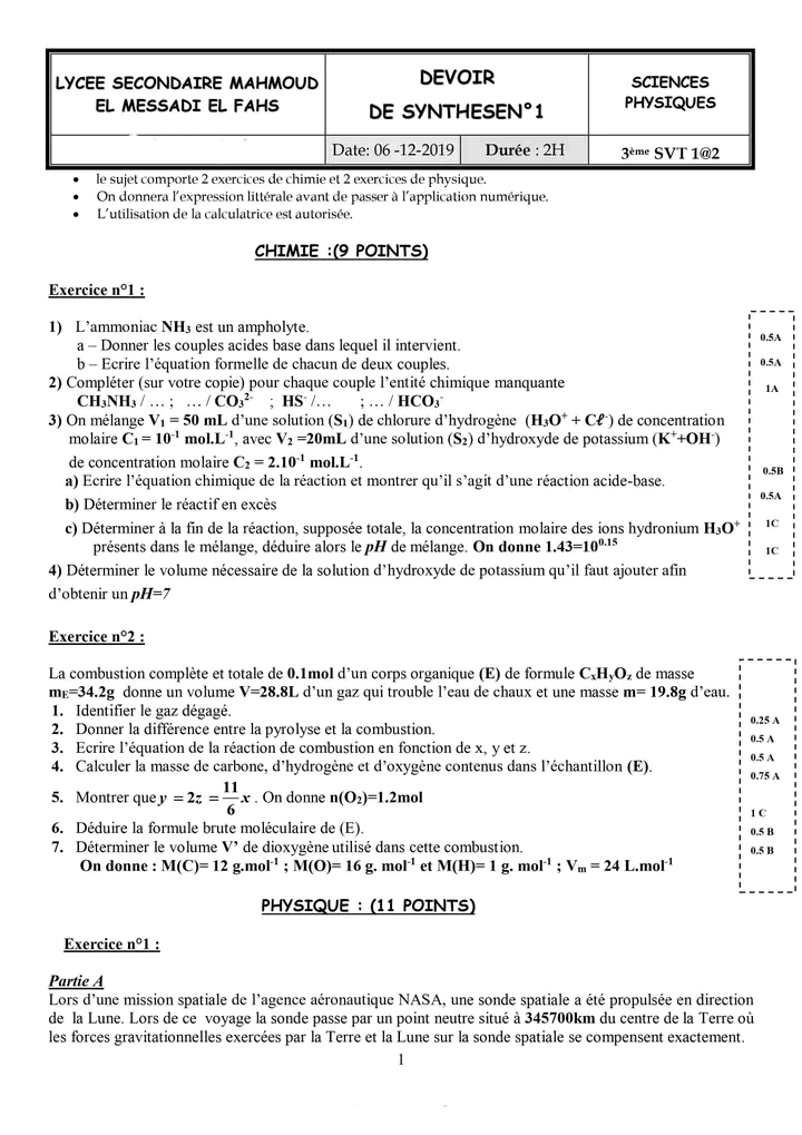 DEVOIR SYNTHESE 1 avec correction 3 SCIENCES