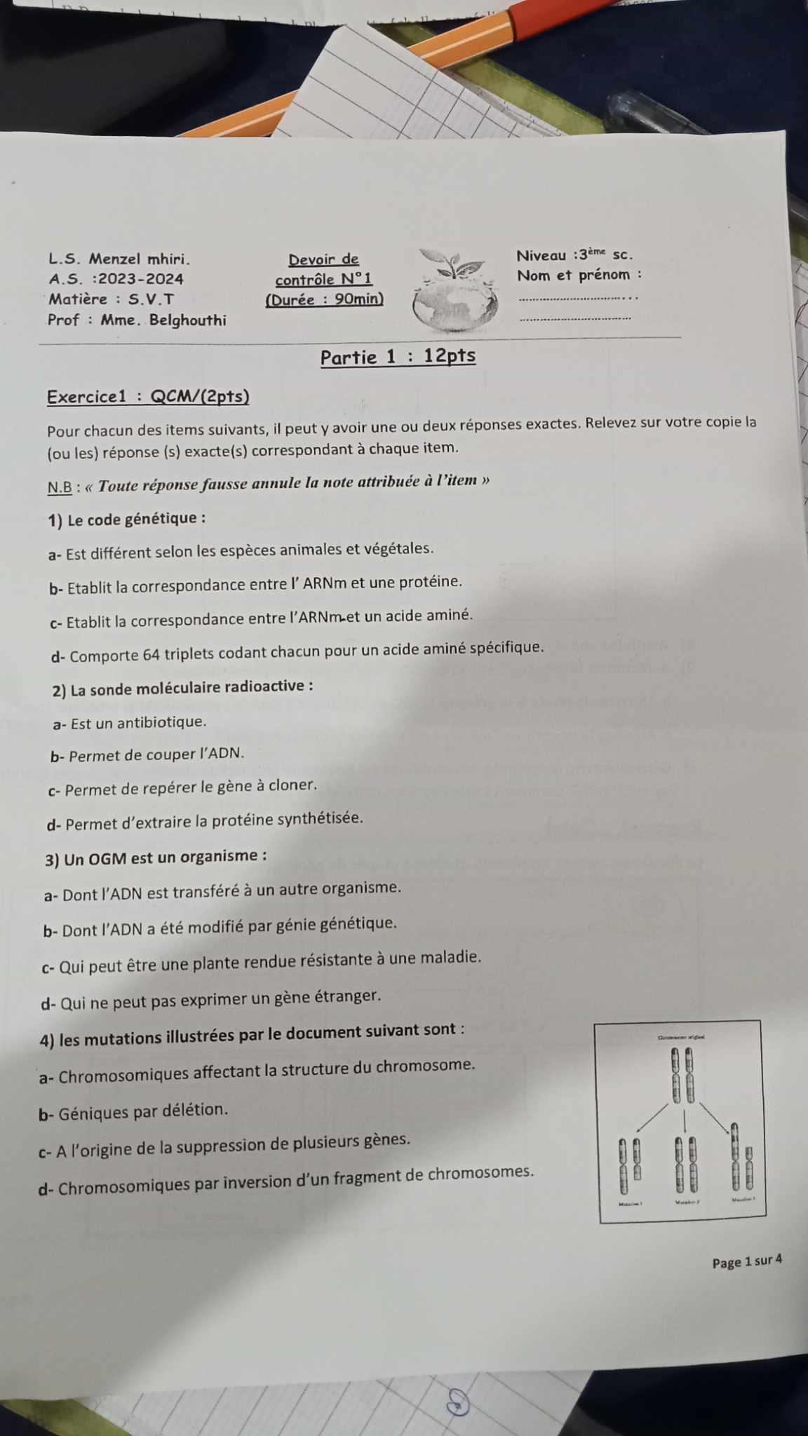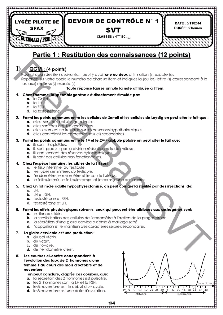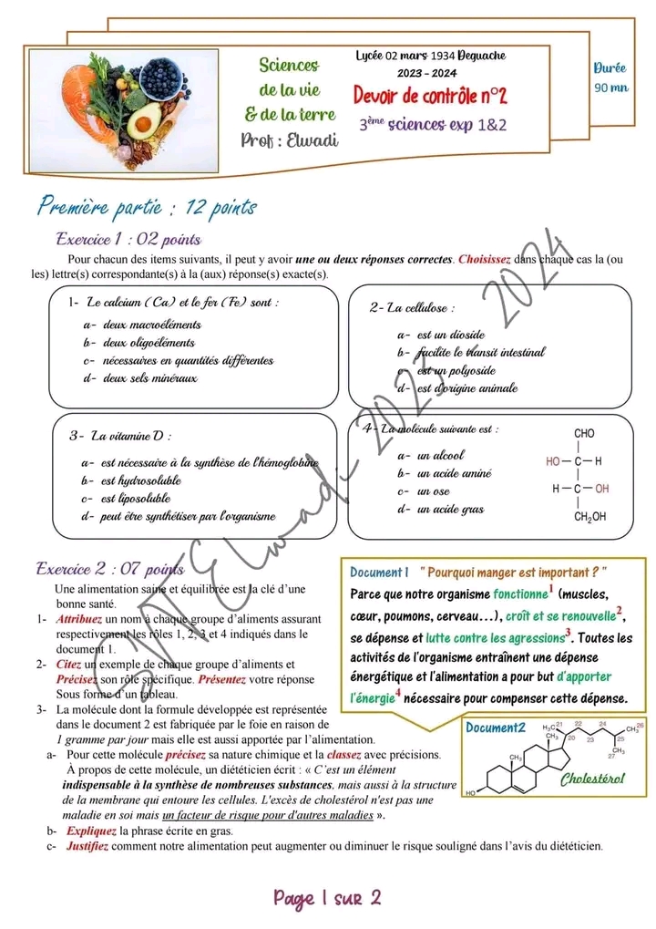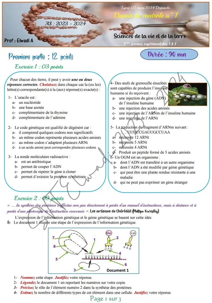 Devoir de synthèse n°1+correction #SVT