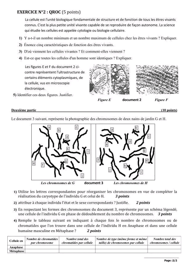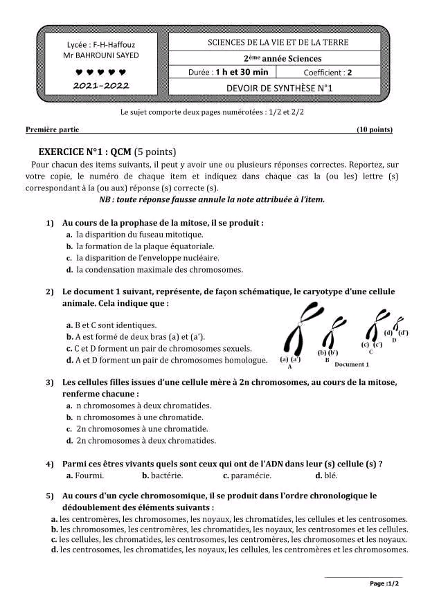 devoir de contrôle n° 1 SVT