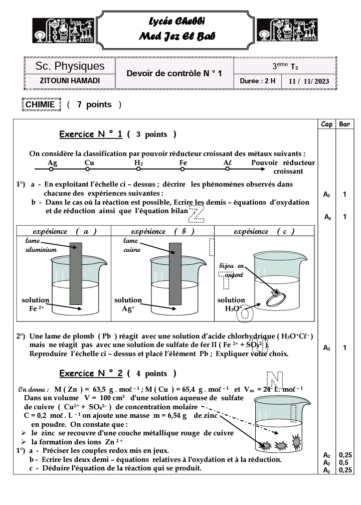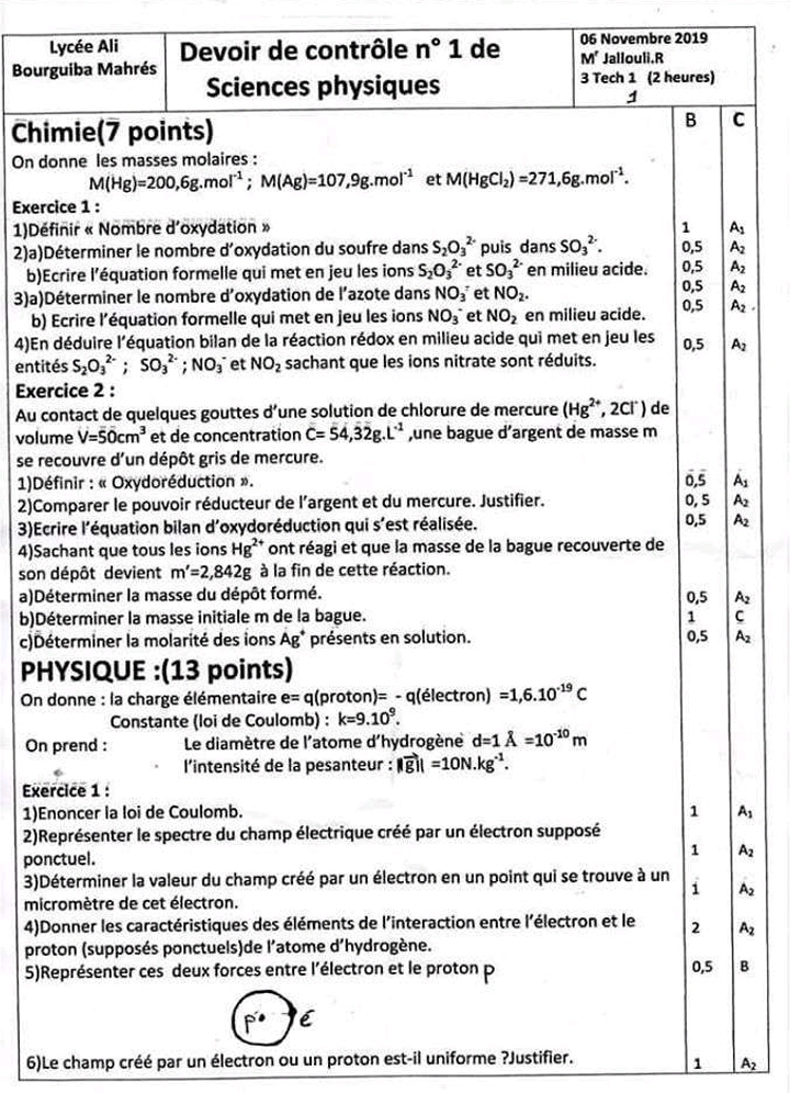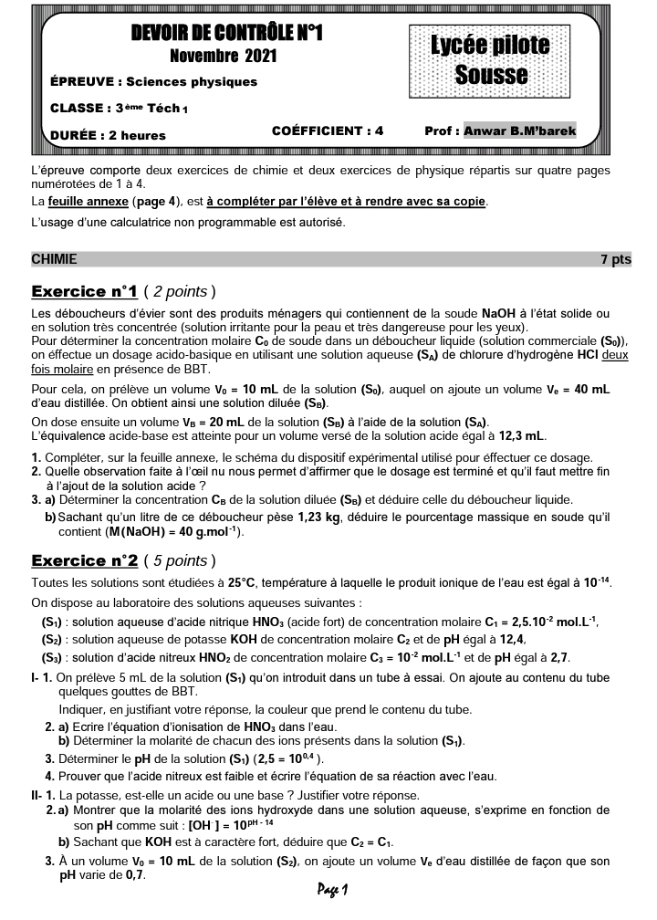 Devoir de synthèse n°1+correction#physiques