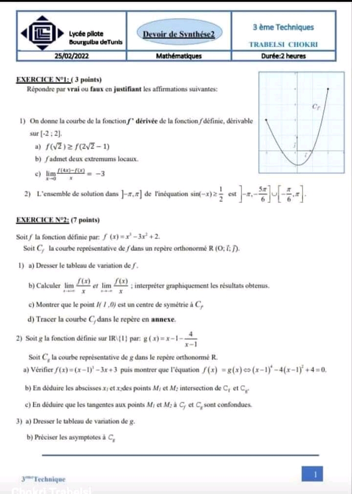 Devoirs de synthèse Math trimestre 2 ( 3 )