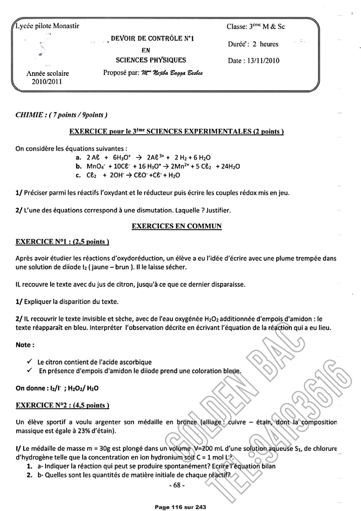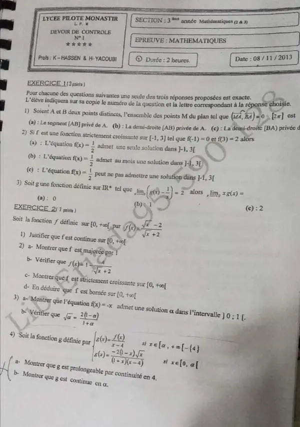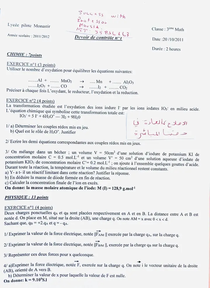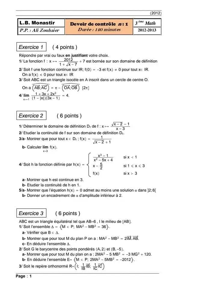 devoir de contrôle n°1 +correction