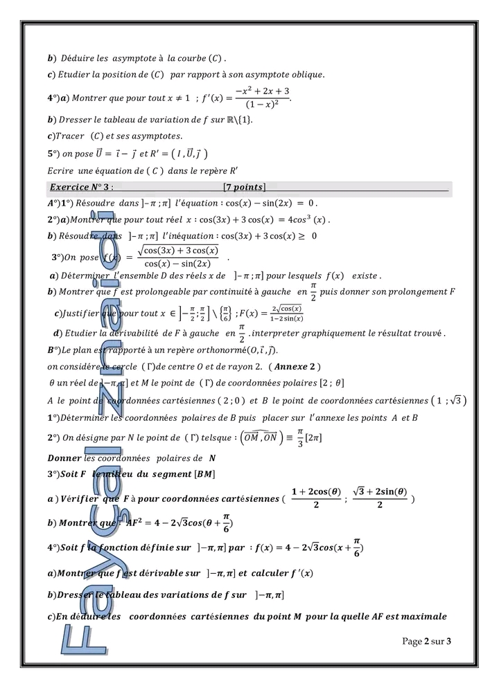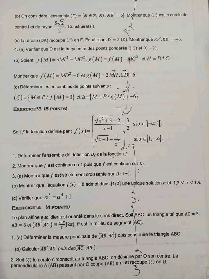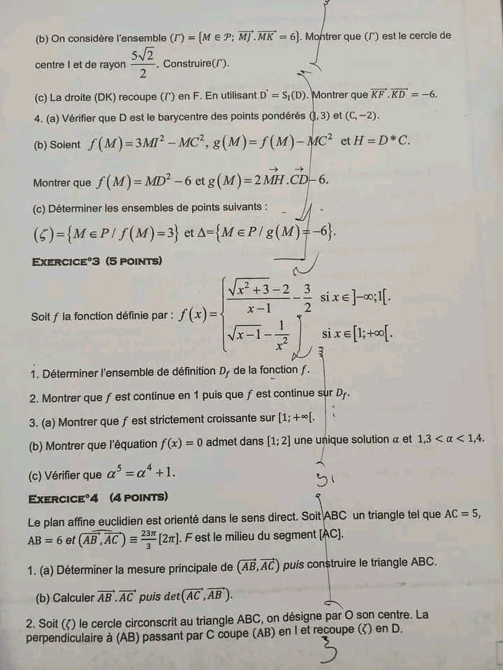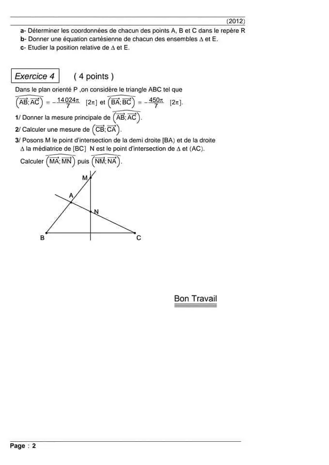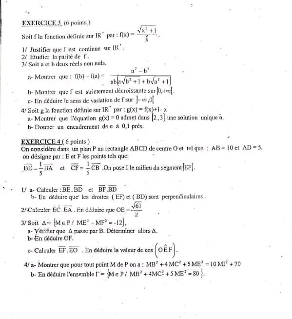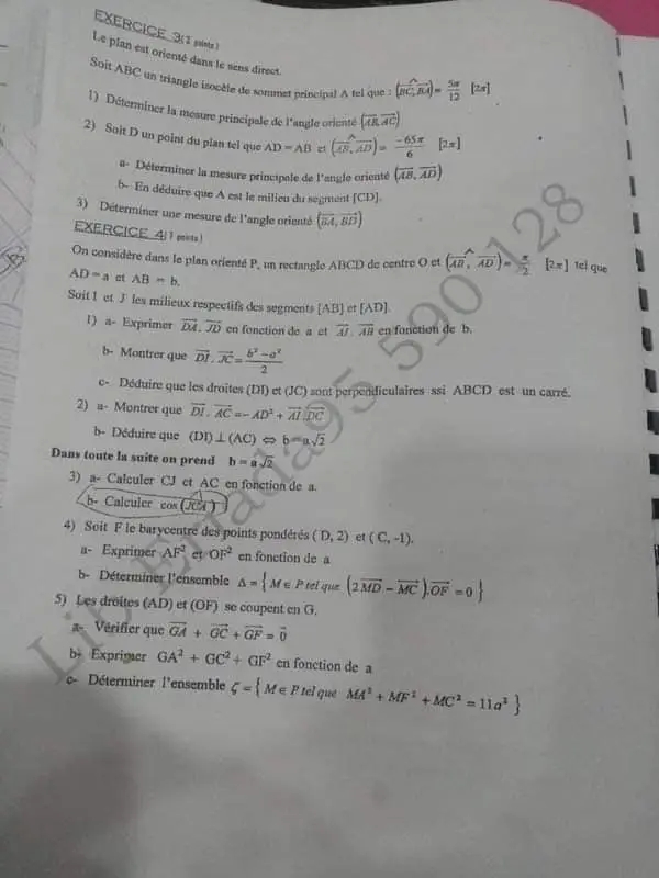 Produit scalaire 3 ème année math