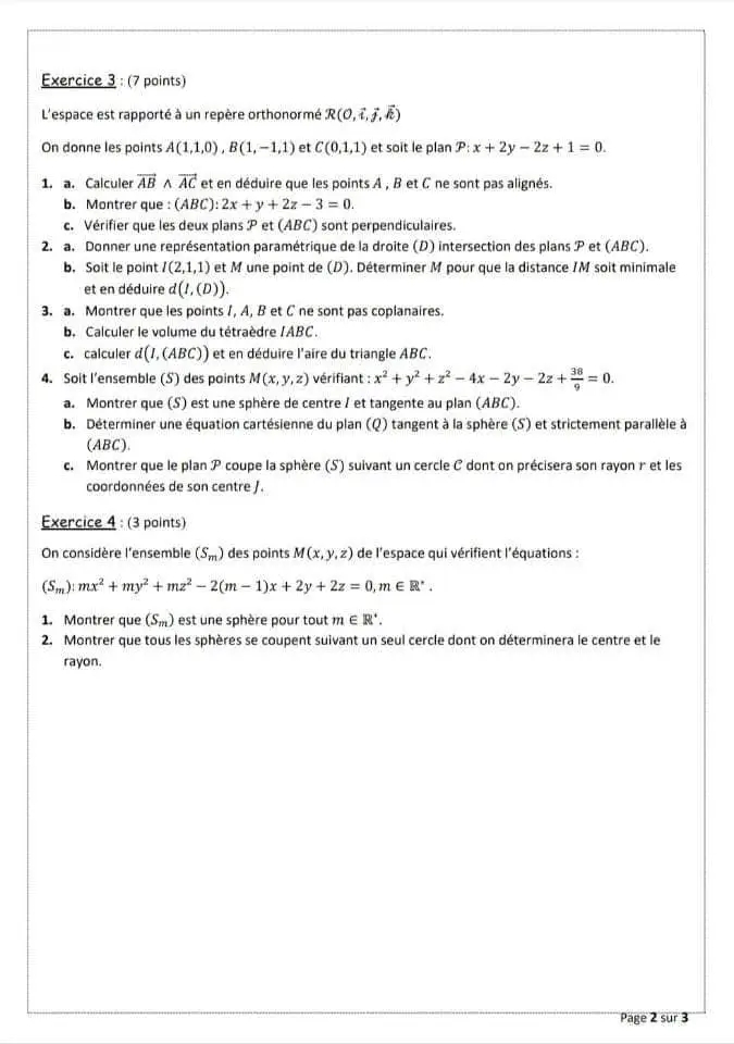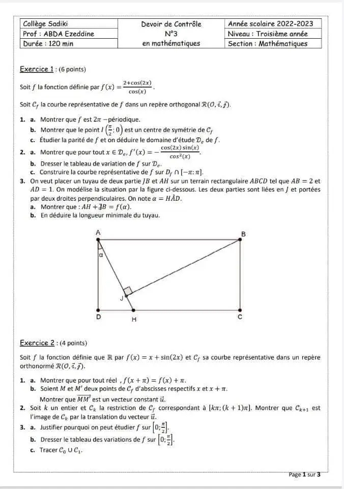 Devoir de contrôle 3 math Correction pour 3 ème année math